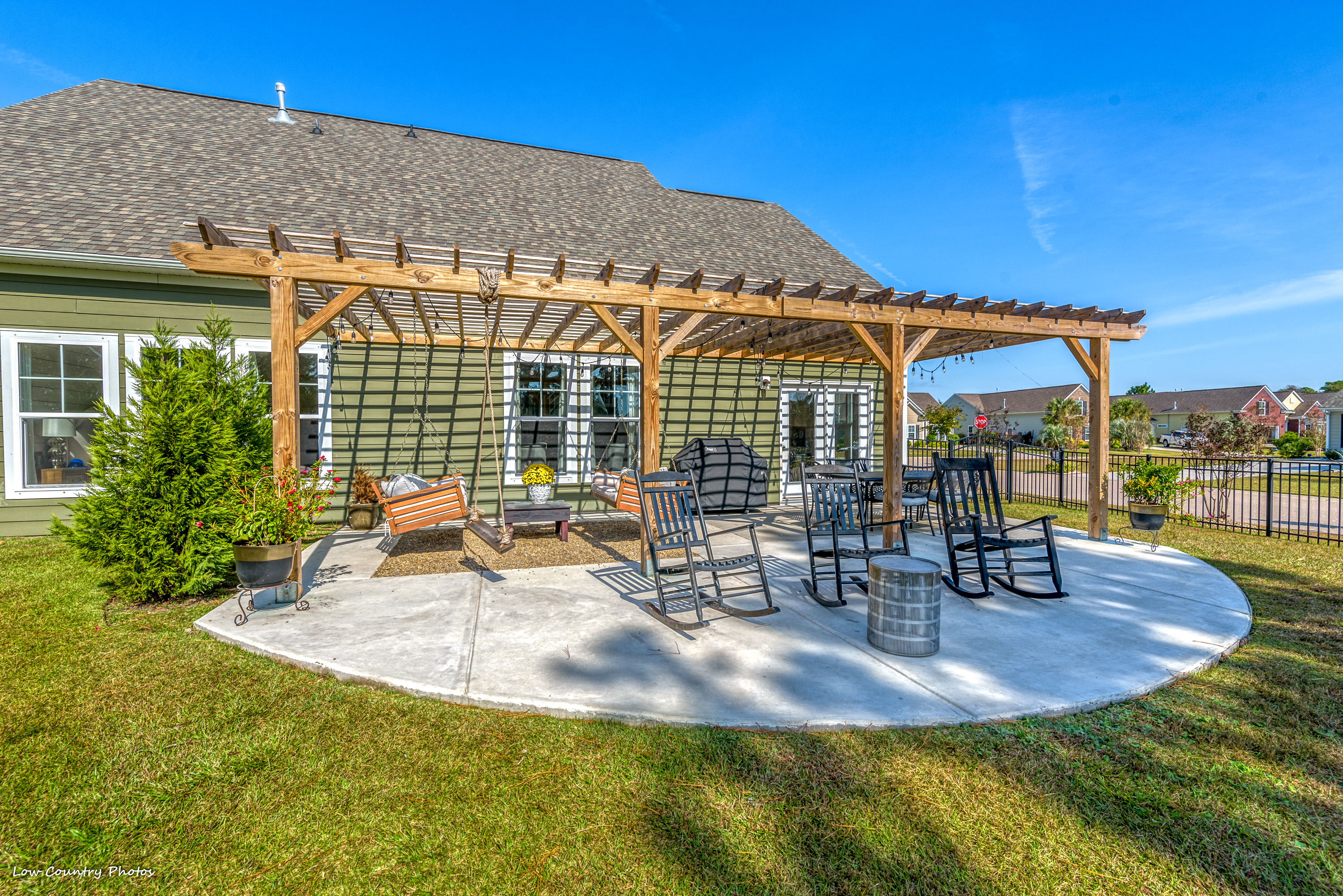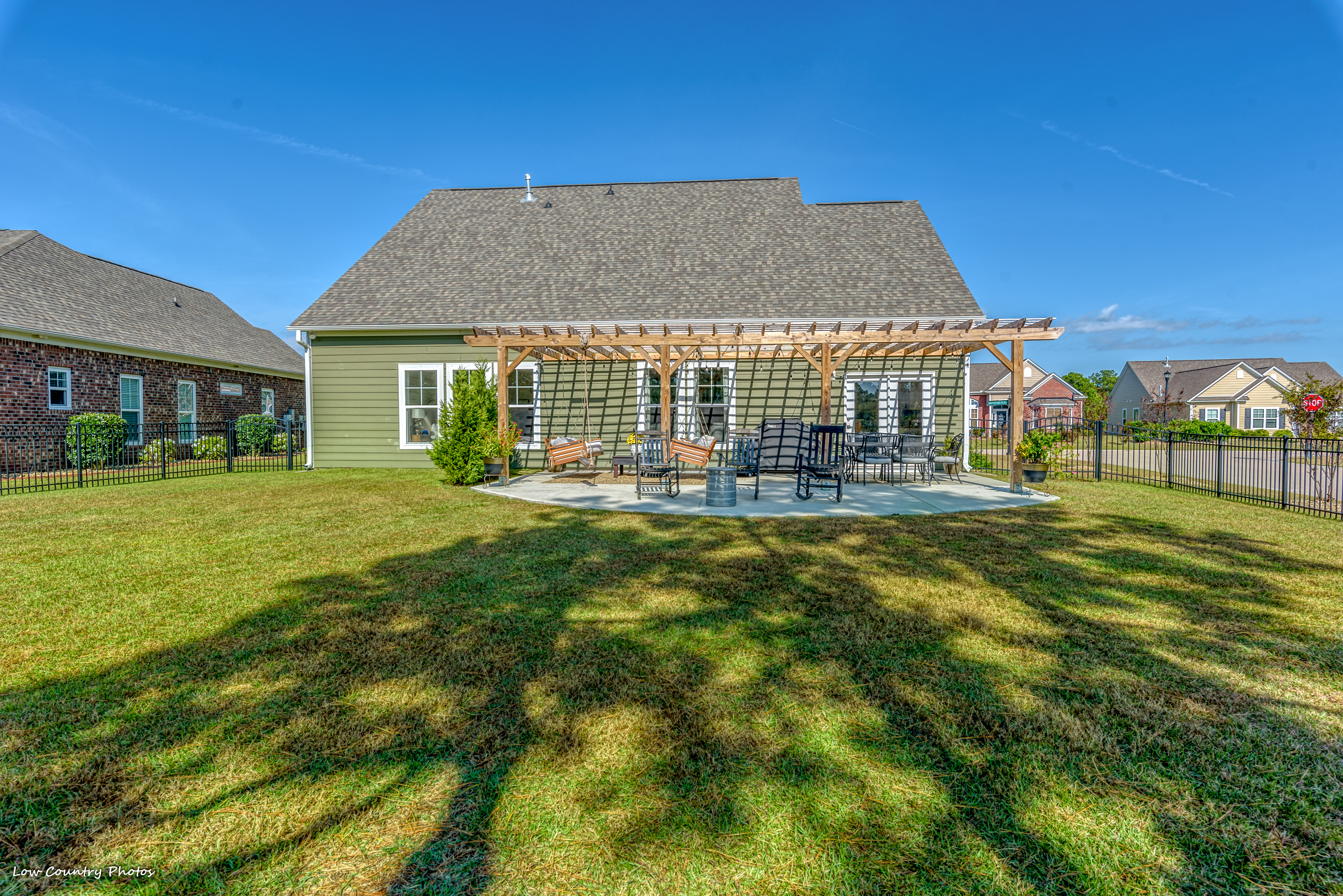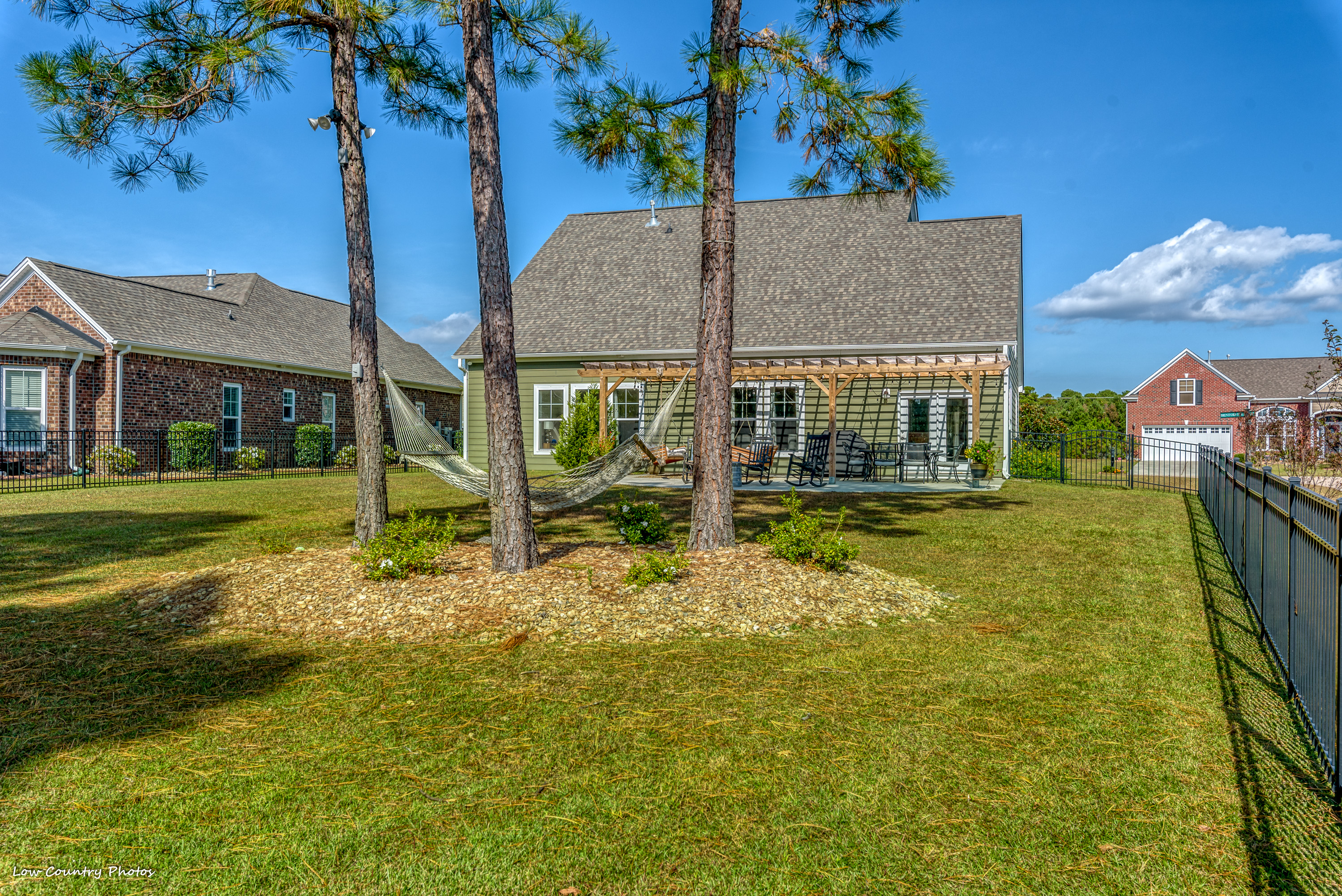 Not enough attention can be given to the backyard, a unique situation where two lots were combined to form this fantastic location. The fenced yard will provide limitless possibilities, and countless hours of relaxation and enjoyment will be had under the pergola. Only a short walk to the Home Owners Clubhouse and Amenities Center, this location can't be beaten.