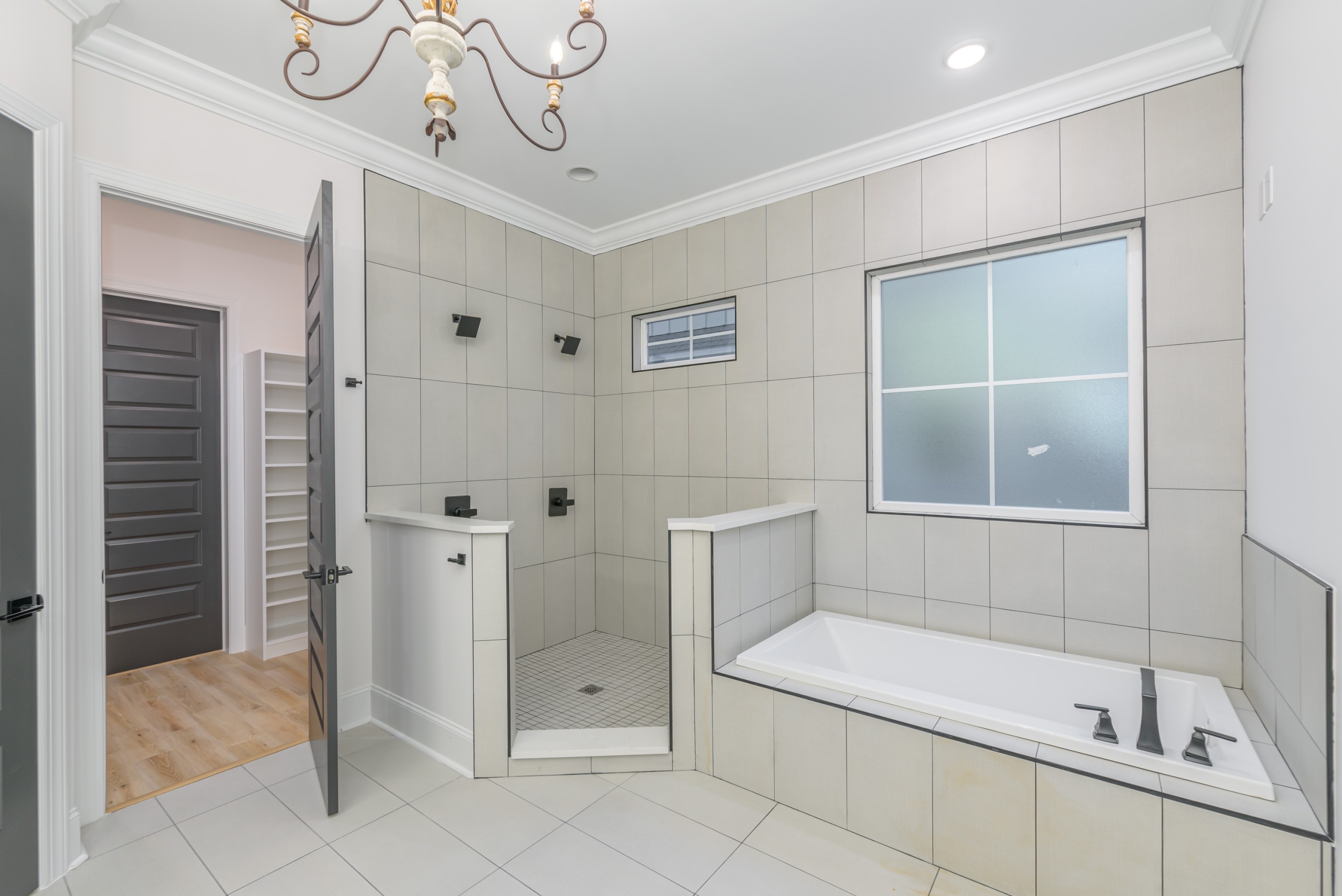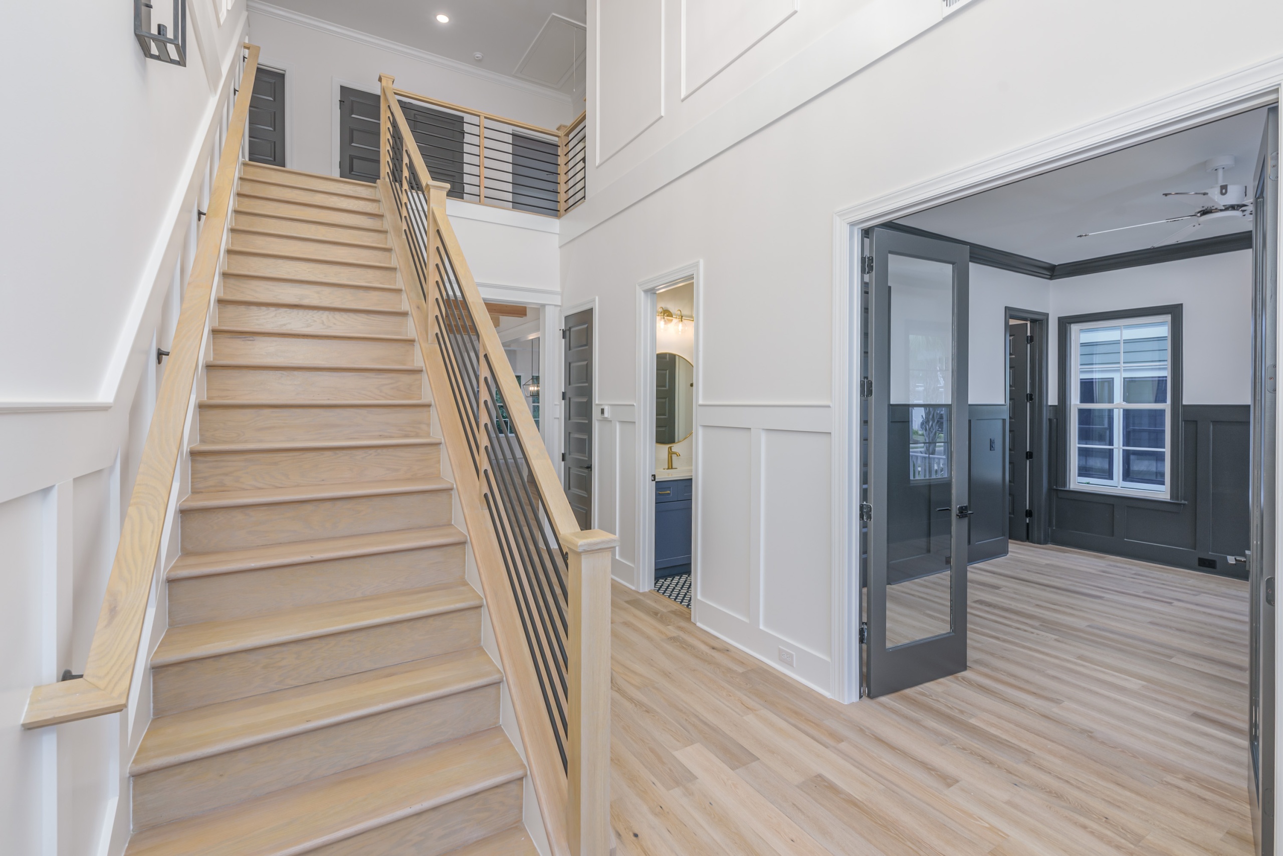 Discover luxury living at its finest in this stunning home at 1054 E. Isle of Palms Avenue, located in the highly sought-after Waterway Palms Plantation community in Myrtle Beach's Carolina Forest. This expansive residence boasts 4,044 heated square feet and a grand total of 5,001 square feet of sophisticated space. As you enter through the front door, you are warmly welcomed by a dramatic two-story foyer. The first floor serves as an oasis of comfort, featuring a large master suite with a 5-star resort bathroom, and the convenience of a walk-in closet directly connected to the laundry room.