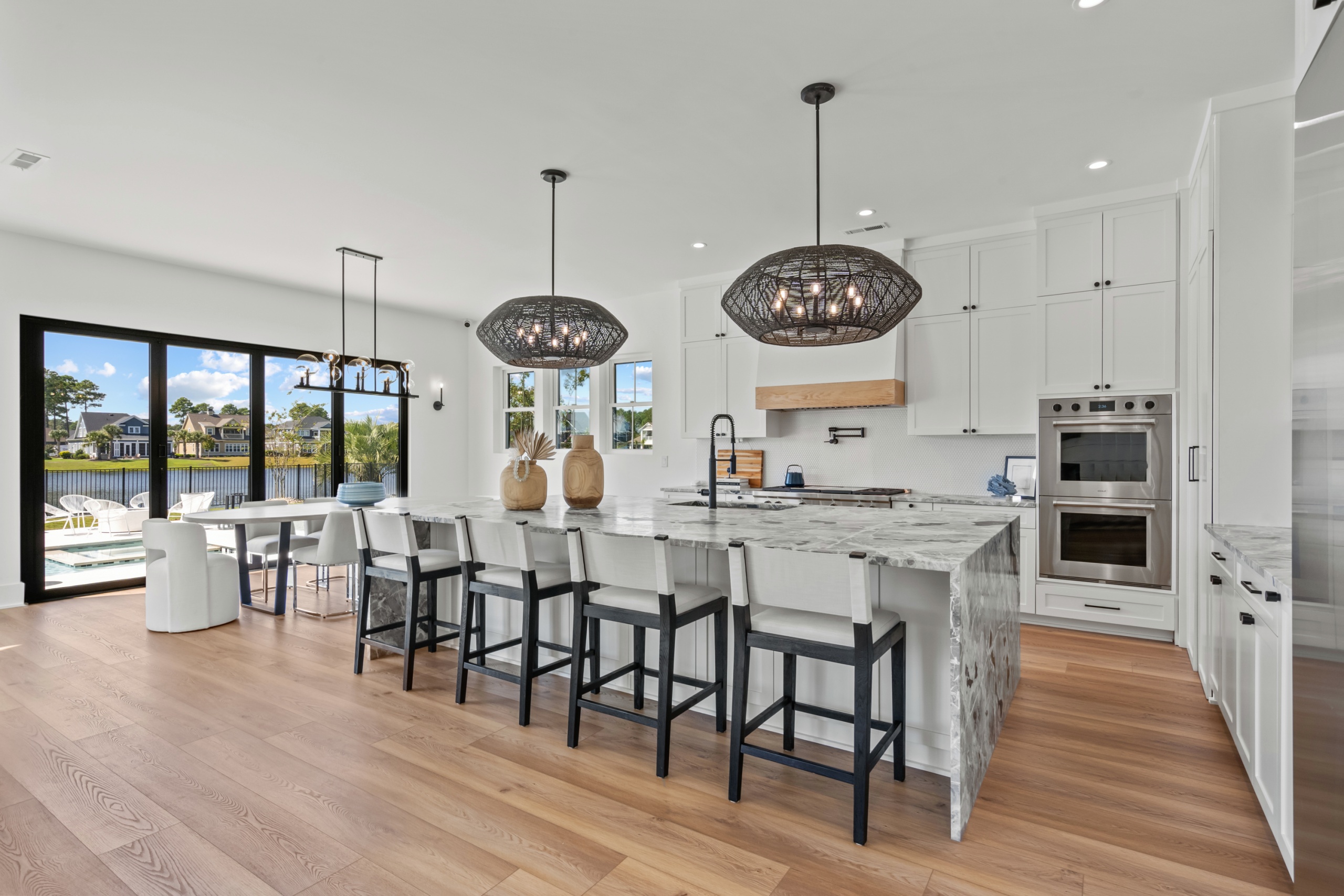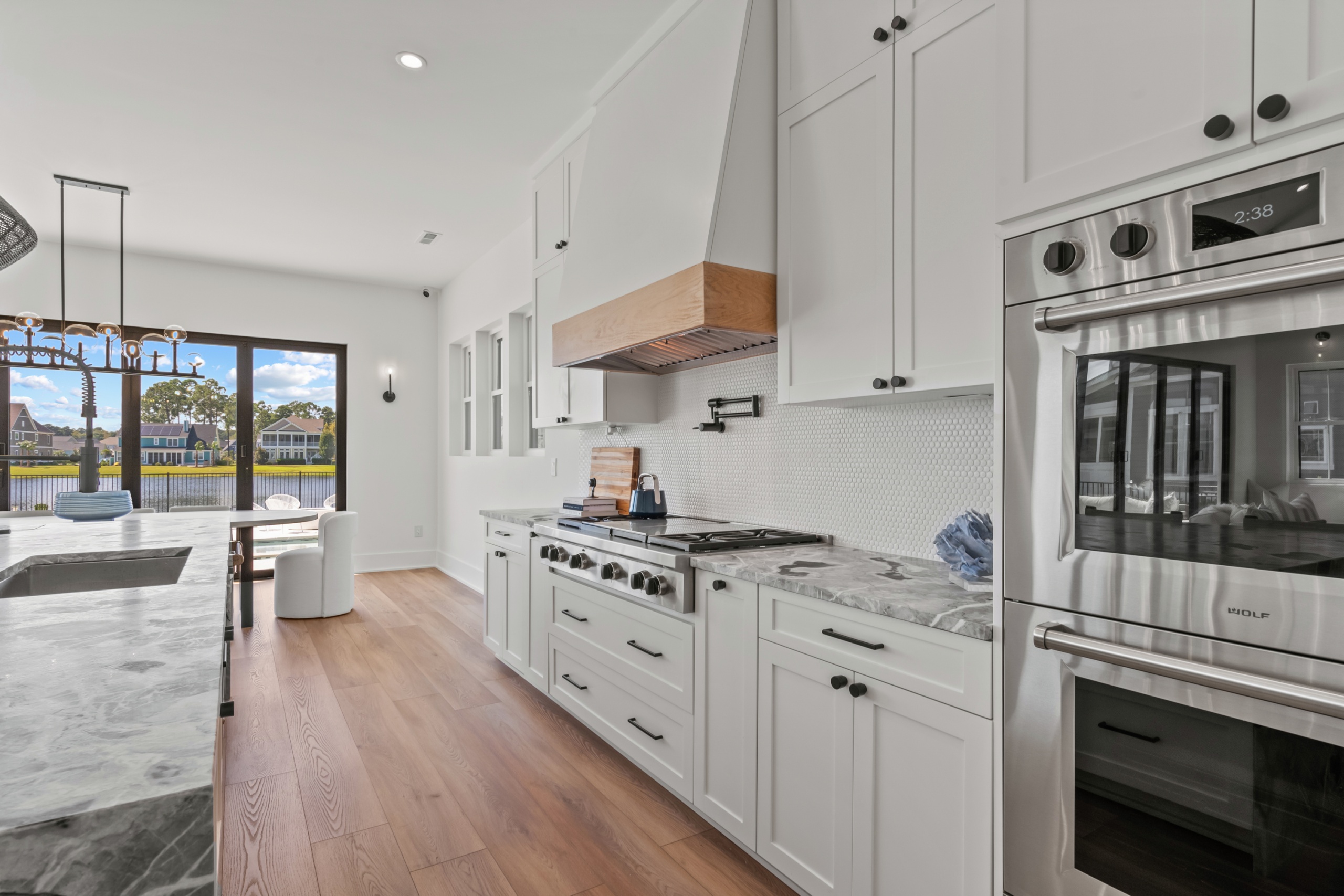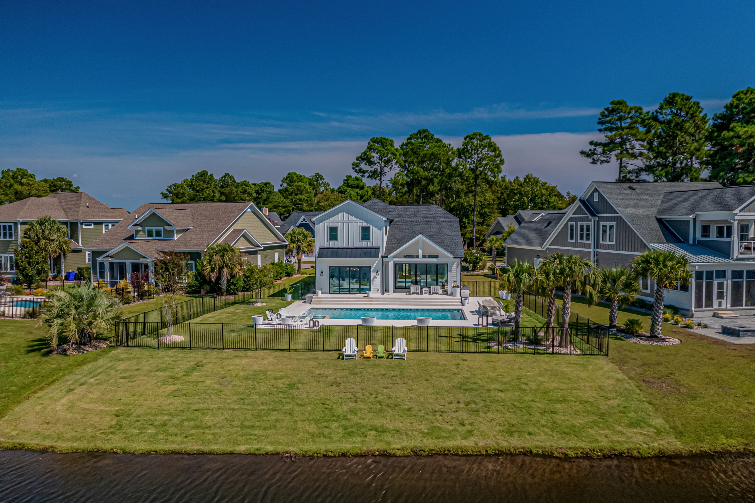 Welcome to an exquisite waterfront retreat in the heart of Carolina Forest, Myrtle Beach, South Carolina. This newly constructed 4-bedroom, 3-bathroom residence exemplifies the pinnacle of custom craftsmanship and luxurious living. Positioned on a tranquil waterfront property, this home seamlessly combines sophistication and serenity. Upon entry, a striking custom steel front door sets the stage for the elegance that awaits within. The expansive design features 11-foot ceilings on the main floor, creating a spacious and inviting ambiance. Throughout the home, discerning details abound, including 1X8 real wood shiplap, designer light fixtures, and Fanimation fans, elevating the overall sense of refinement.