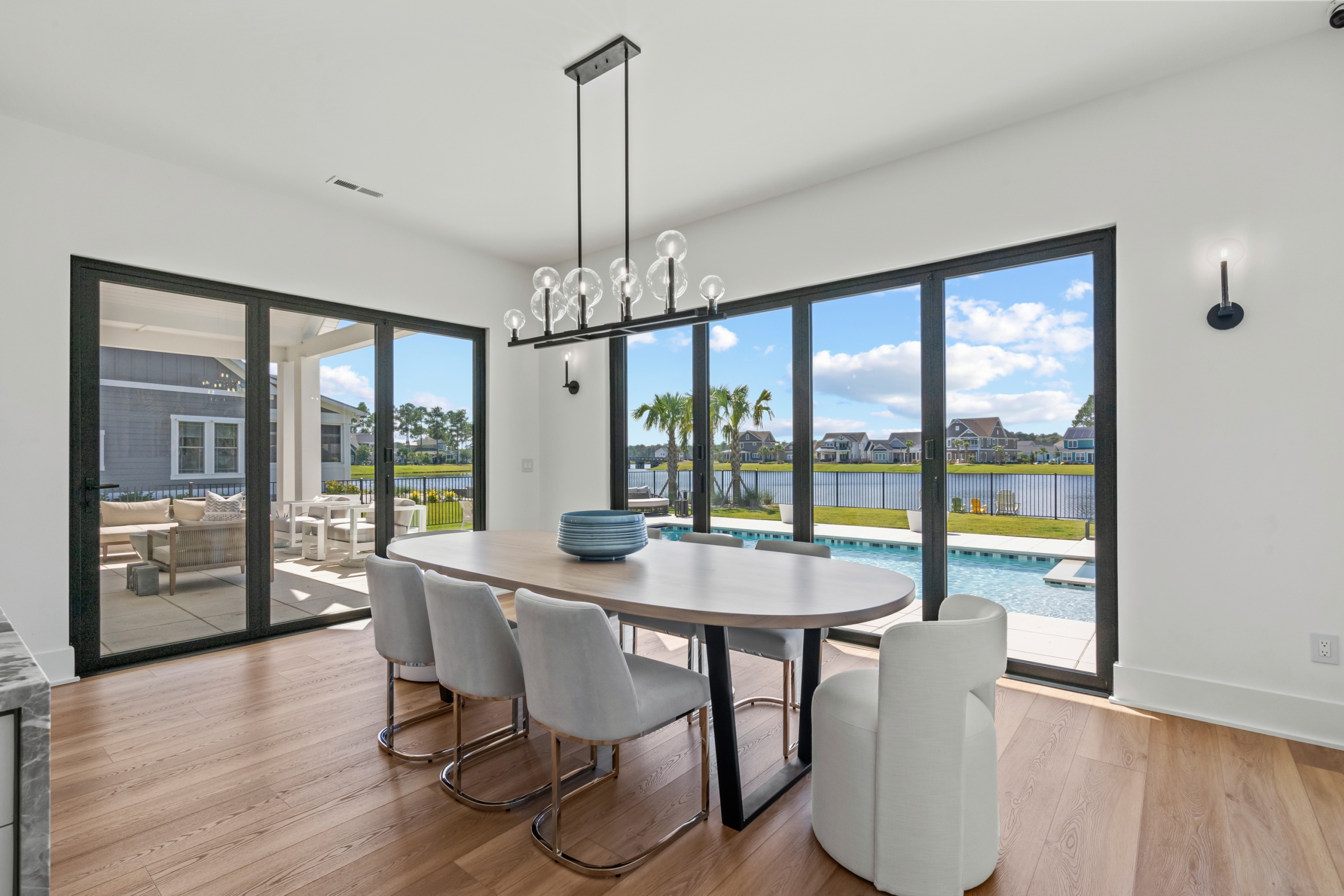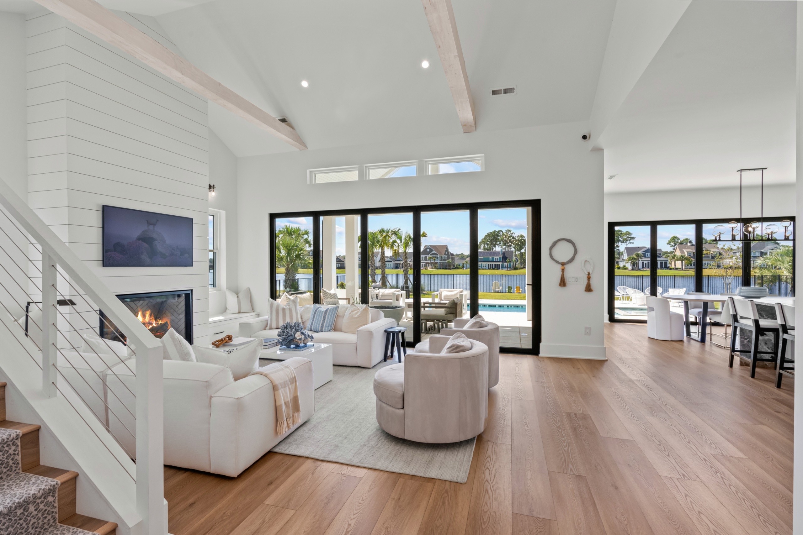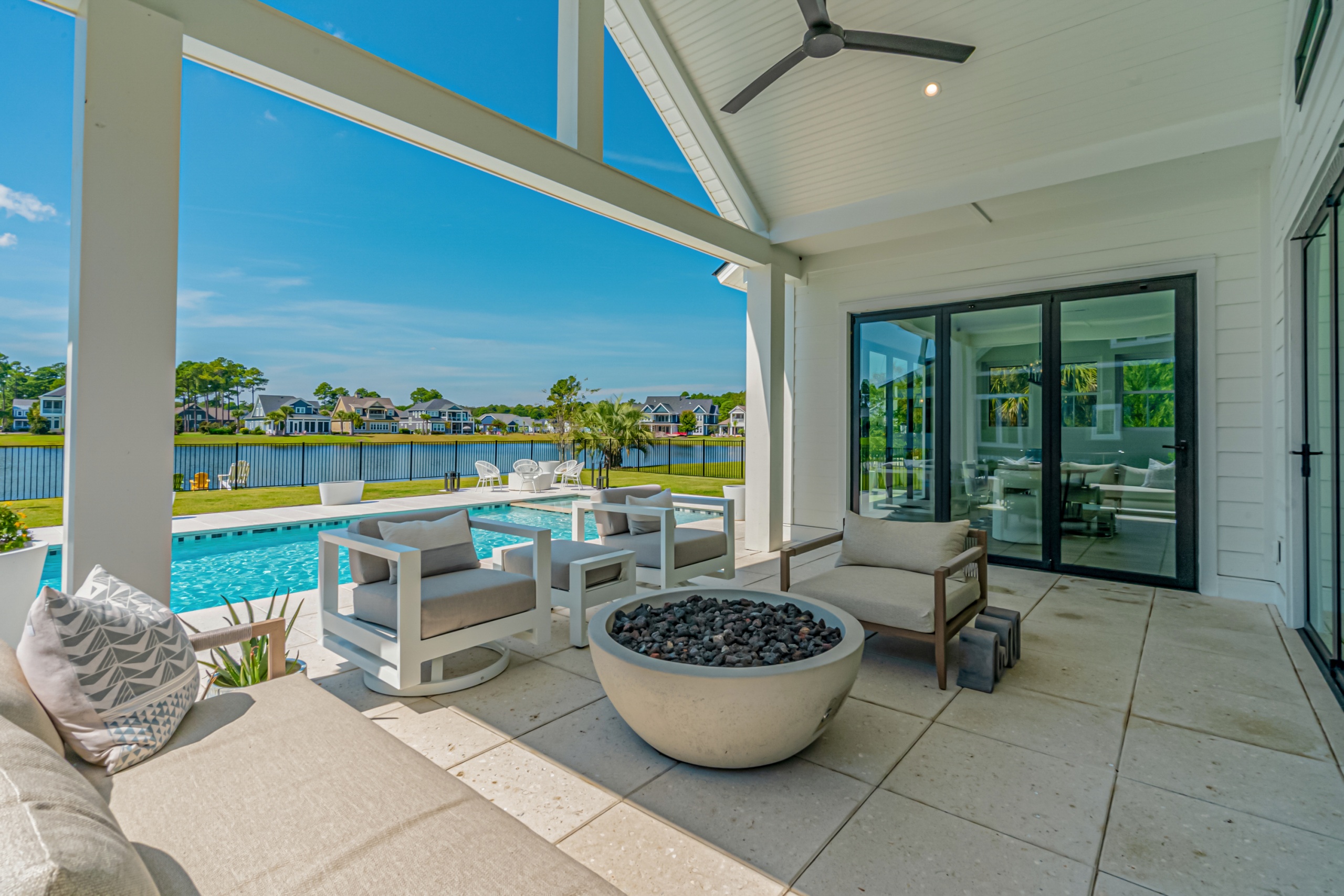 Welcome to an exquisite waterfront retreat in the heart of Carolina Forest, Myrtle Beach, South Carolina. This newly constructed 4-bedroom, 3-bathroom residence exemplifies the pinnacle of custom craftsmanship and luxurious living. Positioned on a tranquil waterfront property, this home seamlessly combines sophistication and serenity. Upon entry, a striking custom steel front door sets the stage for the elegance that awaits within. The expansive design features 11-foot ceilings on the main floor, creating a spacious and inviting ambiance. Throughout the home, discerning details abound, including 1X8 real wood shiplap, designer light fixtures, and Fanimation fans, elevating the overall sense of refinement.