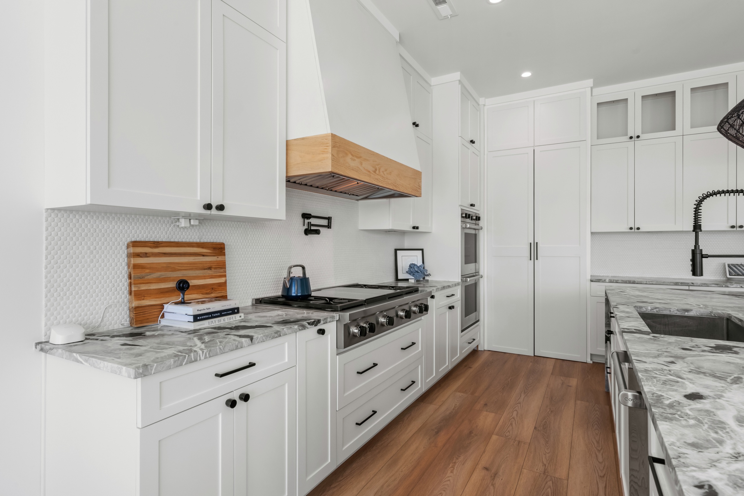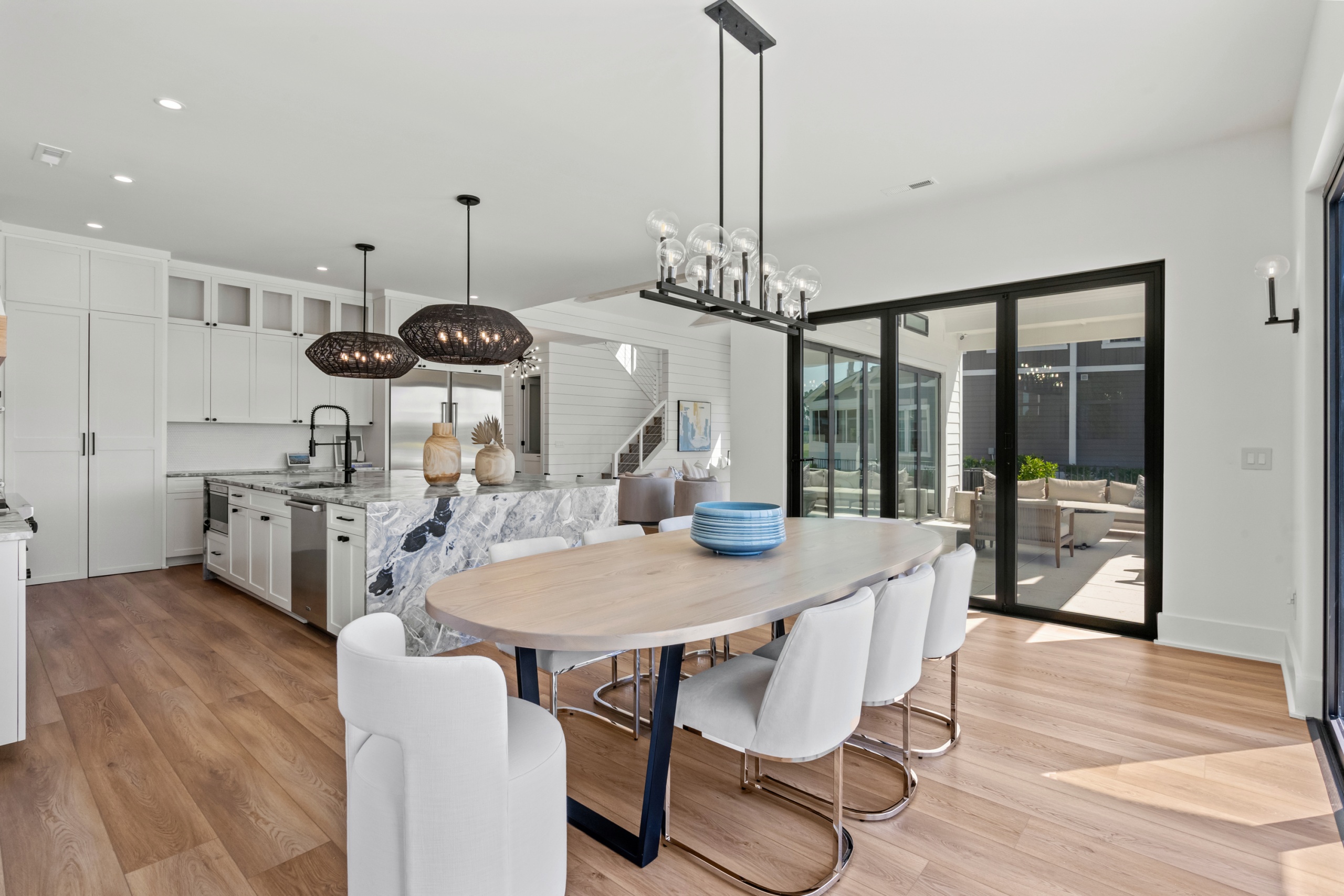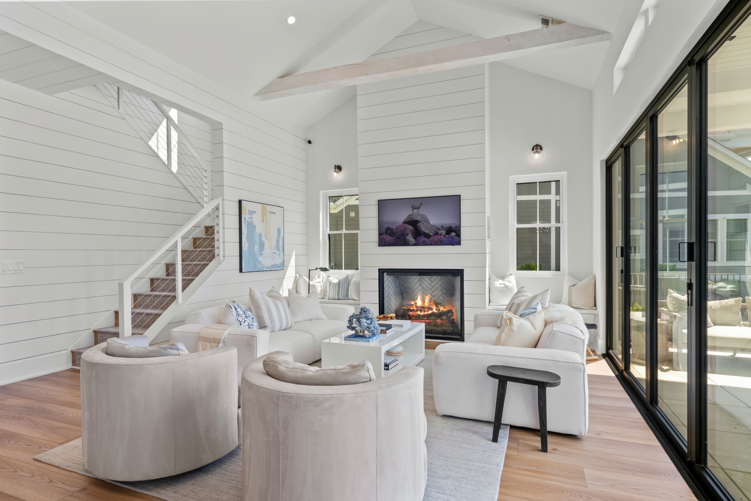 For the culinary enthusiast, the kitchen is a masterpiece in its own right, showcasing Italian quartzite countertops, top-of-the-line Wolf/Sub-Zero appliances, a 4-burner range with griddle and grill, double wall ovens, and a concealed pantry. Noteworthy is the custom KitchenAid stand mixer easy lift cabinet, a testament to the meticulous attention to detail. The living area seamlessly connects to the outdoors through Nanawalls, which allow the entire rear of the house to open up to breathtaking water views. Step onto the expansive covered porch, complete with a ceiling fan, and immerse yourself in the tranquility of the surroundings.