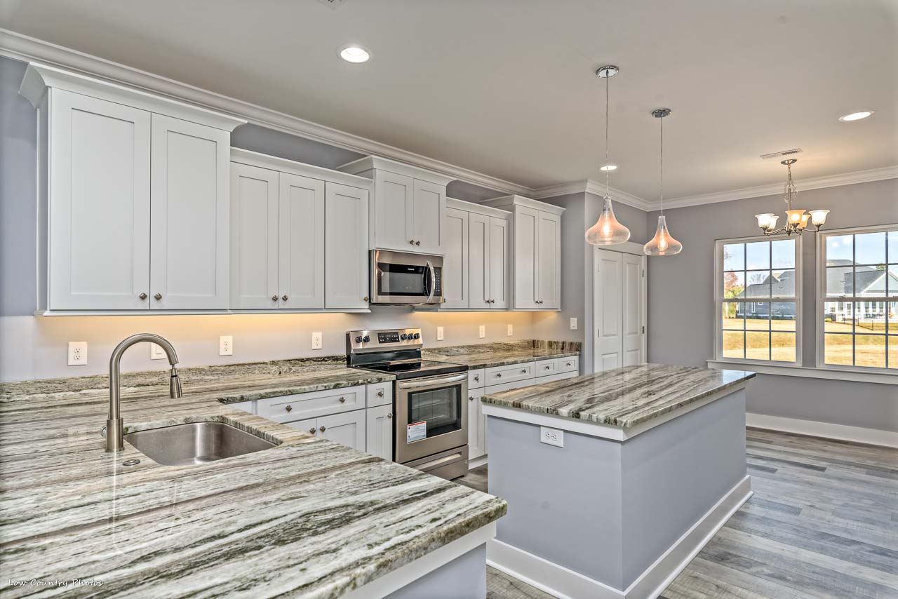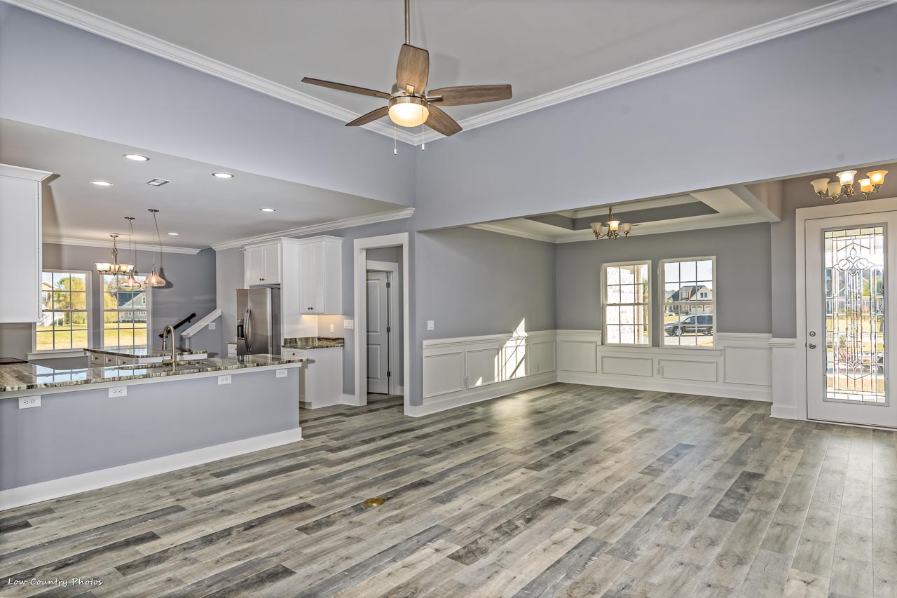 113 Oyster Point Way is positioned on a large cul-de-sac homesite in the "Low Country" section. A massive kitchen with plentiful cabinet space is located in the center of the home is certain to be the focal point of your new home. The Master Retreat has an enormous walk-in closet, sitting area, and an en-suite bathroom. The guest bedrooms are on the opposite side of the home affording owner and guest their privacy. A finished room over the garage has a full bathroom and a very large walk-in closet. This room could function as a 4th bedroom, media room, home office or just flex space.