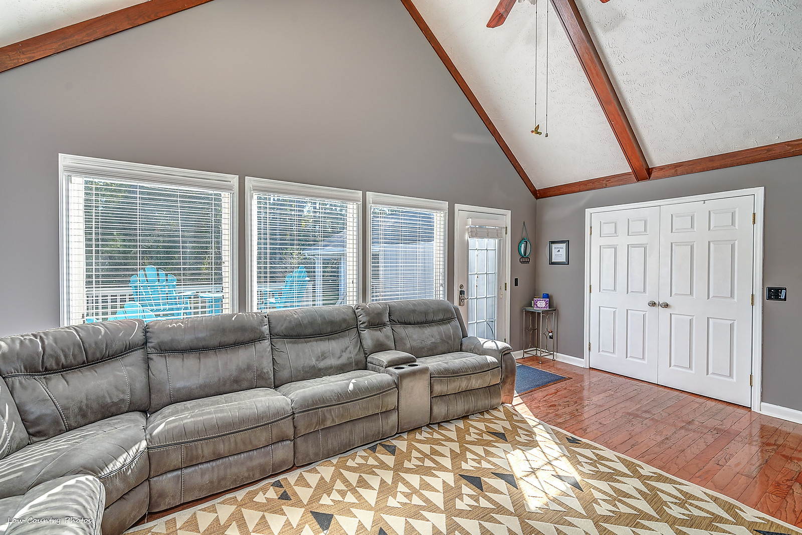Uniquely, the backyard offers both seclusion and tranquil vistas of the Hackler golf course. A large deck accompanied by covered verandas and seperate shed the backside of the property is a playground with limitless potential. Perfect for BBQ, firepits, a friendly game of corn hole or should you desire an inground pool.