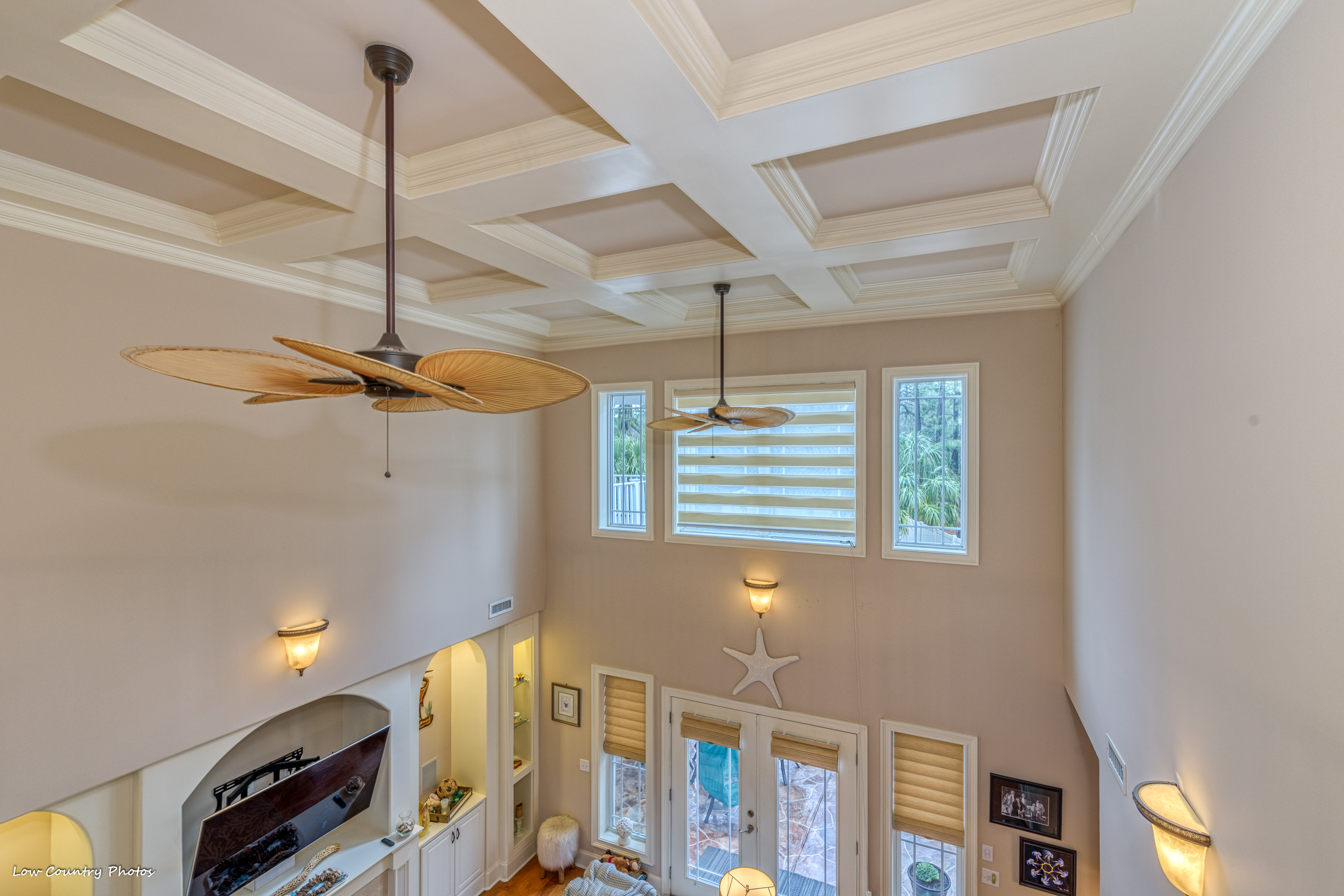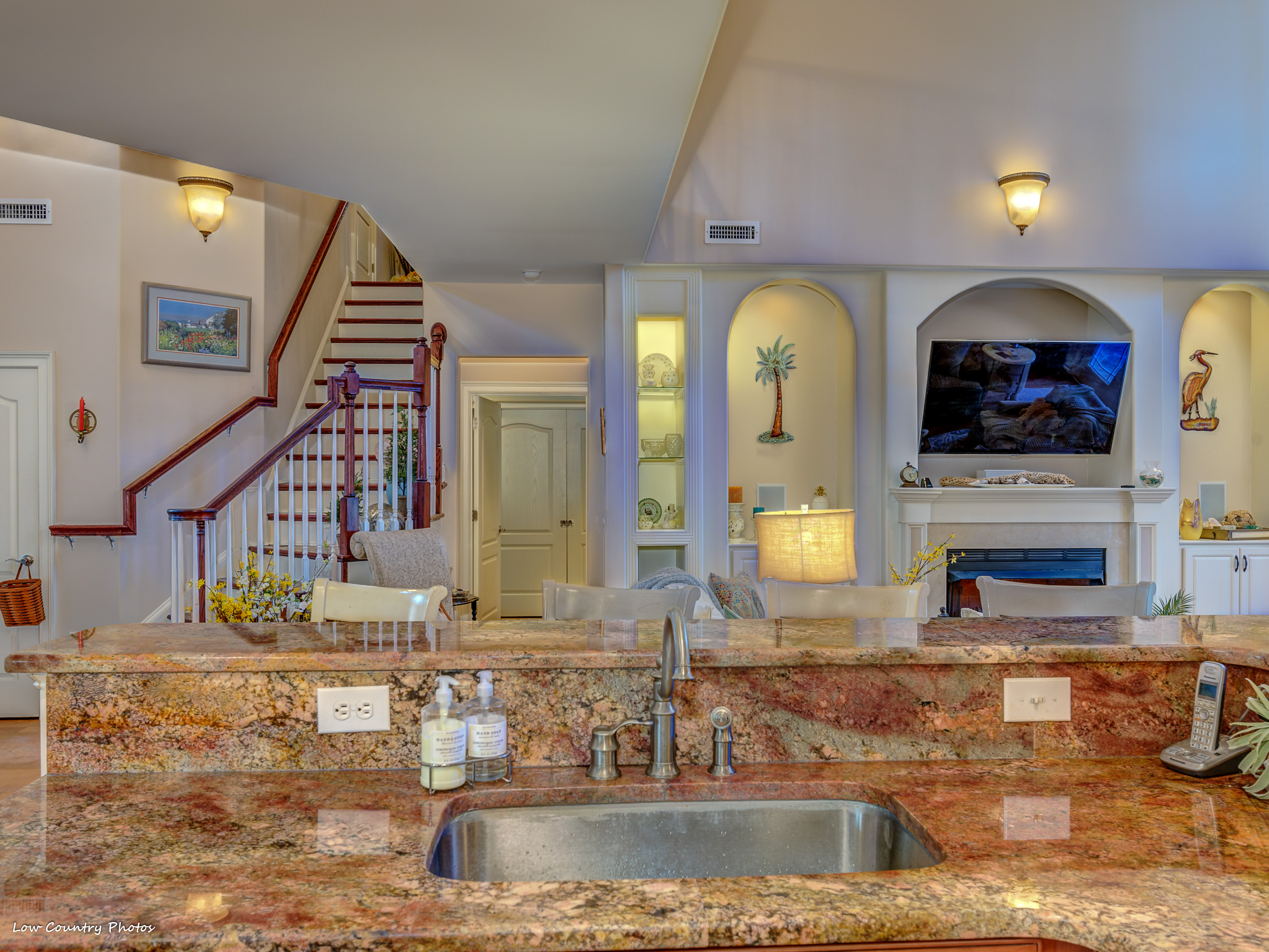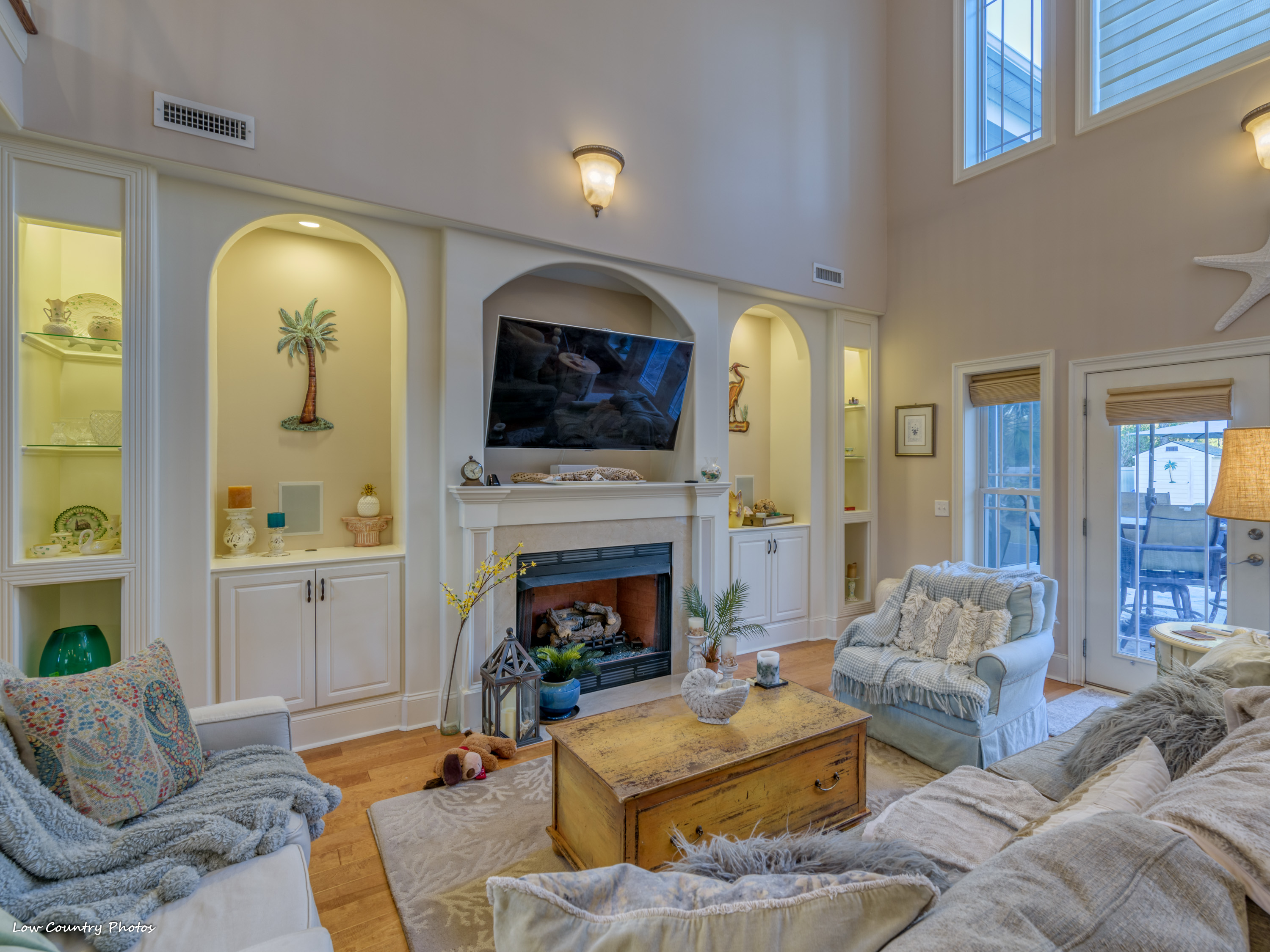 1804 Blue Indigo Lane is located at Waterbridge in Carolina Forest. Waterbridge is one of Myrtle Beach's hottest residential communities. Offering a host of upmarket features this magnificent home is in mint-move-in ready condition. A cozy "southern porch" welcomes you on arrival. Through the front door, you are pulled in by a towering two-story living room. This central living area accented by built-ins, arches, fireplace, a coffered ceiling, and has a wall of windows affording ample natural light.