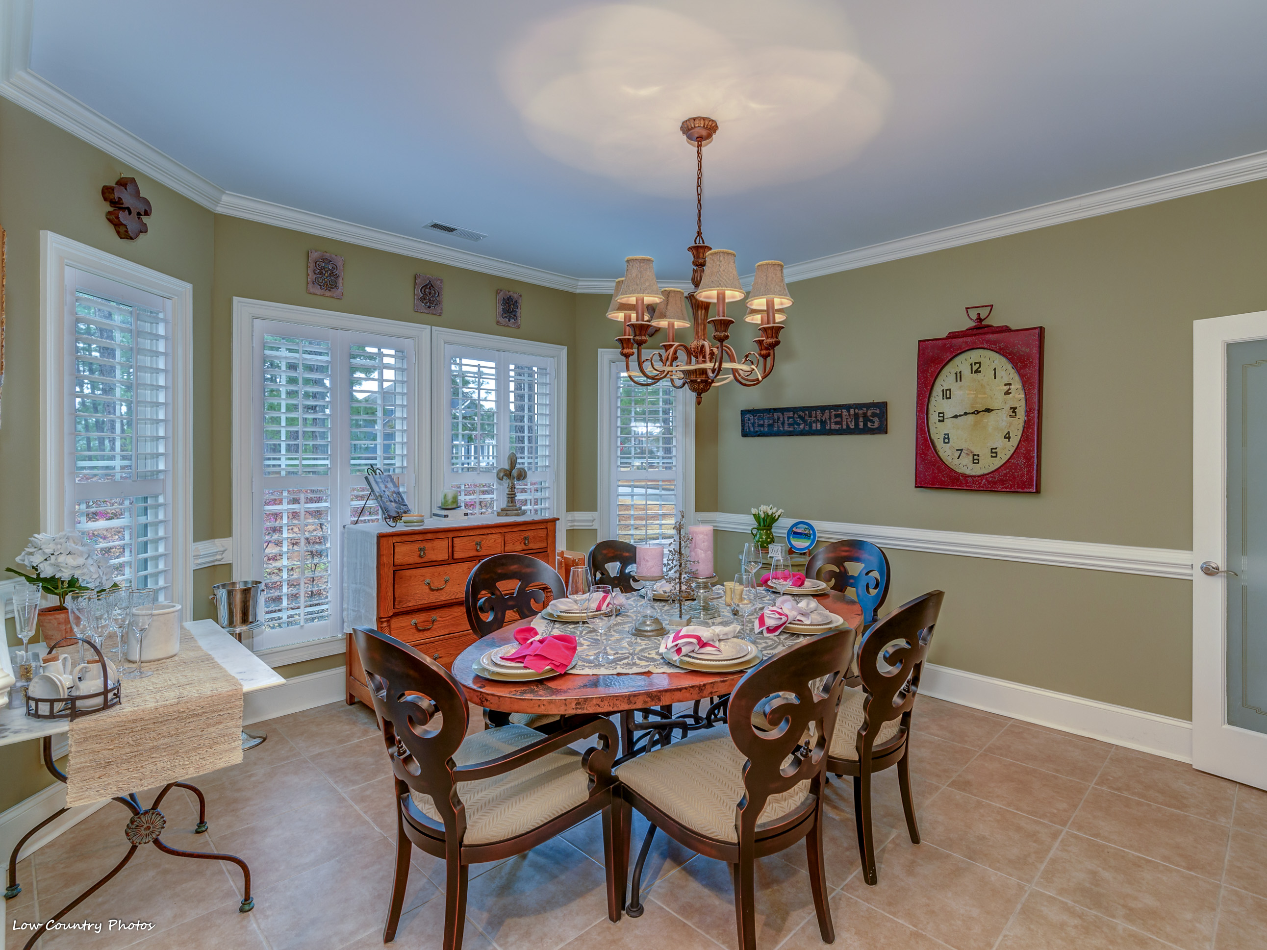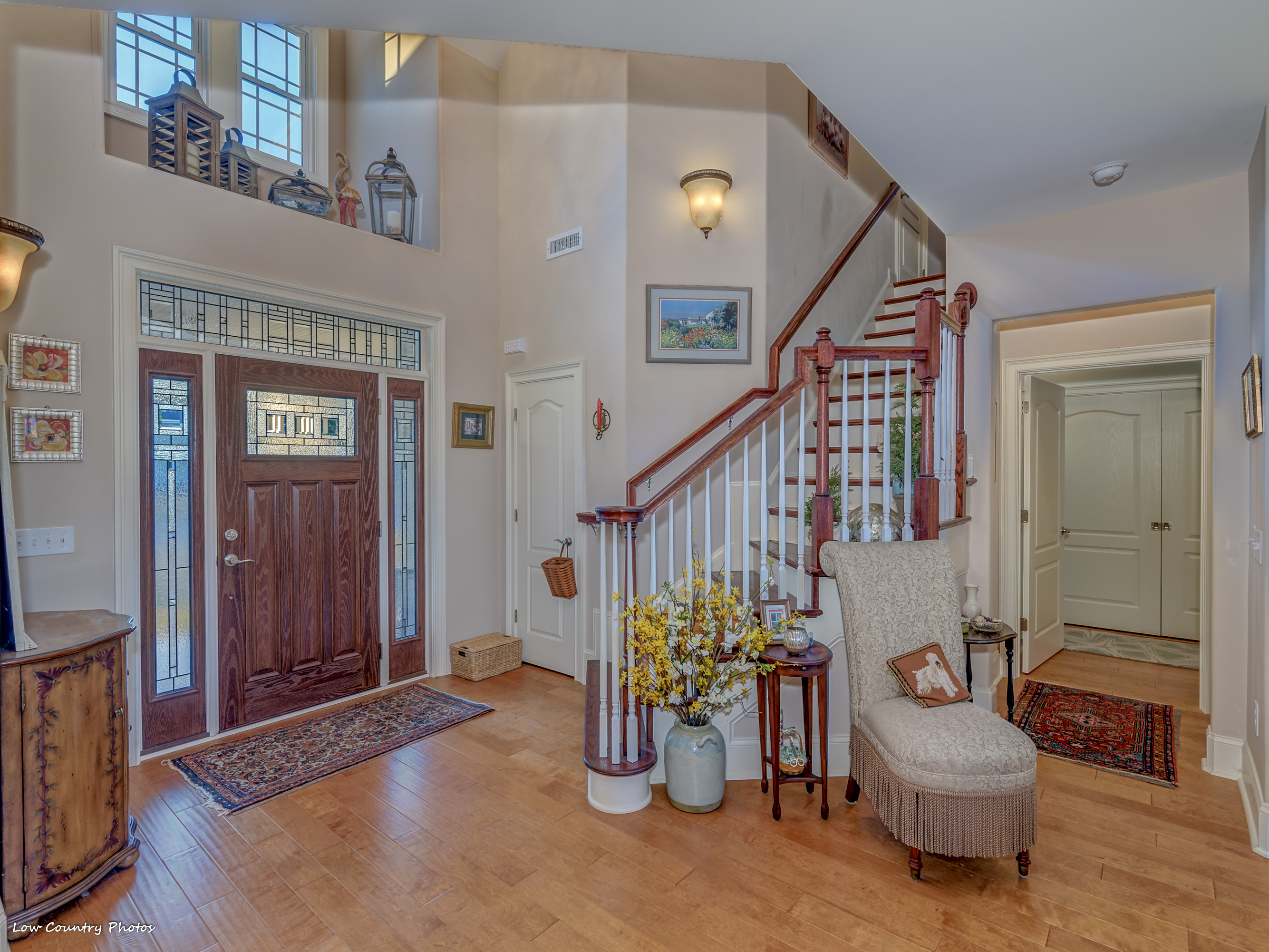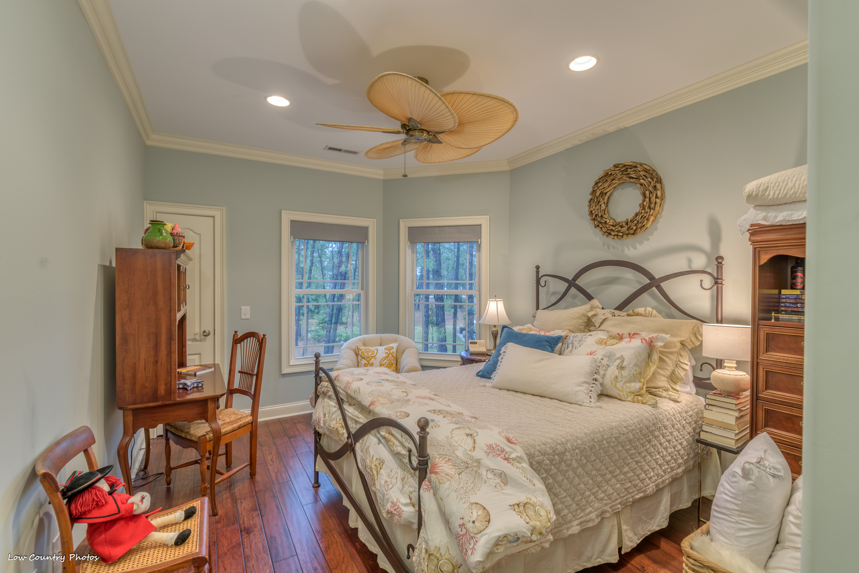 1804 Blue Indigo Lane is located at Waterbridge in Carolina Forest. Waterbridge is one of Myrtle Beach's hottest residential communities. Offering a host of upmarket features this magnificent home is in mint-move-in ready condition. A cozy "southern porch" welcomes you on arrival. Through the front door, you are pulled in by a towering two-story living room. This central living area accented by built-ins, arches, fireplace, a coffered ceiling, and has a wall of windows affording ample natural light.