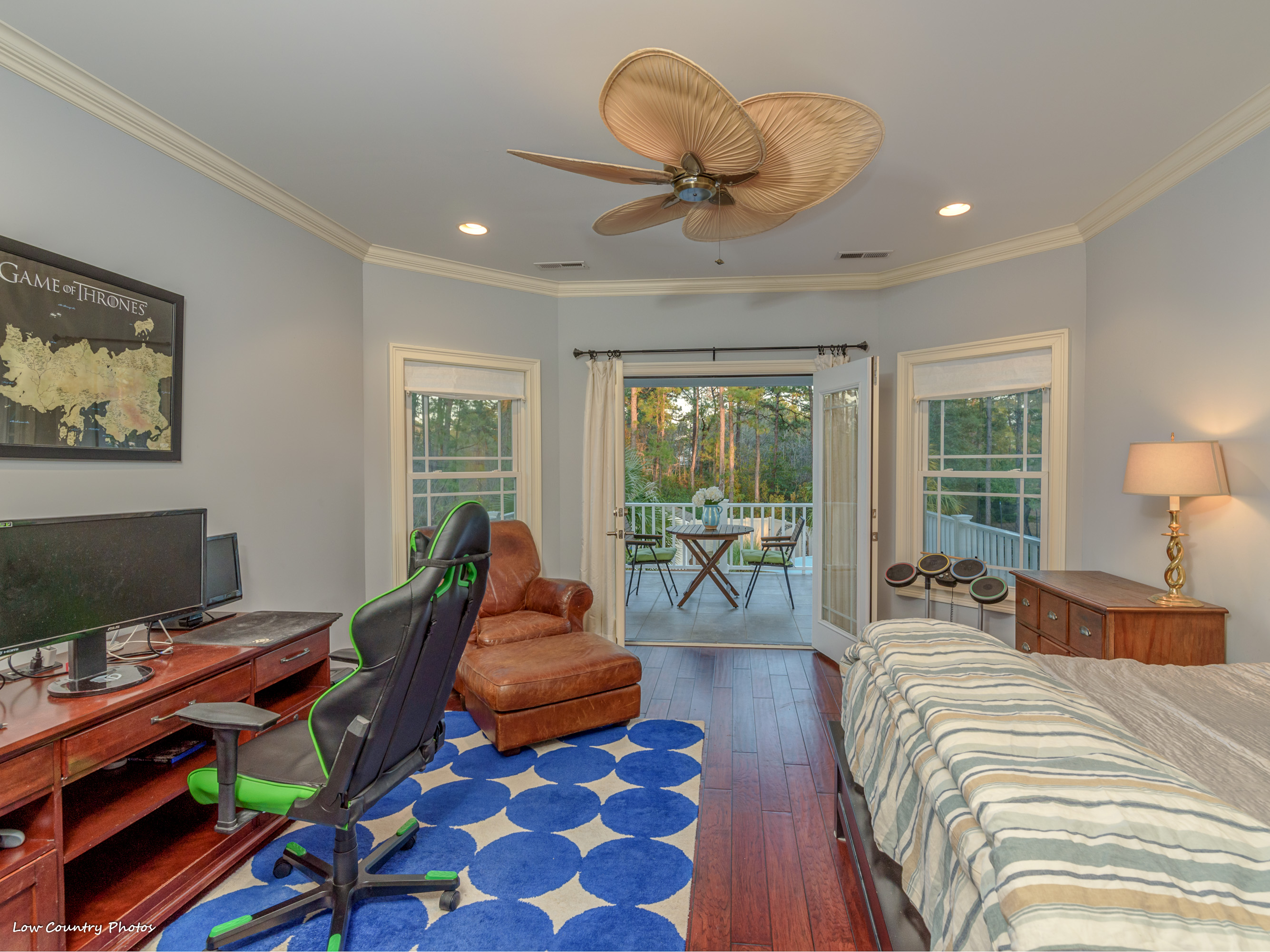 The kitchen is a chefs paradise with Wolf Appliances, natural gas range, custom cabinets, and a large work island. The dining area is large enough to function as a formal eating area or oversized breakfast nook. Additional seating is available at the breakfast bar and is positioned perfectly for entertaining. Rounding out the main level is a spacious office and large master suite. Both rooms have great views of the tranquil backyard setting, and the master has access to a big screen porch. Upstairs you find a second master bedroom with an en-suite bathroom, walk-in closet, and outstanding private covered deck. Across the beautiful cat-walk are two spacious guest bedrooms, with walk-in closets, adjoined by a "Jack & Jill" bathroom.