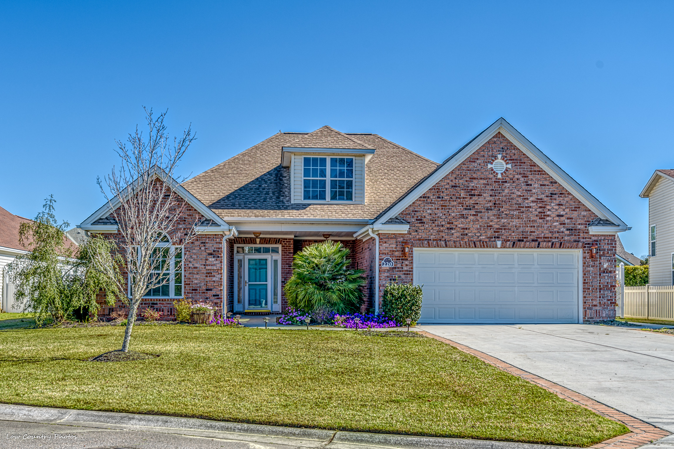 Situated in the historic fishing village of Murrells Inlet is 220 Fox Den Drive. A move-in ready home, the "Steeplechase Floor Plan", is an open floor plan with the majority of the living space on the main level. You will be pulled through the front door of your home by the excellent sightlines and abundant natural light. The spacious open kitchen, perfect for every day needs as well as entertaining, has tons of cabinet and countertop space. Accented by vaulted ceilings the Great Room will be the center of your new lifestyle. However, a Carolina Room that is lined with windows will likely become your favorite room in the house.