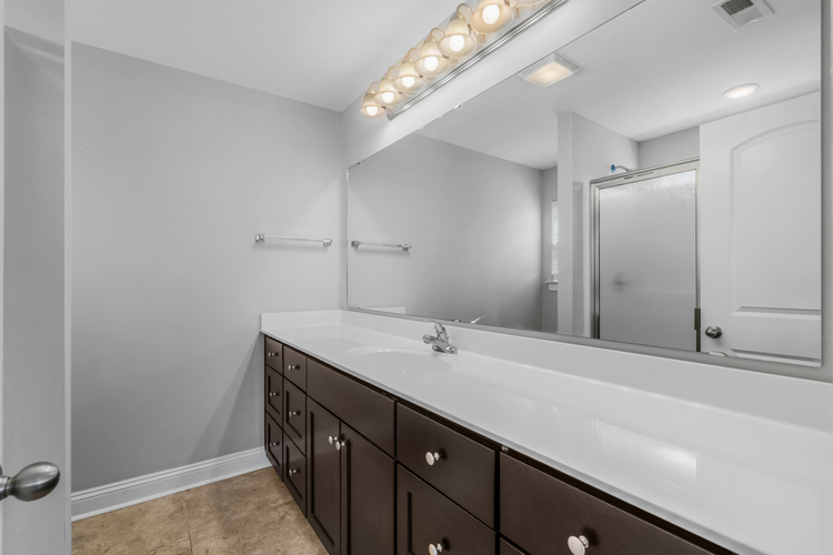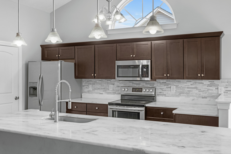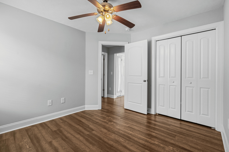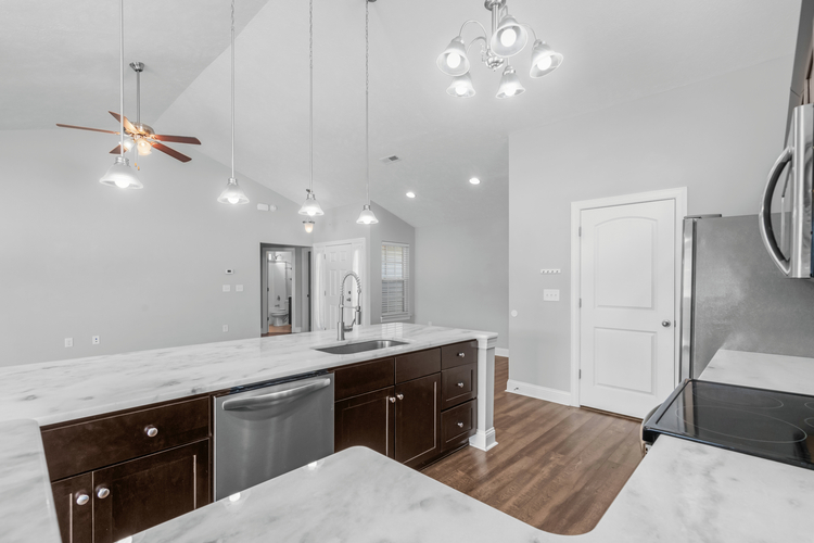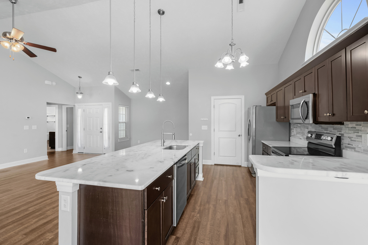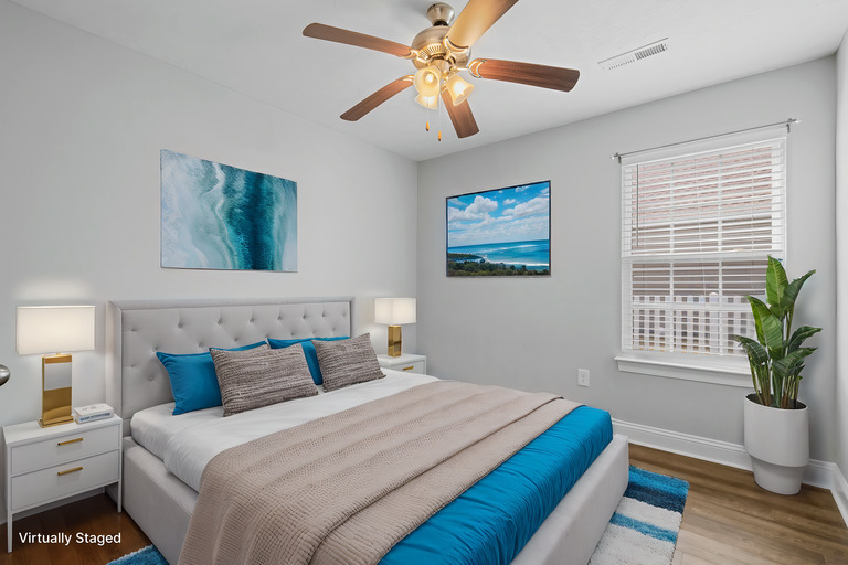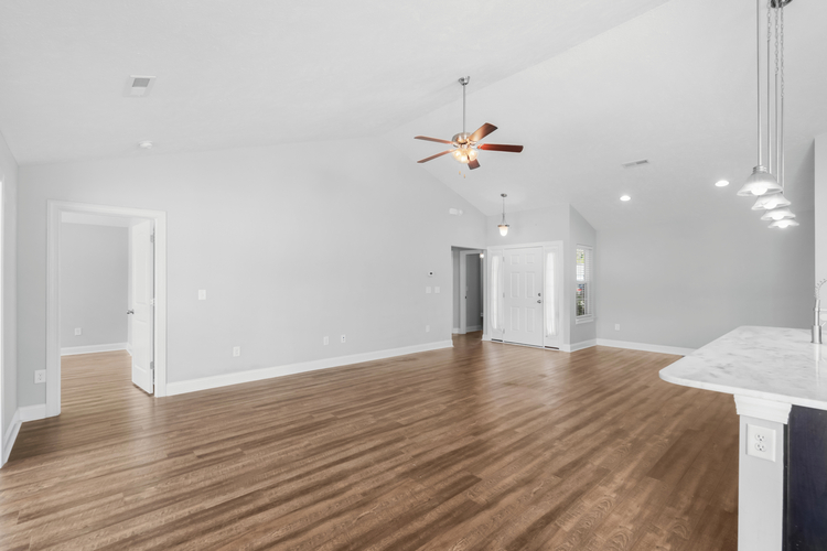 The kitchen is a standout with sleek quartz countertops, perfect for everything from family dinners to entertaining friends. Tucked away at the back, the master suite feels like a private retreat with a spacious walk-in closet and plenty of light. The guest bedrooms are thoughtfully positioned at the front, separated by a full bathroom that’s easily accessible from the main living area.