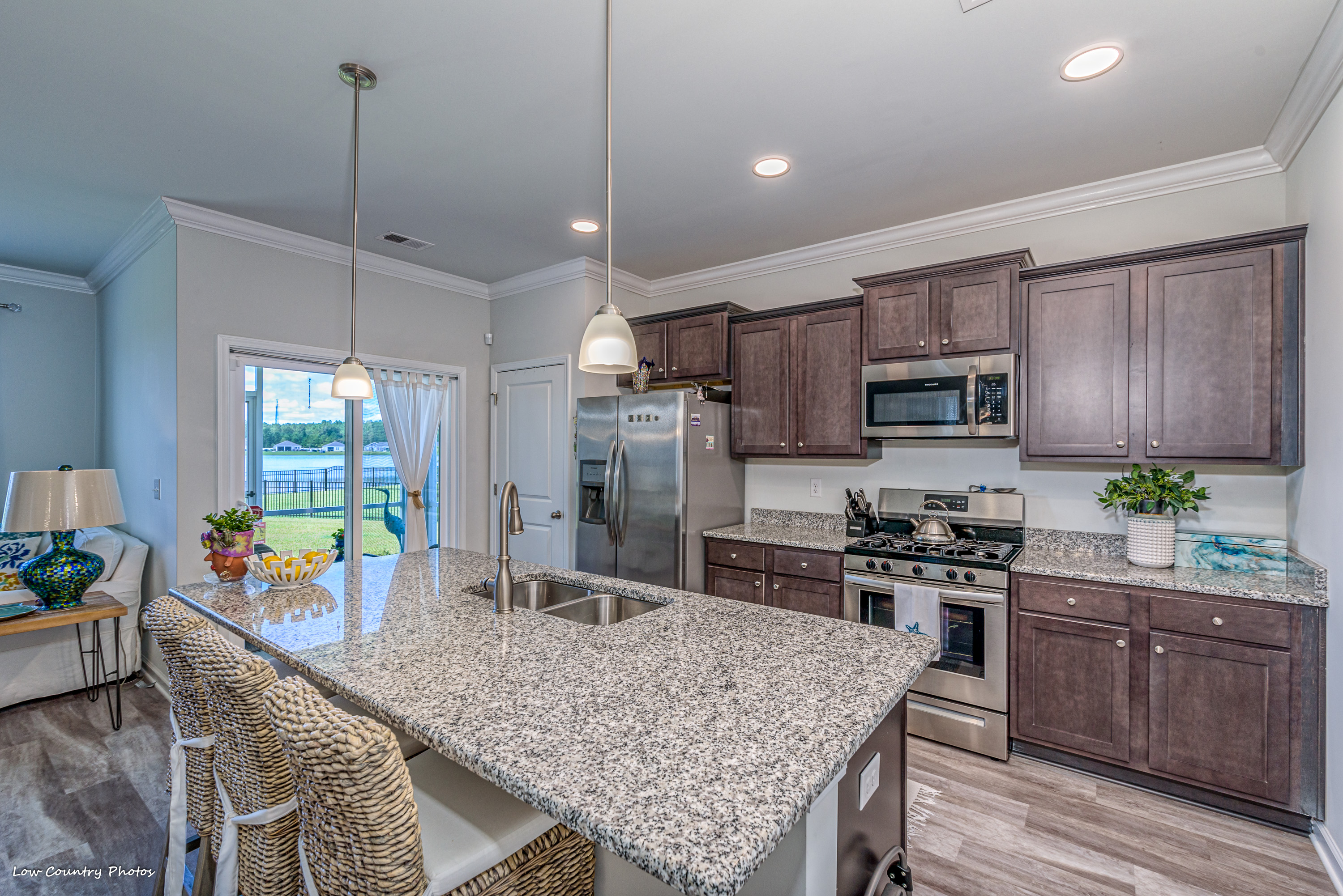 Picture perfect, mint condition, like new home in Conway SC. Crown molding and chair rail moldings accent this bright open floor plan. 281 Carmello Circle sits on a large pie-shaped homesite with ample space between the neighbors, and a has a fantastic lake view. The spacious kitchen has granite countertop, and stainless steel appliances featuring a 6-burner gas range. Flanking the kitchen are the main living areas and a screen porch that offers tranquil lake views.