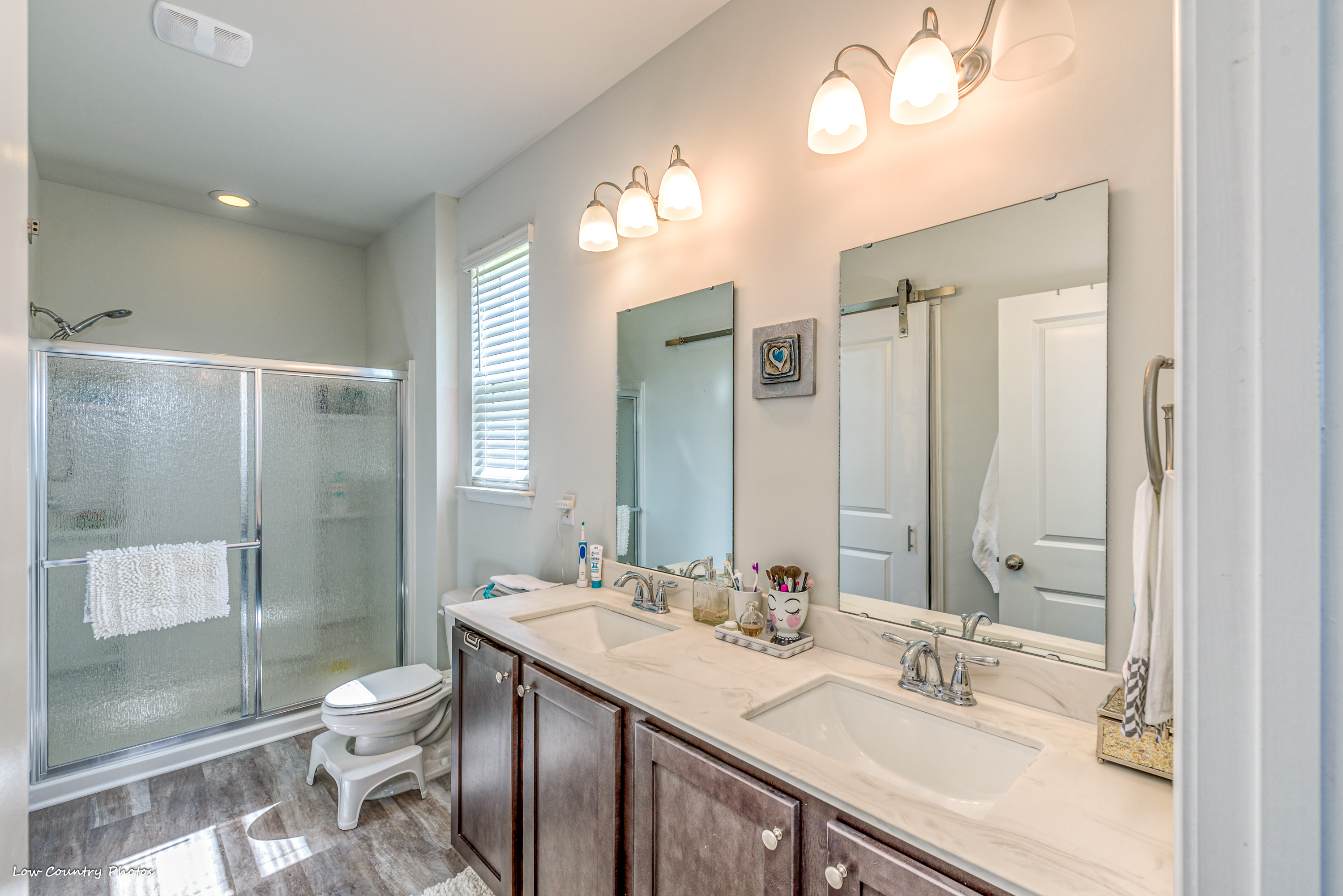 An owner's suite is privately tucked on the backside of the home and has a generous en-suite bathroom and walk-in closet. As all correct split bedroom floor plans, the guest suites are on the front opposite side of the home, affording everyone their privacy. A complete list of upgrades and improvements is available upon request.