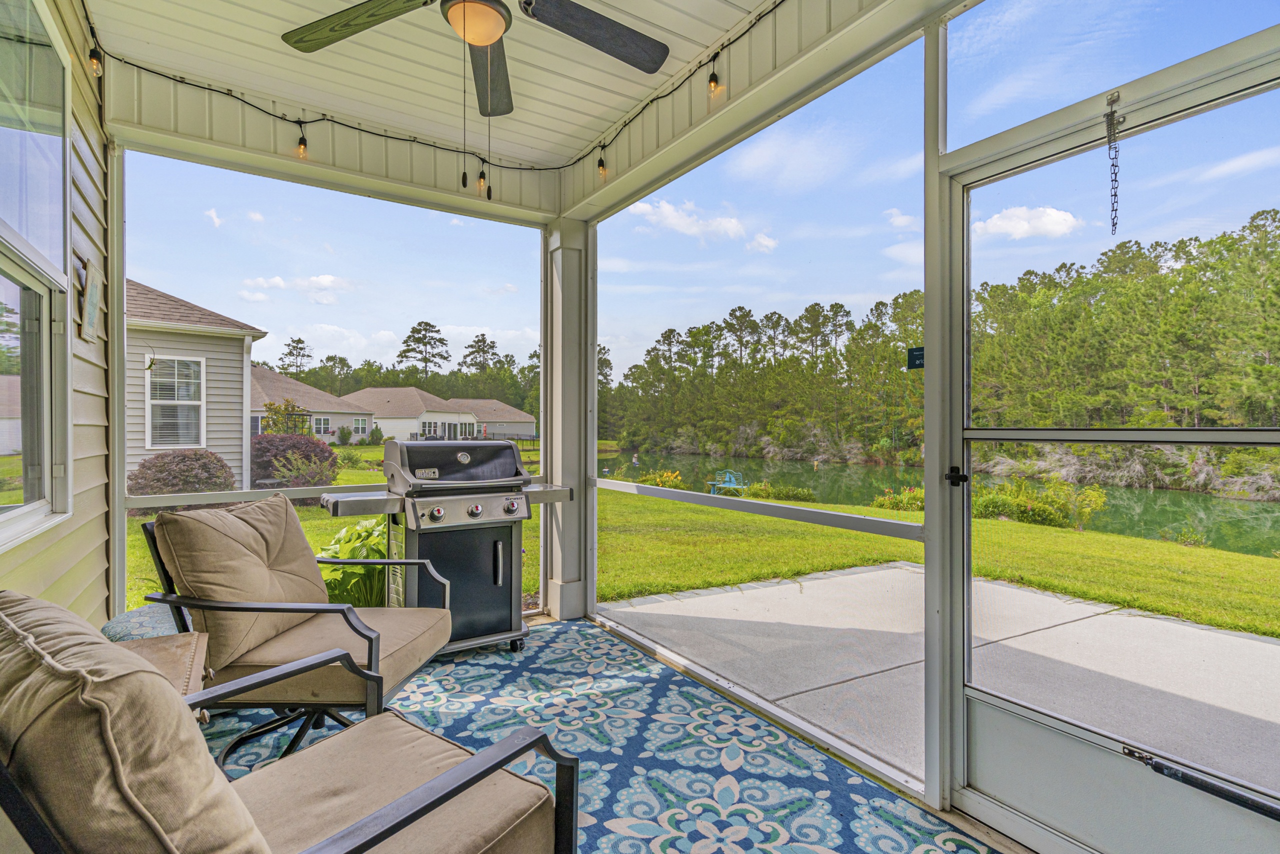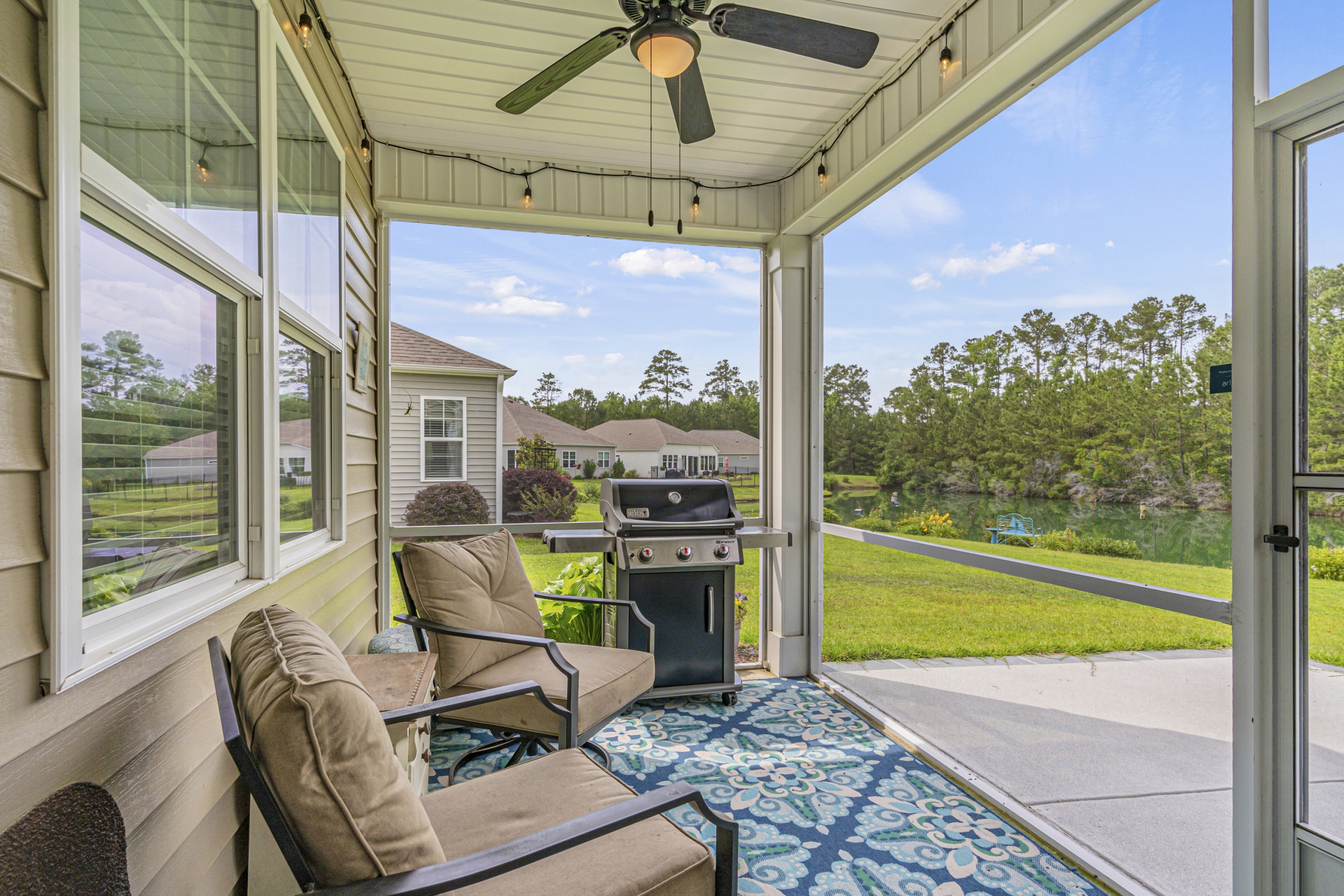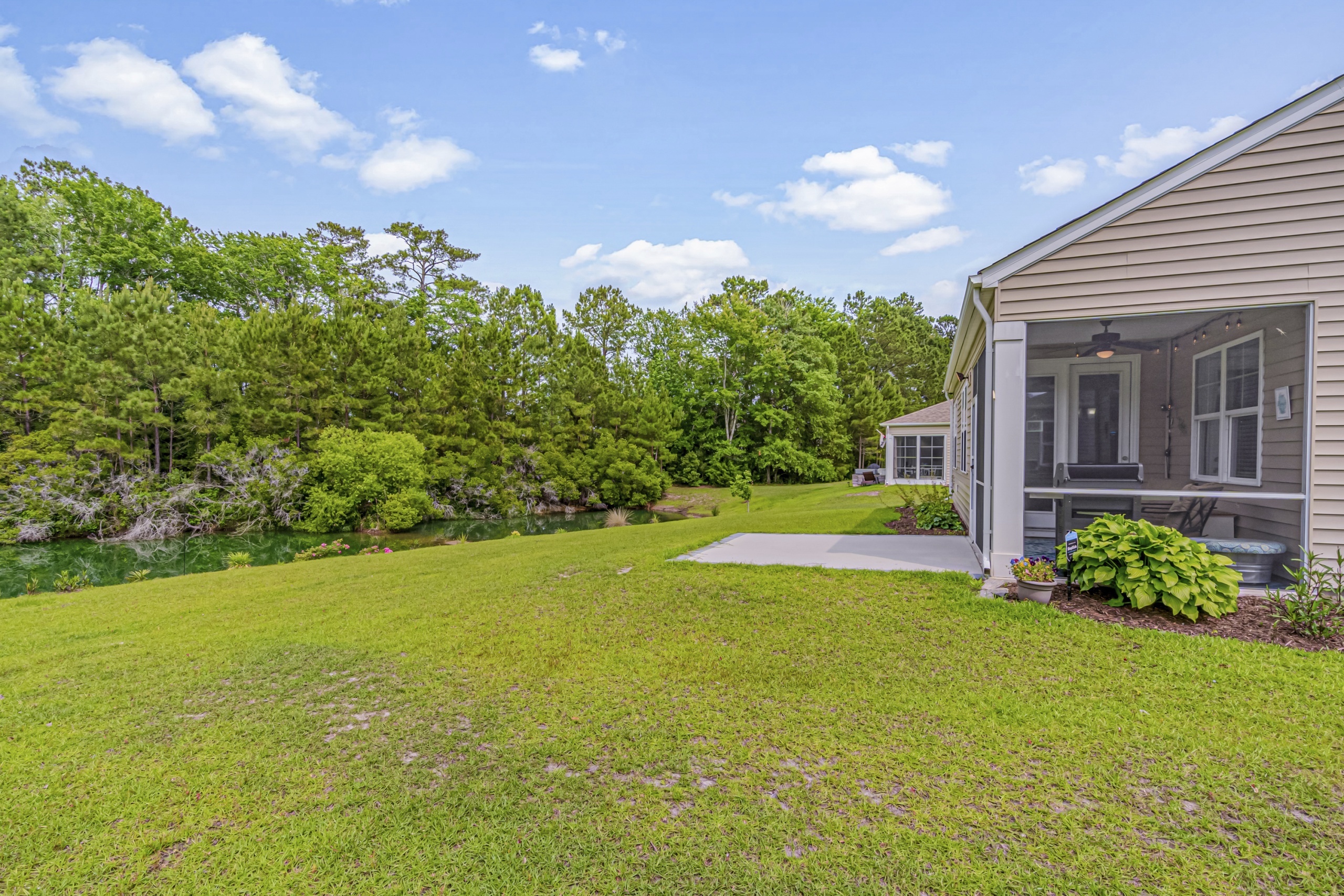 The master suite is truly a retreat, featuring a breathtaking view of the tranquil freshwater pond in the backyard. Just imagine waking up to this picturesque scene every morning! And with a screened porch, you'll have the perfect spot to unwind and enjoy the abundant local wildlife.
