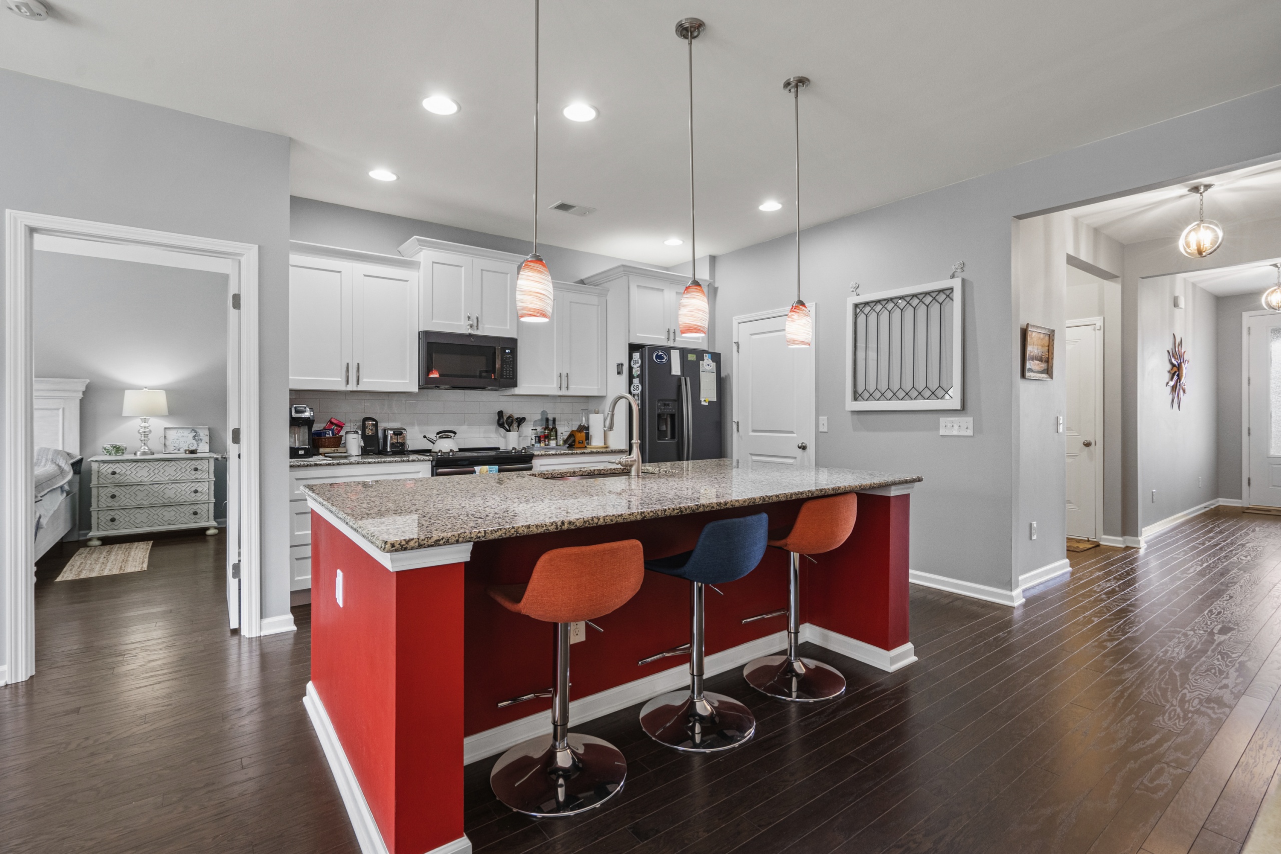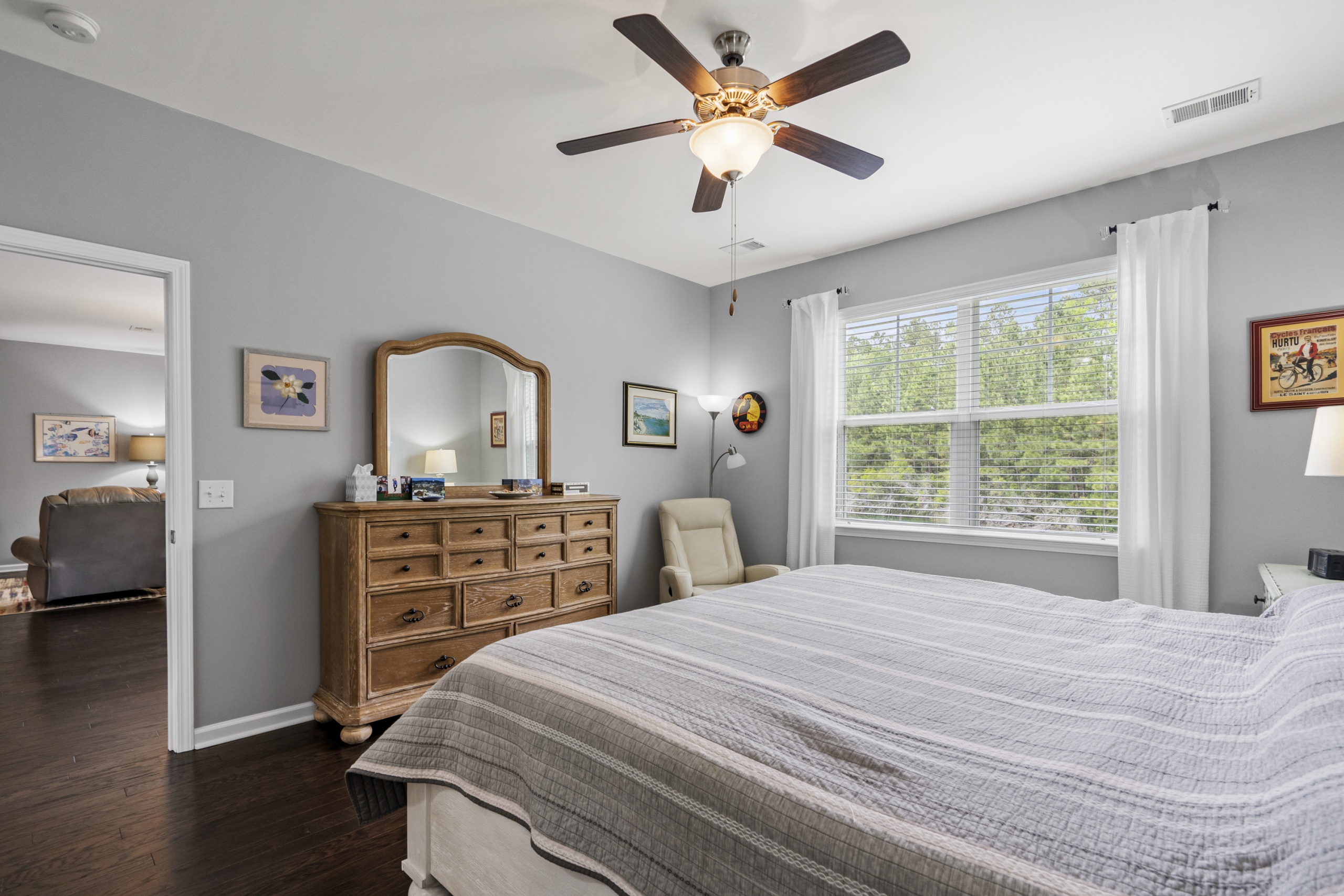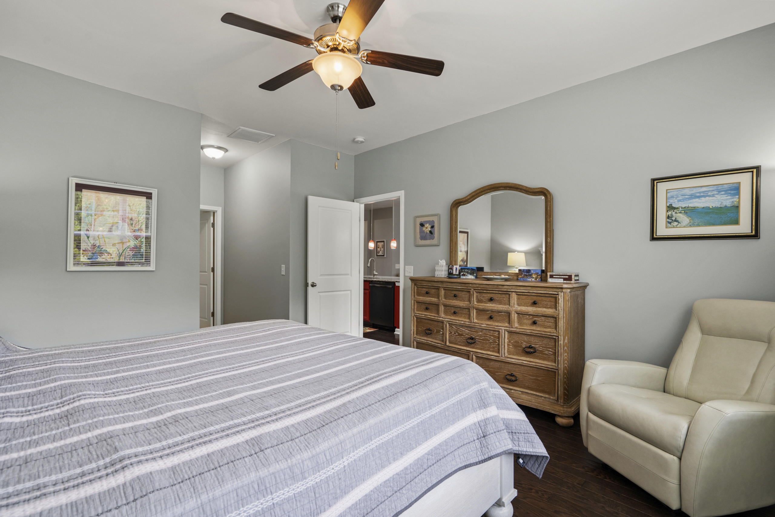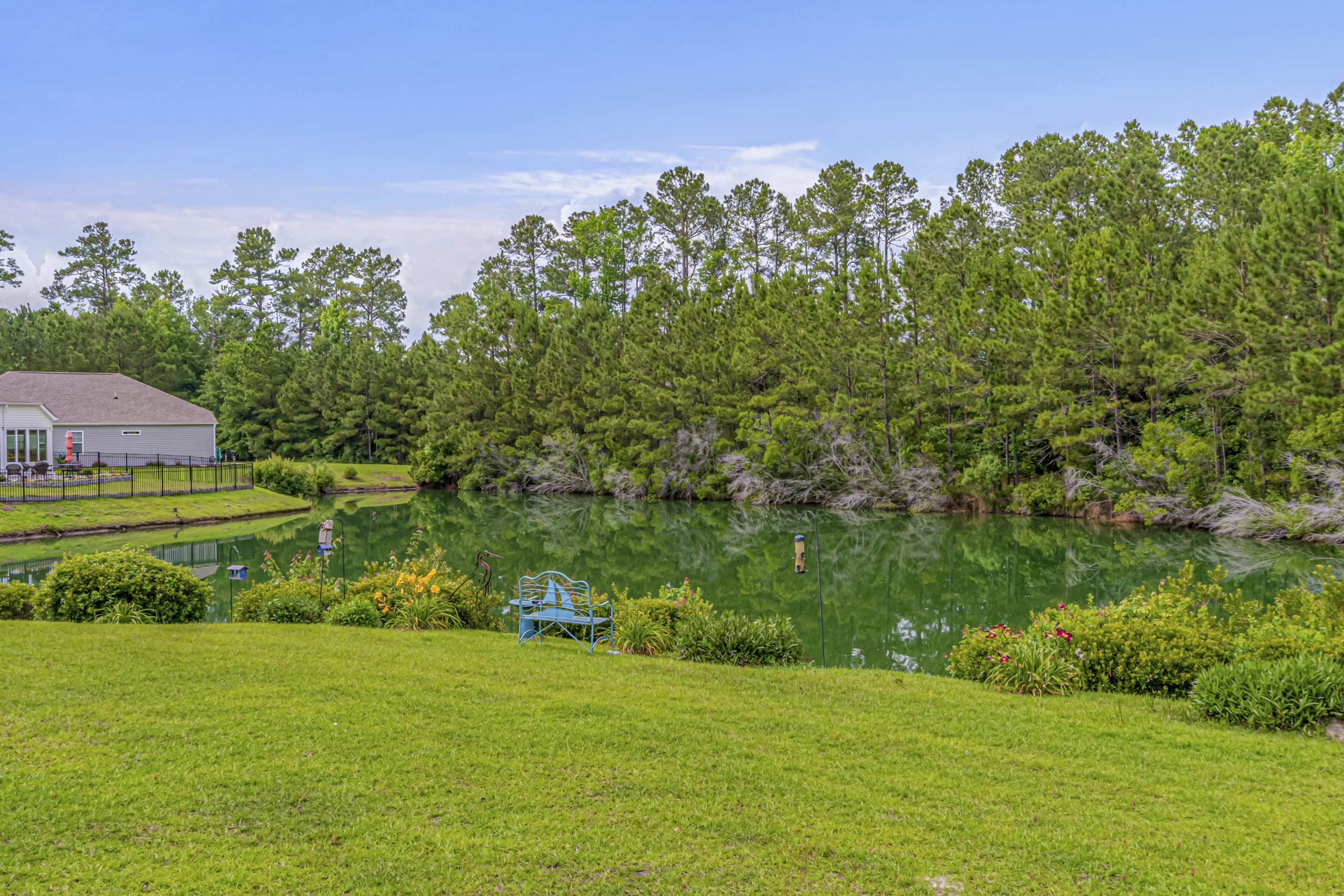 The master suite is truly a retreat, featuring a breathtaking view of the tranquil freshwater pond in the backyard. Just imagine waking up to this picturesque scene every morning! And with a screened porch, you'll have the perfect spot to unwind and enjoy the abundant local wildlife.