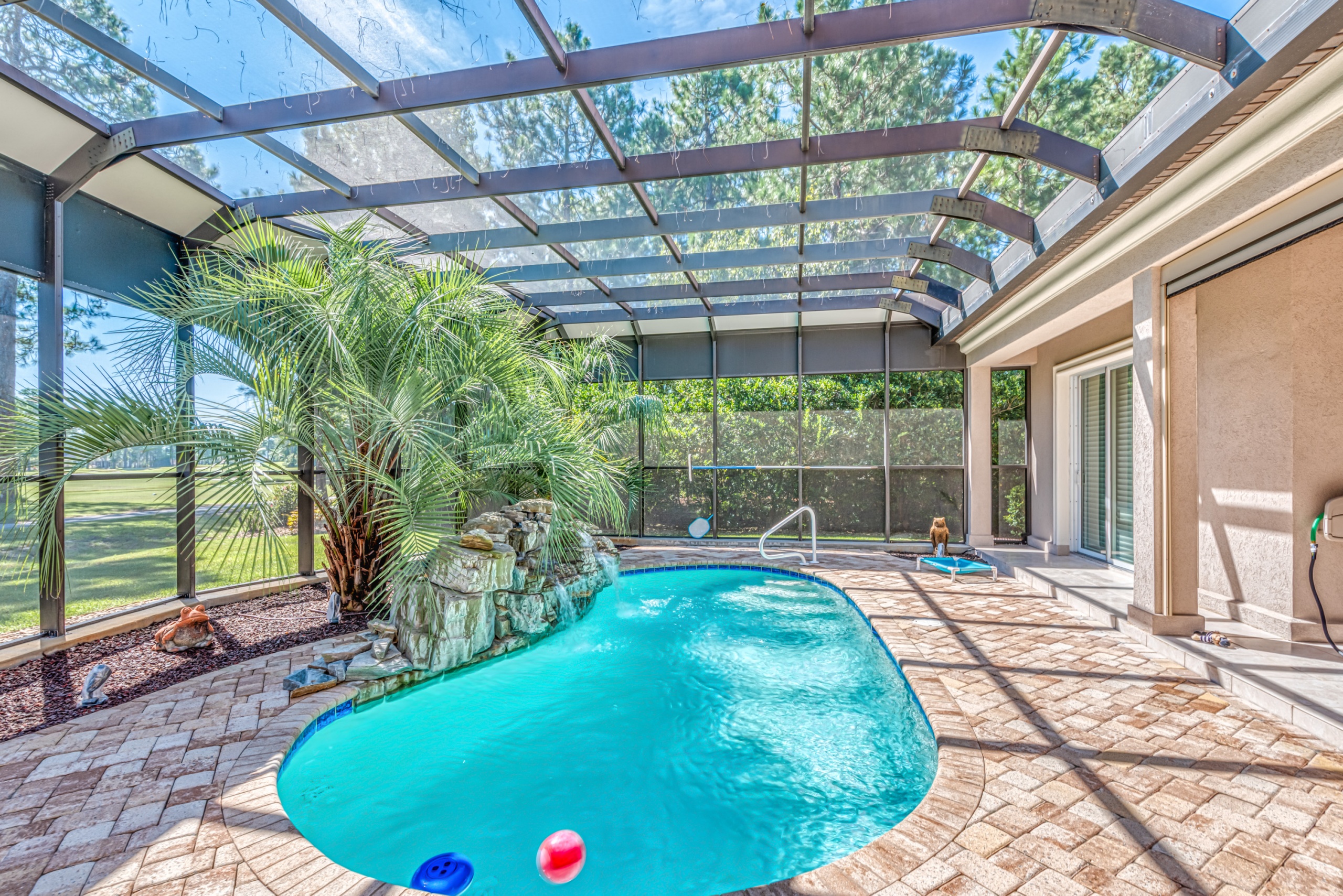 Start living life like you vacation at 4031 Girvan Drive in Myrtle Beach, SC. This former award-winning model home has all of the exclusive features you would expect. Constructed with ICF (Insulated Concrete Form) exterior walls, this home is a structural fortress. Through the front door, you can not help but notice the wall of glass. The entire backside of the house is made up of large windows and eight-foot arcadian-style sliding doors. An expansive covered patio and screened lanai featuring a pool w/ waterfall, summer kitchen, living area, and dining area will instantly become your favorite place to hang out. A spacious kitchen and family room have walls made of sliding glass doors that disappear inside the wall and "bring the outside in."