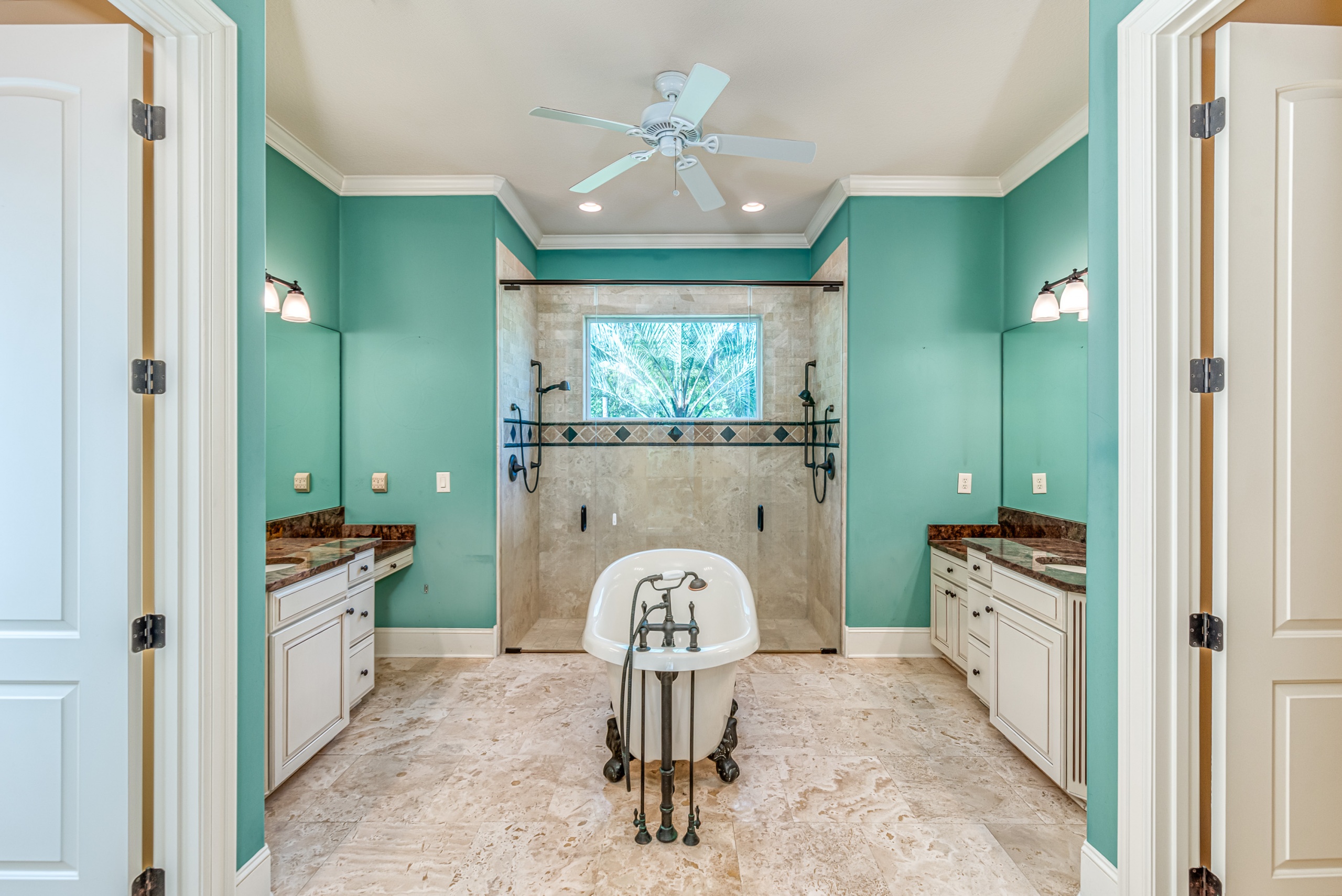 A first-floor owner's suite has large sliding doors opening into the lanai and pool area. The owner's suite bathroom gives each person their own space with "his and her" water closets, vanities, and closets. Rounding out the main level is a butler pantry, half bathroom, and large laundry room. Upstairs features two guest bedrooms with en-suite bathrooms and two flex rooms. The backside bedroom has a private balcony with a dynamic golf course view. These flex rooms have endless possibilities. They could be used as bedrooms, offices, media rooms, or workout rooms. Additional highlights in this magnificent home are Rinnai tankless water heater, central vacuum, travertine flooring, gutter helmets, and much more.