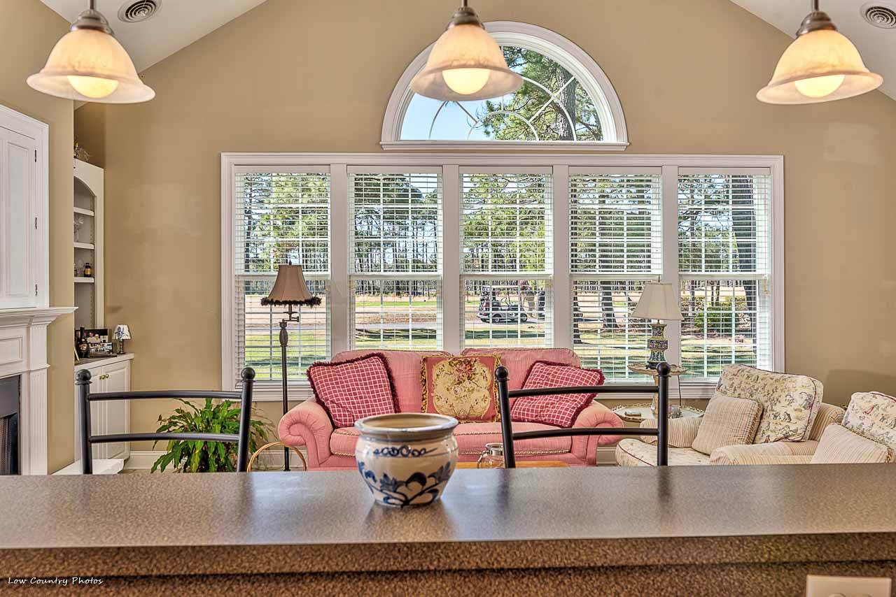 Executive golf course home at Legends Resort. An all one level former model, this home is move-in condition and an outstanding value. The focal point of this split bedroom floor plan is the open kitchen and great room. Vaulted ceilings and a wall of windows afford tons of natural light and offer fantastic views of the Parkland #3 tee box. The master suite and guest bedrooms are separated by the living areas and provide everyone with privacy. A walkup attic is perfect for storage and could be renovated into living space if you desired.