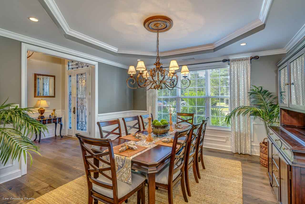 Situated on a quiet cul-de-sac the owner's clubhouse is just a short walk away. This versatile floor plan has all the upmarket features the most discriminating home buyers have come to expect. Through the front door, you are greeted with a 20-foot high ceiling grand entrance foyer, dining room, and a great room all recently remodeled with beautiful 7 1/4 inch wide weather gray hardwood flooring. The massive kitchen accented by a HUGE island and will instantly become a fan favorite. The kitchen is flanked by an oversized breakfast nook that is suited for all dining occasions and affords tranquil golf course and wooded views. For your more formal events, the stately dining room is perfect for special occasions or dinner parties.