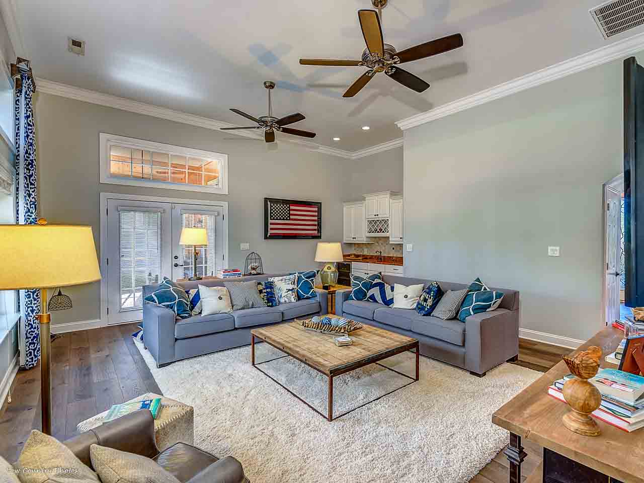 The outside living area features a large backyard patio with fire pit, a large Jacuzzi tub, outdoor shower, with privacy and much more. A substantial oversized three car garage provides ample room for cars, golf cart, toys, tools, storage and so much more.
