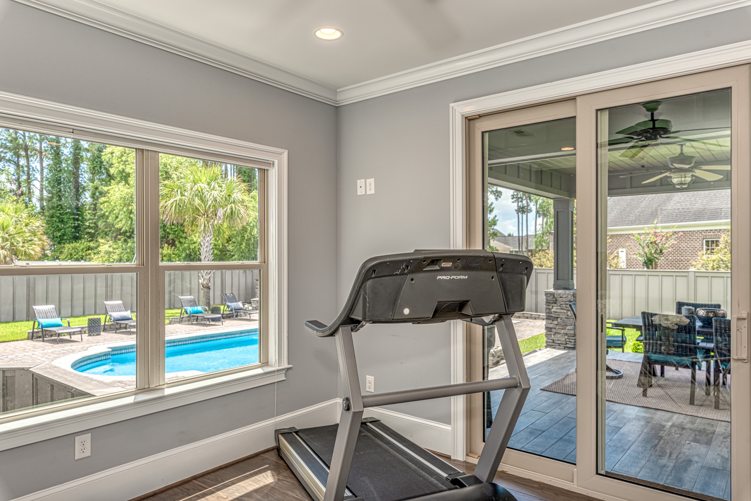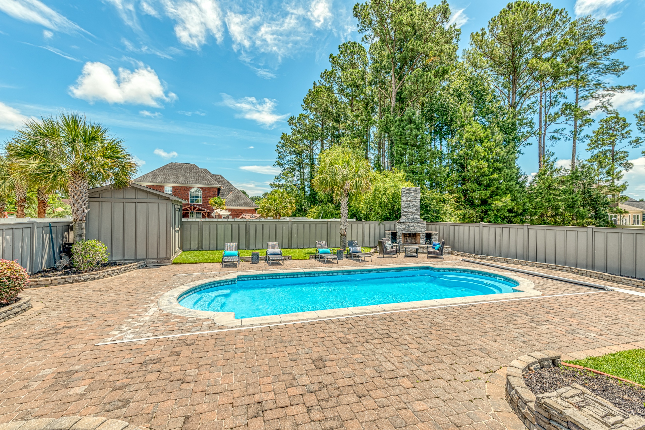 Upstairs, the master bedroom offers solitude from the rest of the home. The master bathroom has a whirlpool tub, a walk-in tile shower, and dual walk-in closets. Additionally, the bonus room has private access from the master bedroom and could function as a master bedroom retreat, parlor, media room, or separate living area. The spacious guest bedrooms also have walk-in closets and are situated in a traditional “Jack & Jill” bathroom setup. The enormous upstairs laundry room is perfectly positioned and has tons of counter & cabinet space, making the “laundry” task almost enjoyable. The backyard, covered patio, saltwater pool, and outdoor fireplace are a world unto their own. The privacy fence makes this feel like your own tropical oasis. If you have ever dreamed of living the #VacationLife, you can find it at 5101 High Society Court, Myrtle Beach SC 29577.