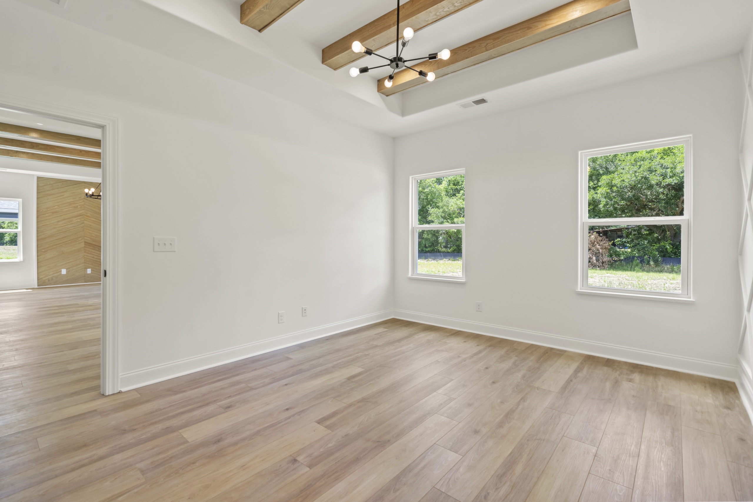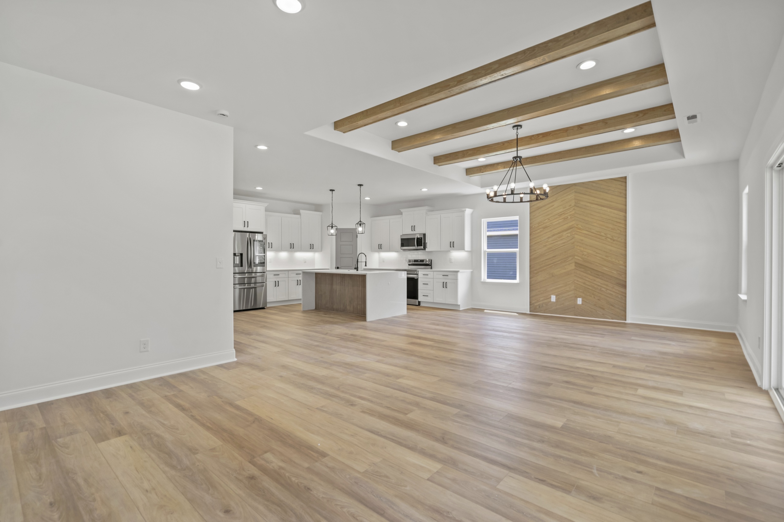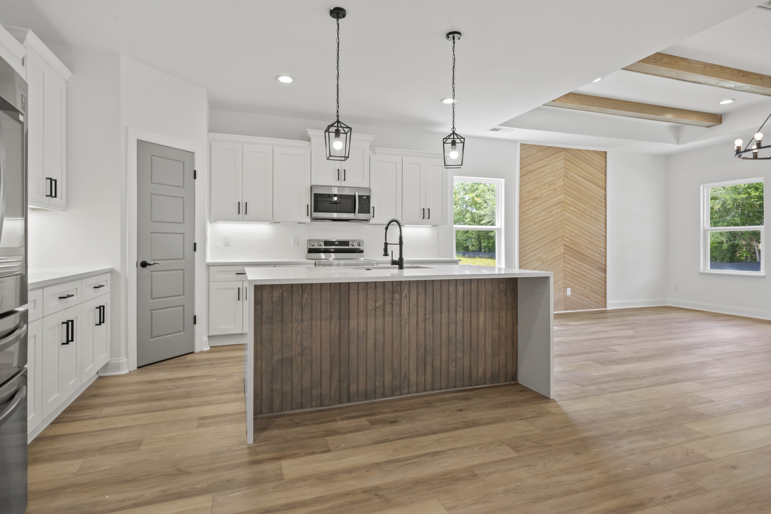 Step inside and be greeted by an open and inviting living space featuring a single-level split-bedroom floor plan, beautiful LVP flooring, and a generously sized open kitchen complete with granite countertops and a waterfall-edge work island. This well-appointed home also boasts tray ceilings in the master bedroom and living room, adding a touch of sophistication to your everyday living experience.