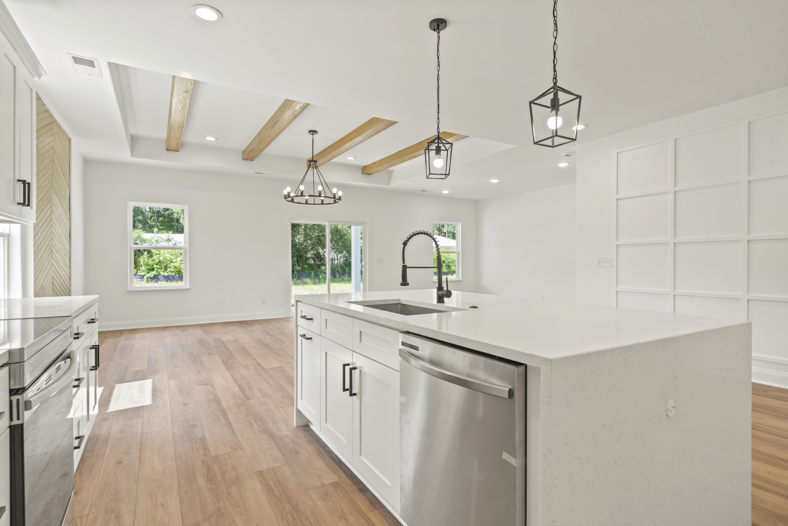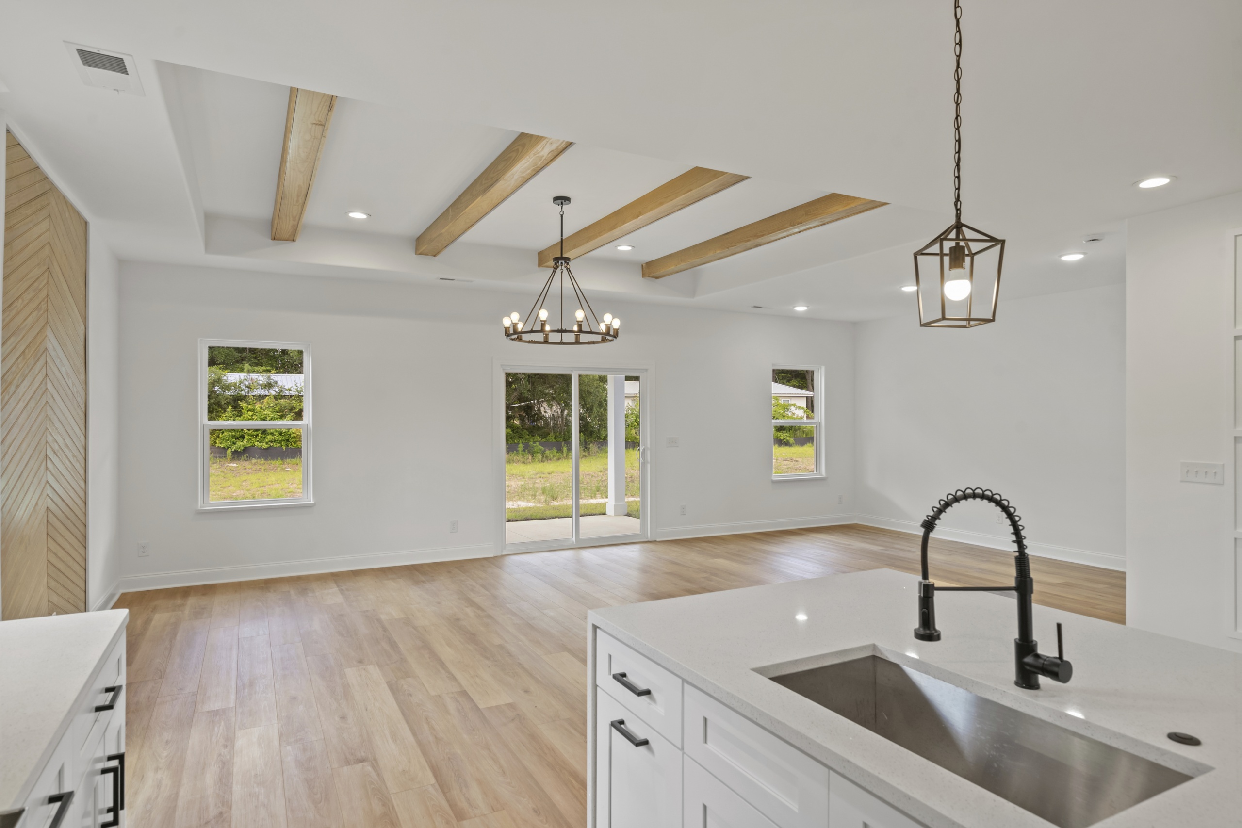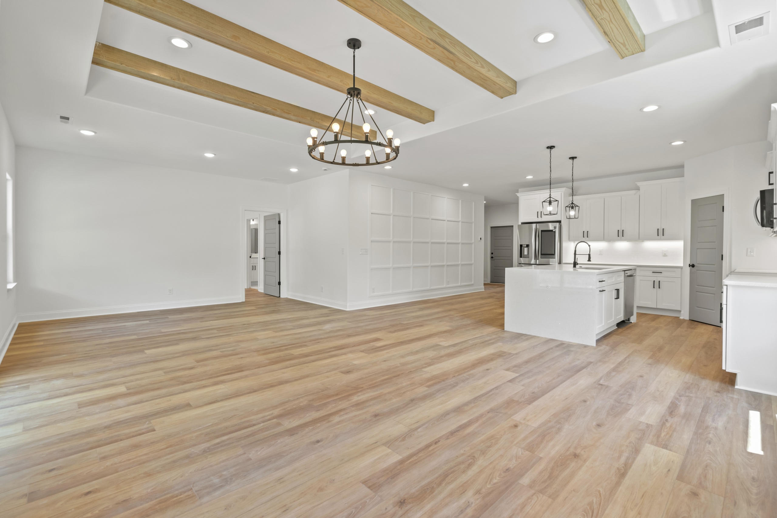 Step inside and be greeted by an open and inviting living space featuring a single-level split-bedroom floor plan, beautiful LVP flooring, and a generously sized open kitchen complete with granite countertops and a waterfall-edge work island. This well-appointed home also boasts tray ceilings in the master bedroom and living room, adding a touch of sophistication to your everyday living experience.