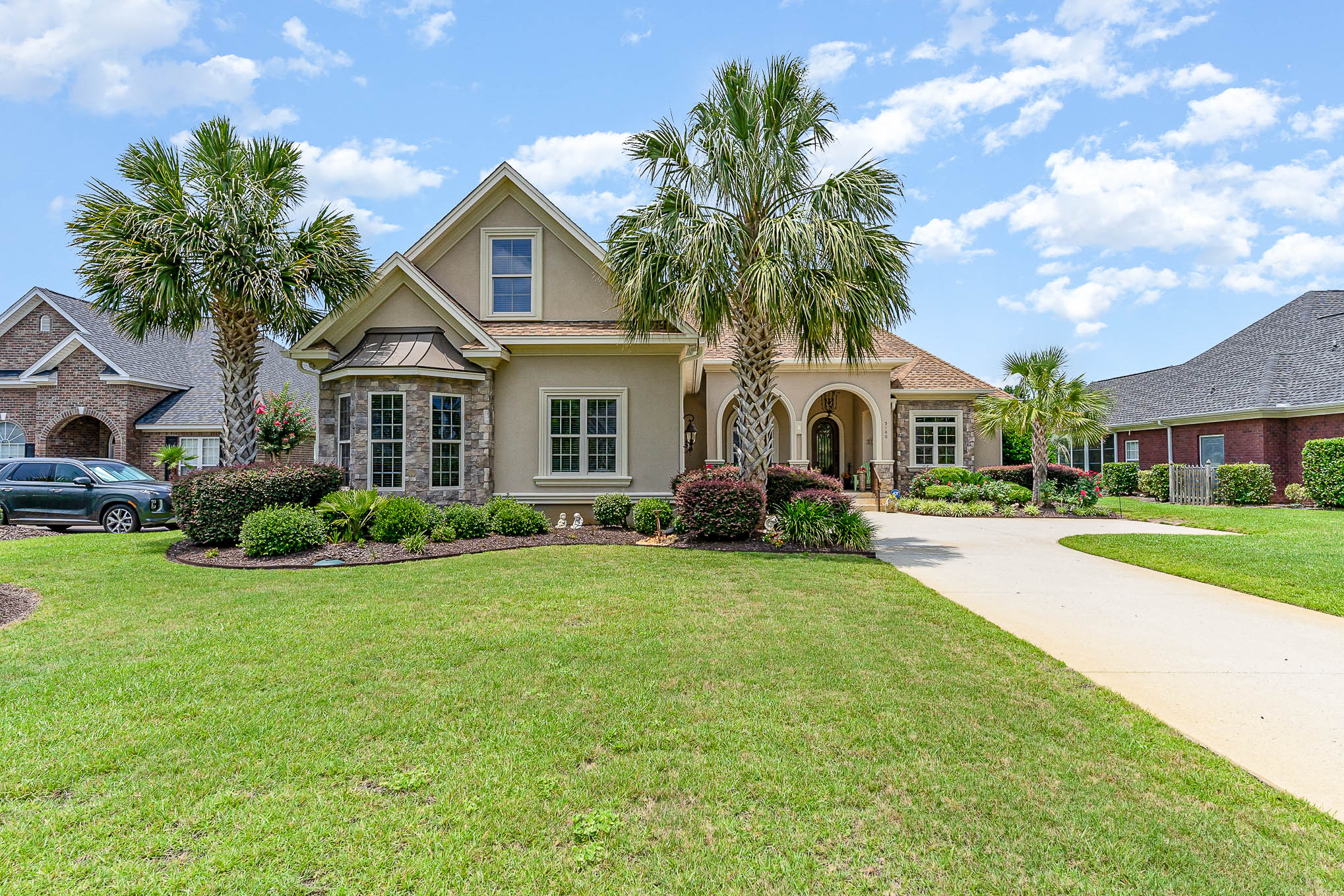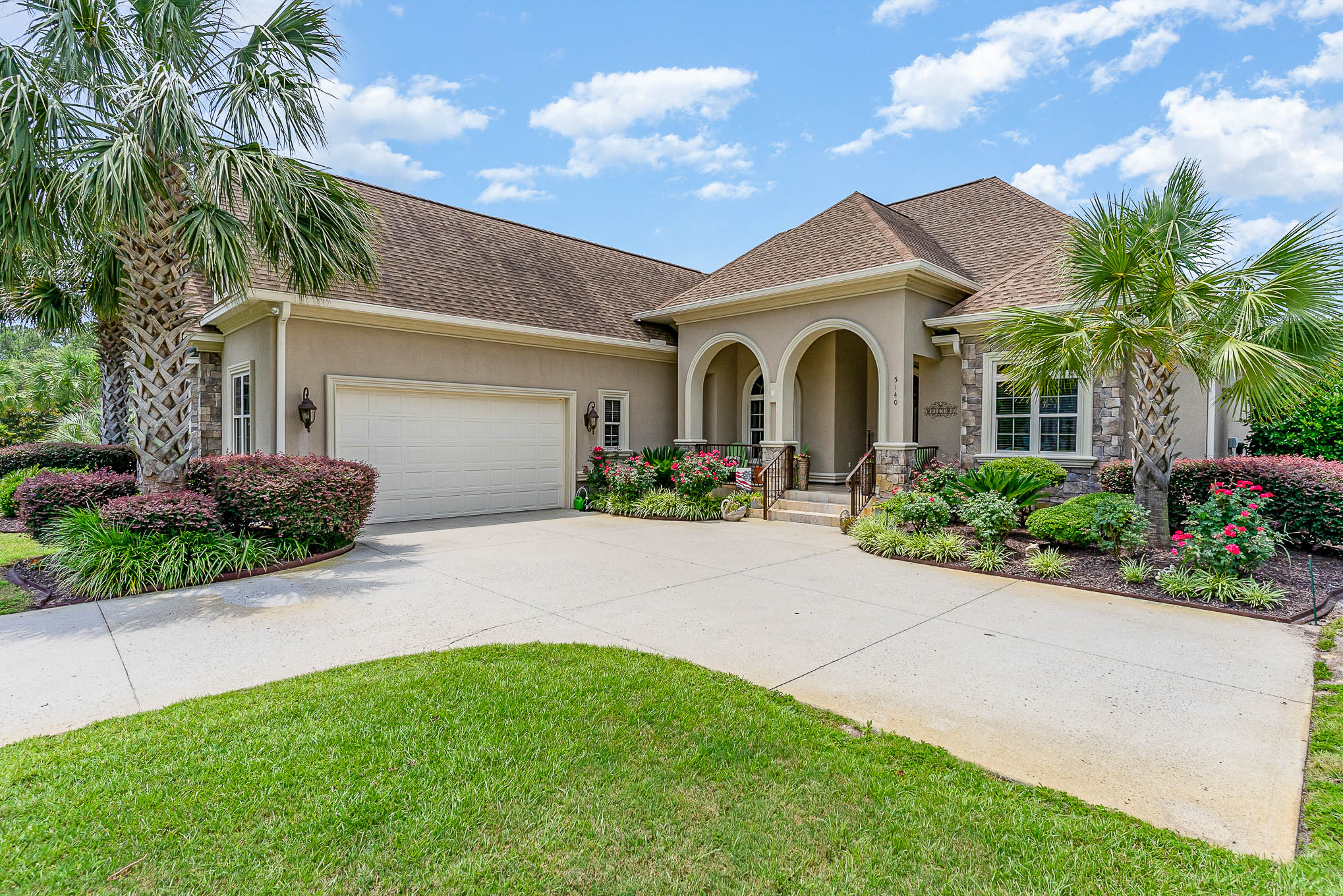 Nestled comfortably in a private residential enclave of Legends Resort is 5140 Alwoodley Lane. This custom-built home has a host of exclusive features. Handscraped hardwood floors, travertine tile, gourmet chef's kitchen, butler pantry, and the list goes on. The Mediterranean design features a split bedroom floor plan with three bedrooms on the main level and a fourth bedroom or bonus room upstairs. A covered back patio has a summer kitchen that offers tranquil views of a pond and water feature. An oversized two-car garage and extended driveway offer you ample parking space. This home is in mint condition and is move-in ready. Do not wait because this one will not last.
