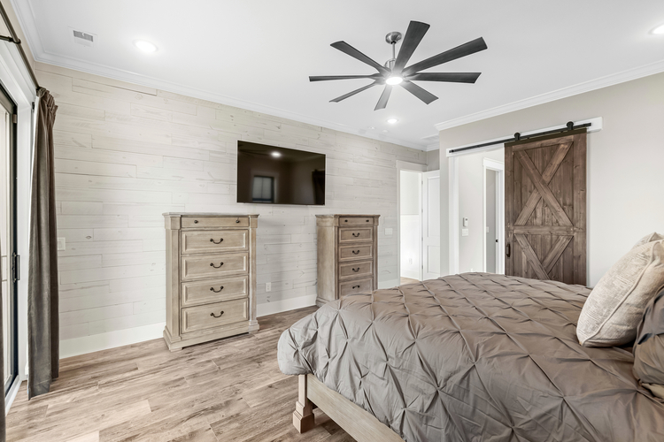 This custom-built home features four bedrooms, each with its ensuite bathroom, a spacious open kitchen with ample counter and cabinet space, and elegant finishes like crown molding, coffered ceilings, and shiplap accents. The first-floor master suite offers convenience, while the upstairs and downstairs living areas provide ample space for relaxation. Enjoy outdoor living with a large covered back patio and a second-floor balcony with breathtaking views. Additional highlights include a two-car garage with a golf cart door, a cubby drop zone, and oversized laundry rooms on both levels. There are too many upgraded features to list—this home is a must-see! ?