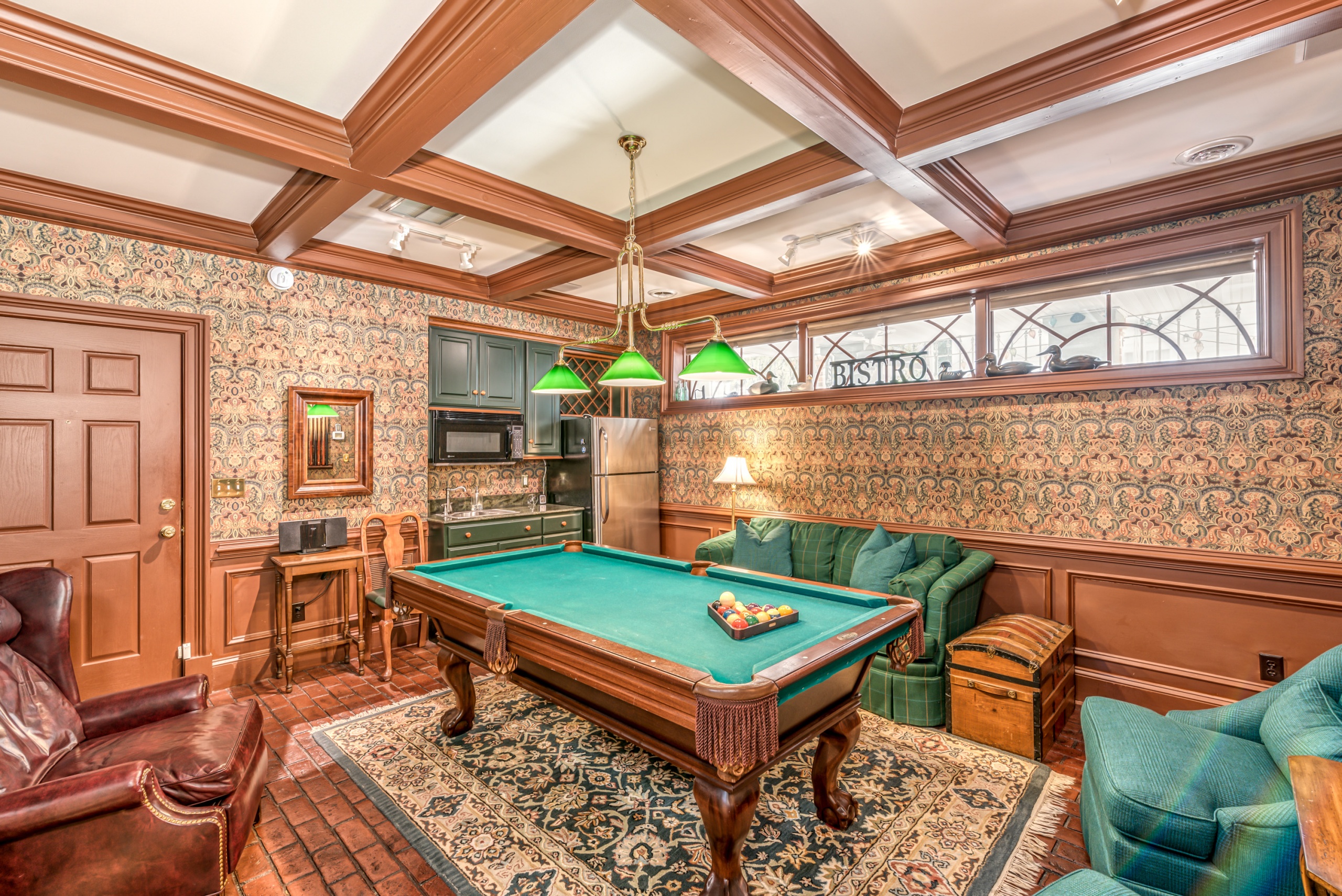 On the top floor are three generously sized guest bedrooms with ample closet space, a small office, and a bath and a half. The bottom level of the home is set up as a game room with a wet bar and wine cellar but could have multiple different uses. The game room is accented by a beautiful coffered beam ceiling and matching custom trim. The hidden gem of this residence is a "bistro-like" covered area on the back side of the home. Tucked away below the pool area and under the house, this secluded area will provide countless hours of relaxation.