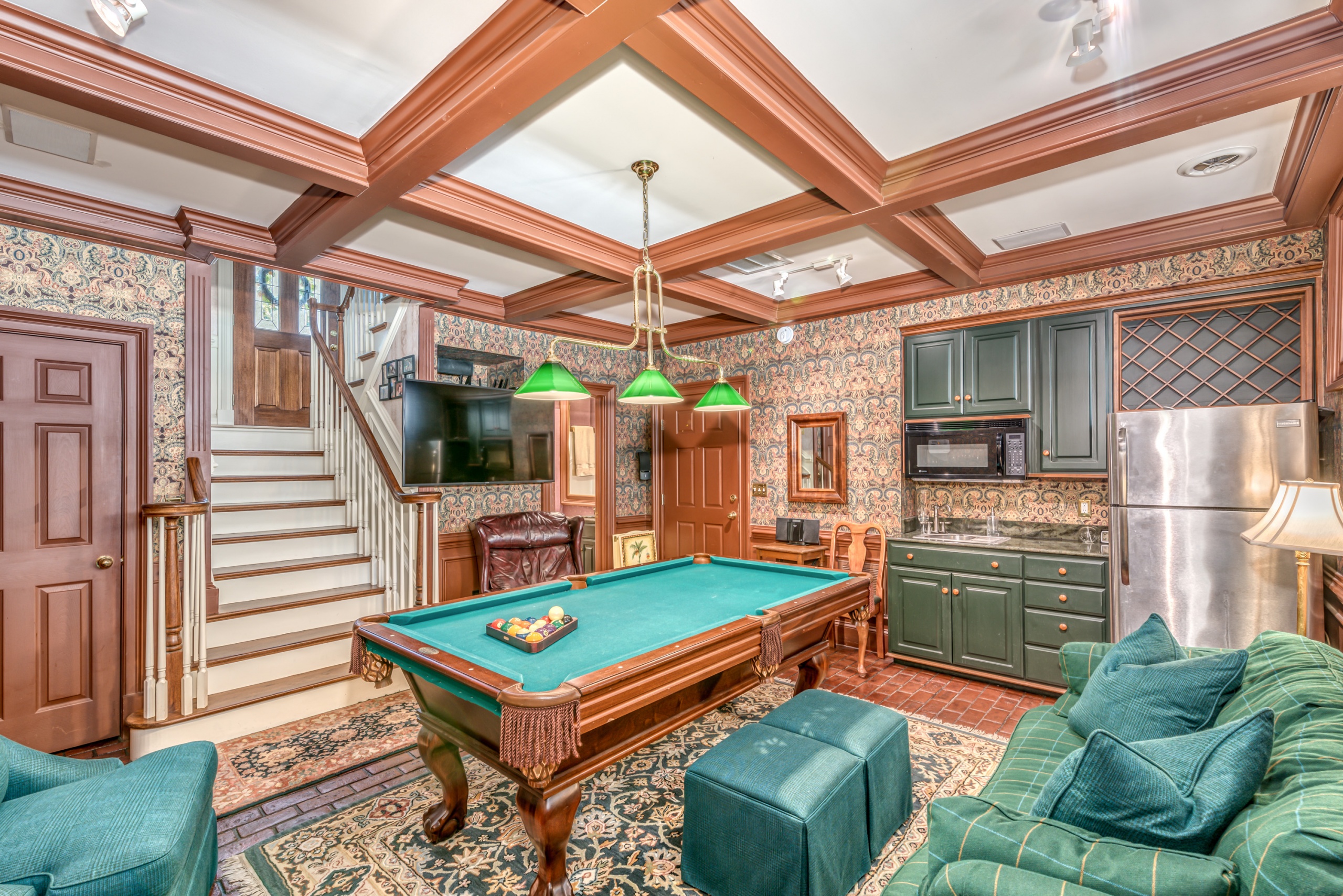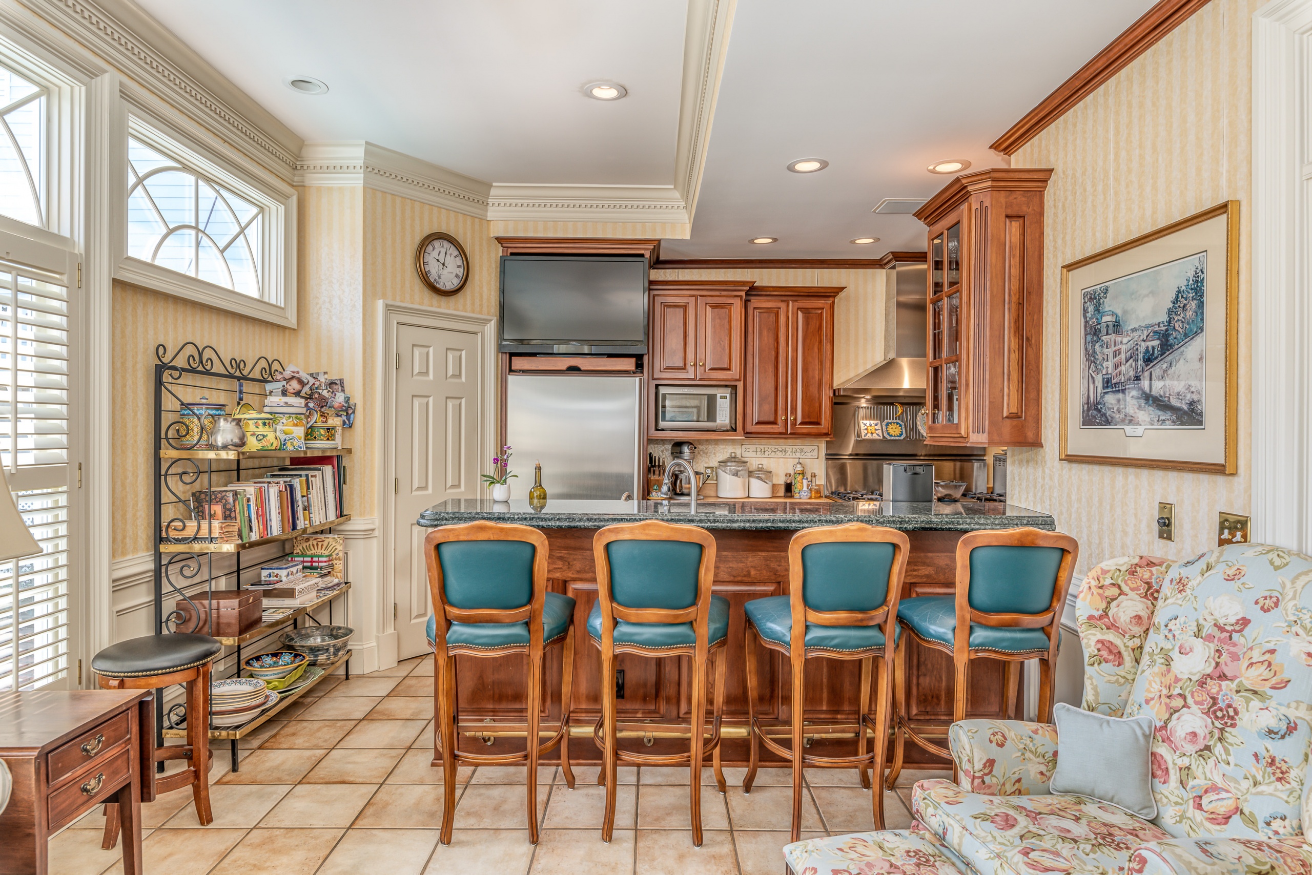 The main living area of this magnificent property features a spacious living room w/ a fireplace, a family room with tons of natural light, a commercial-grade kitchen, a half bath for guests, and an owner's suite w/ an en-suite bathroom. Additionally, the kitchen flows into the family room, has a breakfast bar, and has easy access to the sunroom. The large sunroom has a hot tub and a fantastic view of the community pool.
