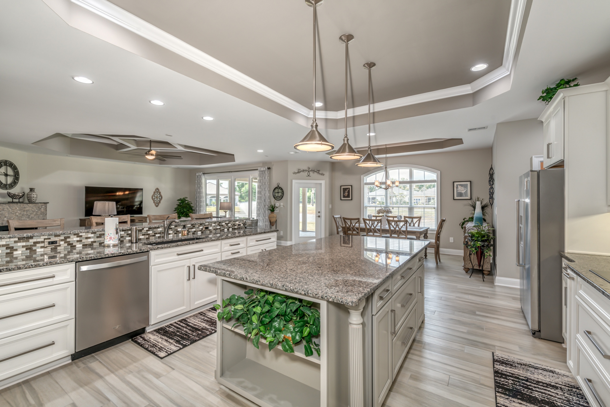 The Owner’s Suite and the kitchen will be a hotly debated issue regarding which will be your favorite room. The owner's suite encompasses the entire left-hand side of the home. The sleeping area is large enough to accommodate a sitting space, a king-sized bed, and traditional bedroom furniture. In the master bathroom, you are afforded two oversized walk-in closets, a double bowl vanity, a Whirlpool tub, and a dual-headed, corner walk-in shower. Additionally, as a bonus, you have a separate shoe closet with custom built-ins to keep all your footwear organized.