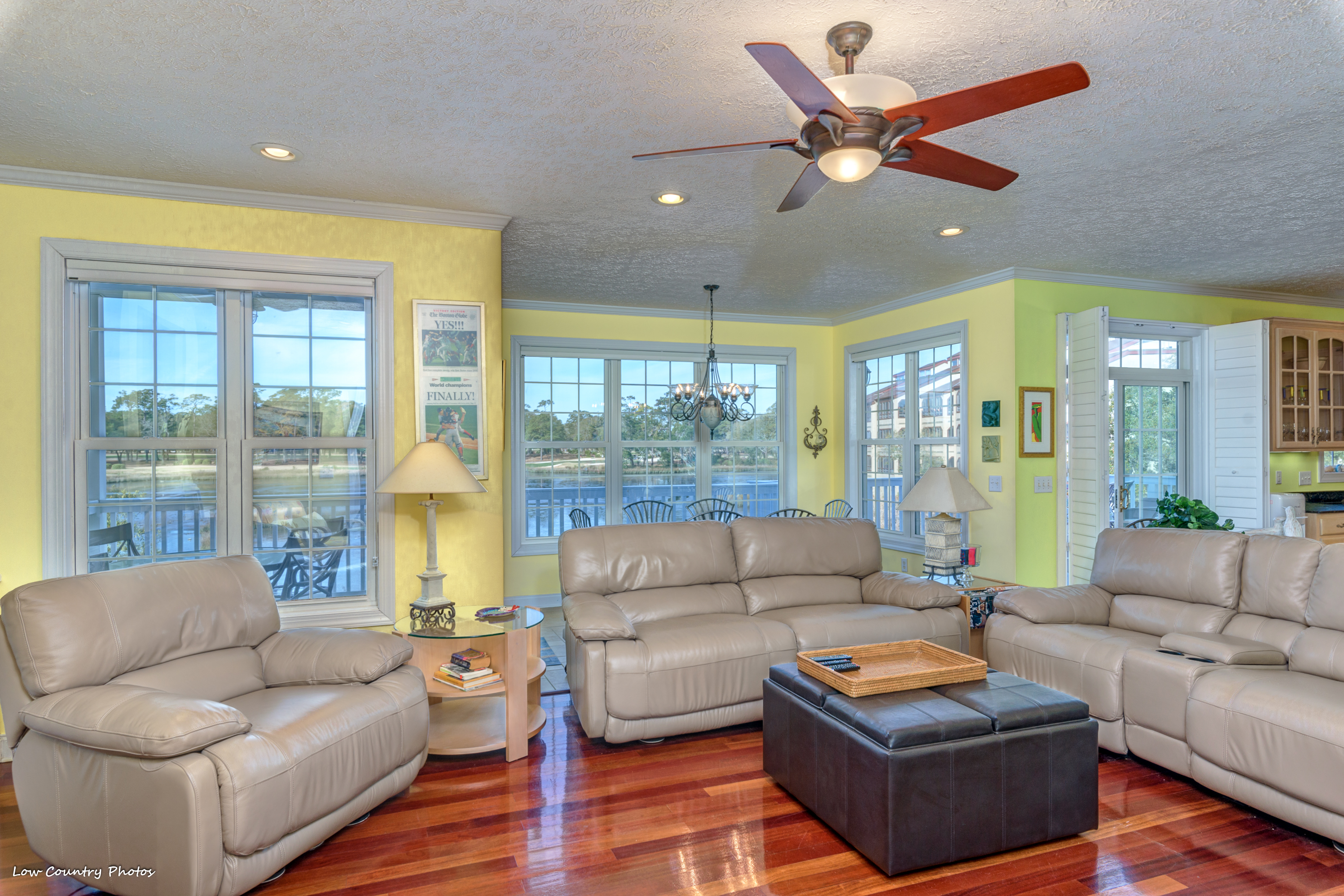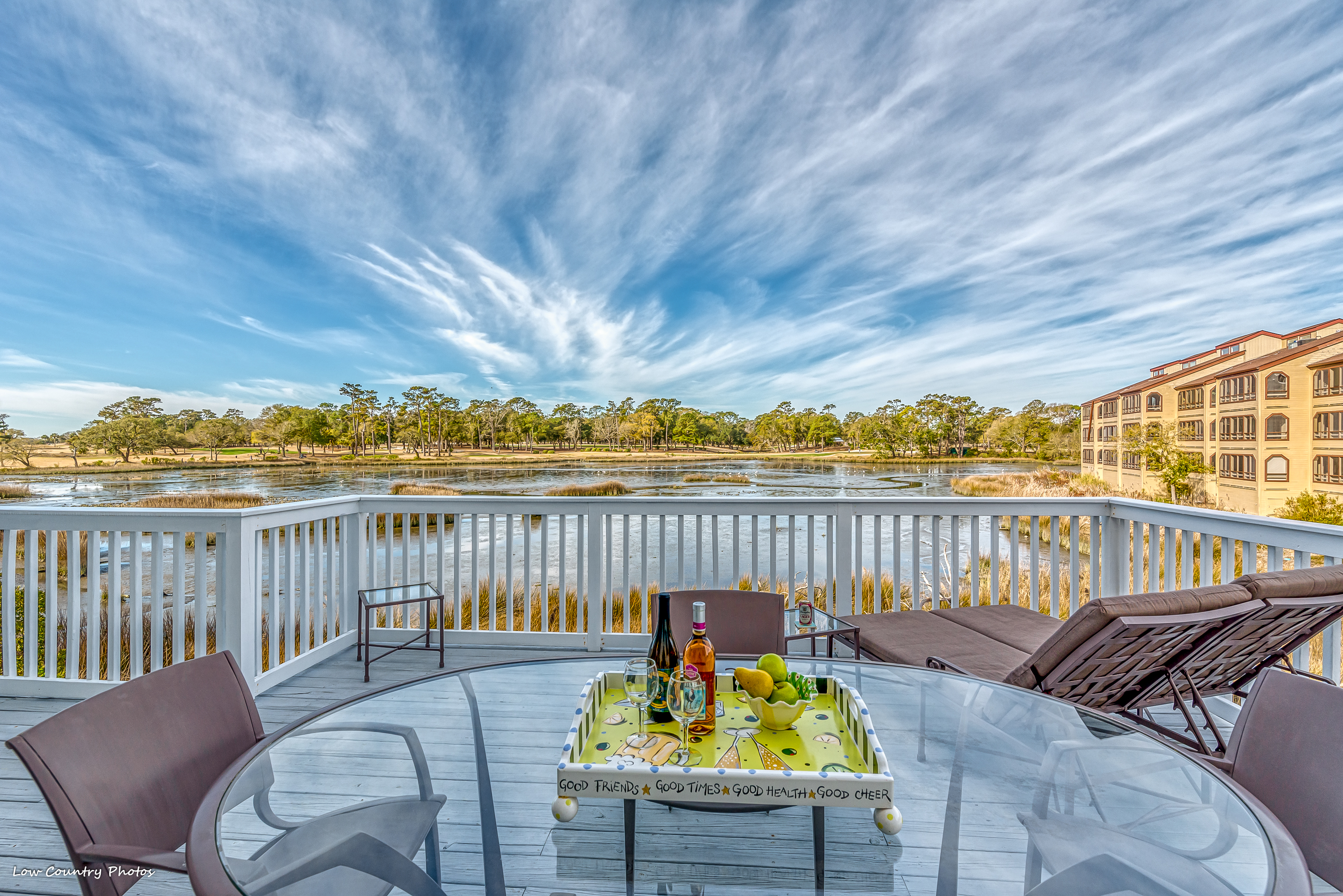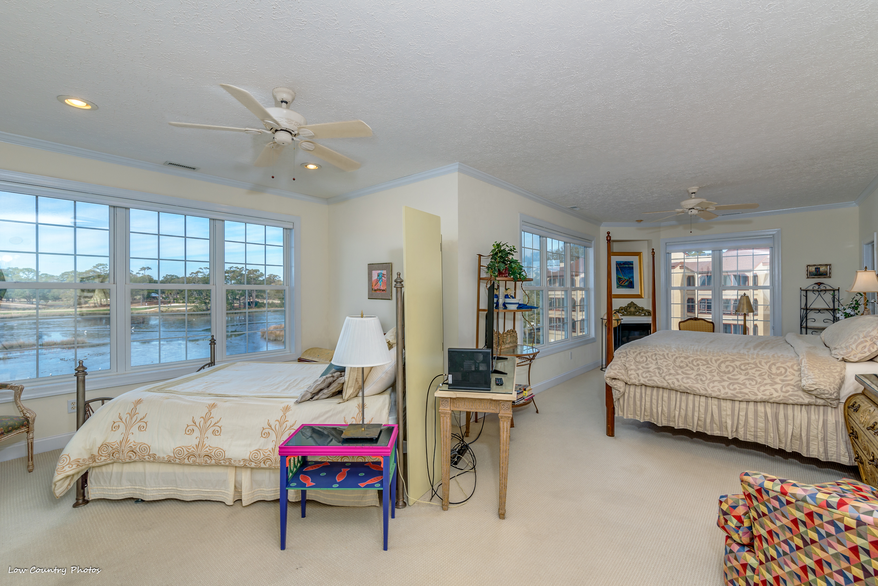 On the top level of the home, a master retreat encompasses the backside of the house. This oversized suite has a large sleeping area and a sitting area that have panoramic views rarely seen. With two walk-in closets and a master bathroom, this is genuinely an Owners Retreat. A private access screen porch is a romantic setting to watch the sunset. Additionally, on this level are two spacious guest bedrooms both with ensuite bathrooms.