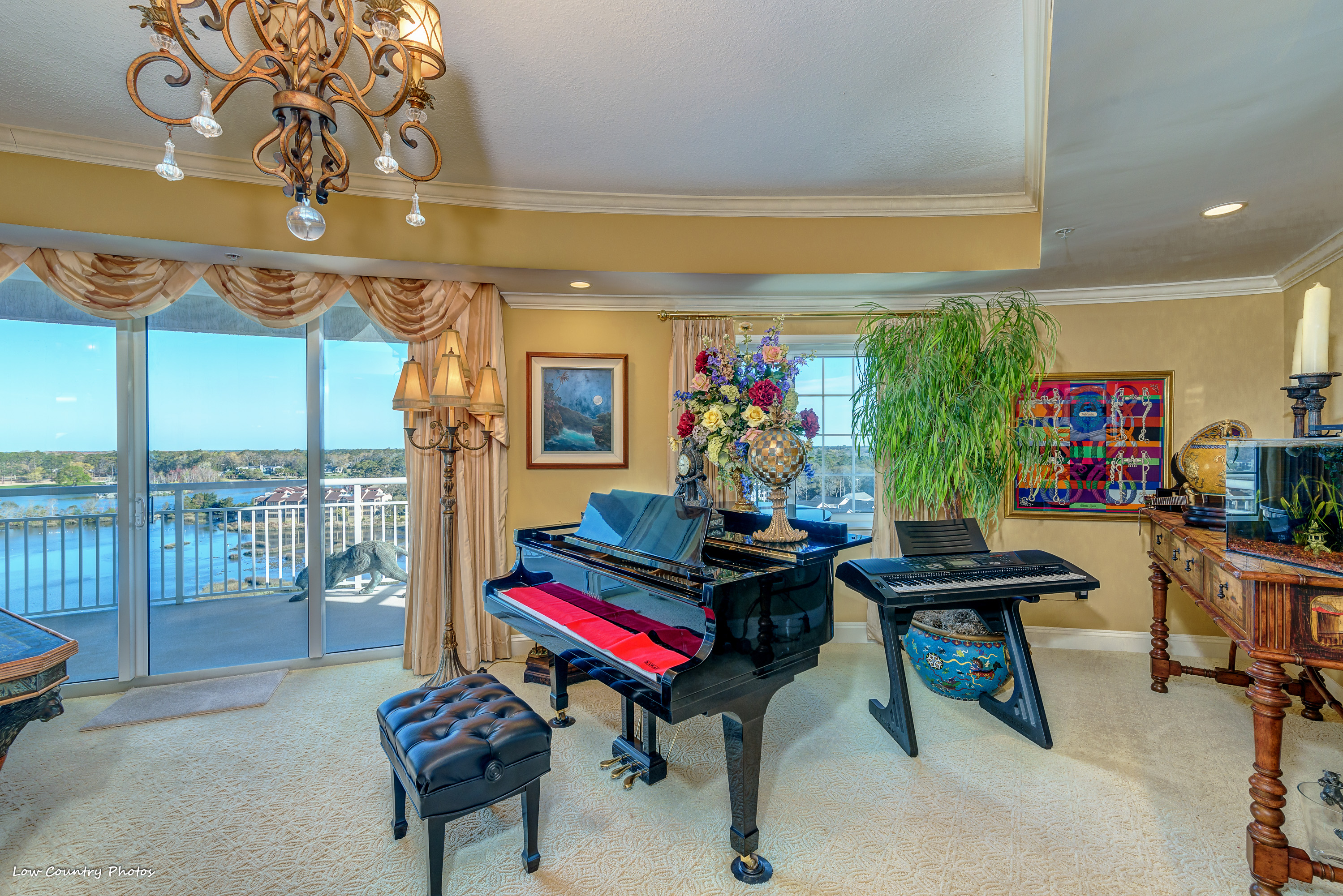 The serene sunrise and sunset views from your home will never get old. Unit 806, with its wrap-around balcony, provides you with unparalleled views of the marsh, golf course, and northern ocean views. With a host of upmarket appointments, this condo has all the requirements of the most discriminating homeowner. The Secure Front Entry Gate and Key-coded lobby entrance not only provides safety but adds a state of elegance comparable to a 5-Star Luxury Resort.