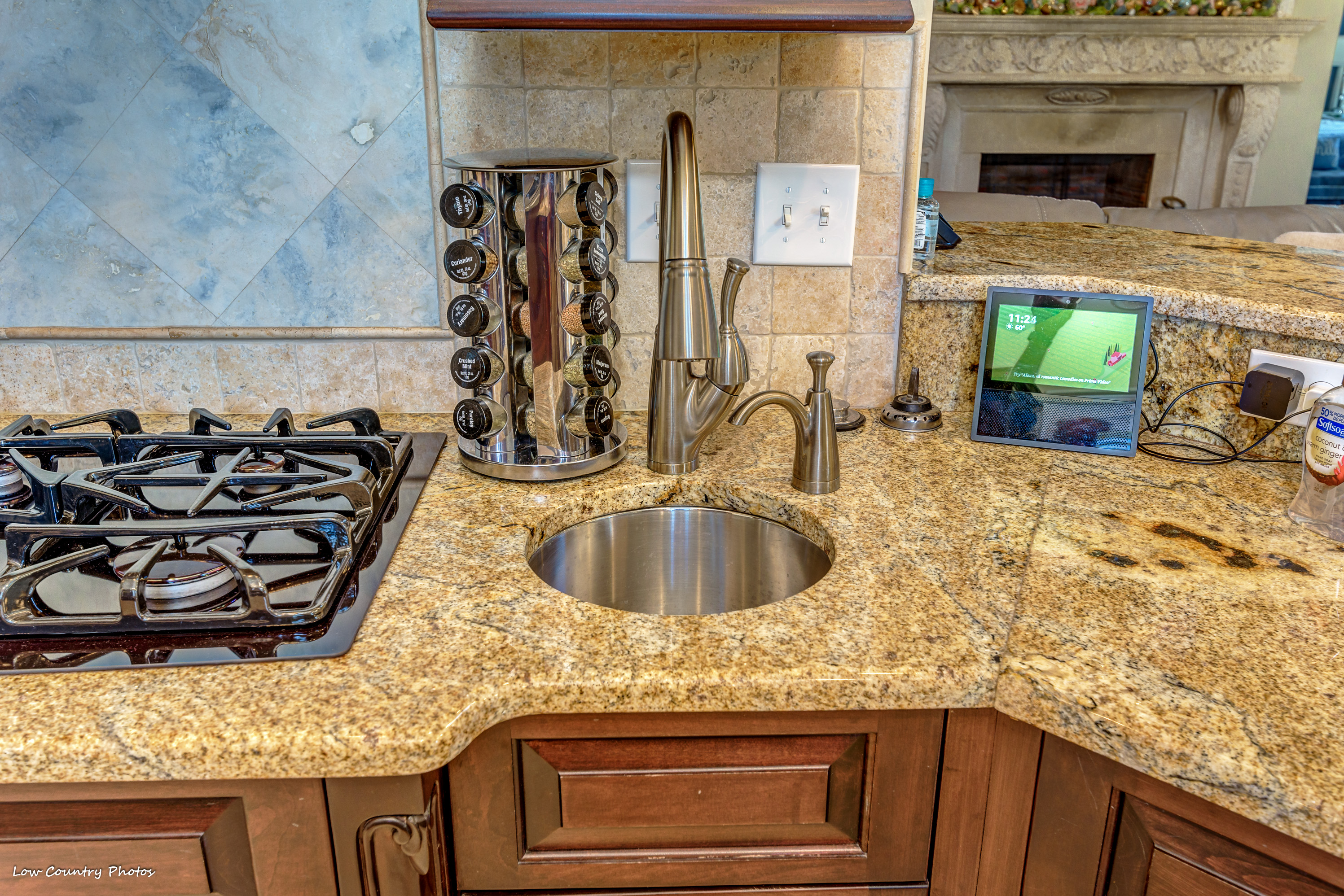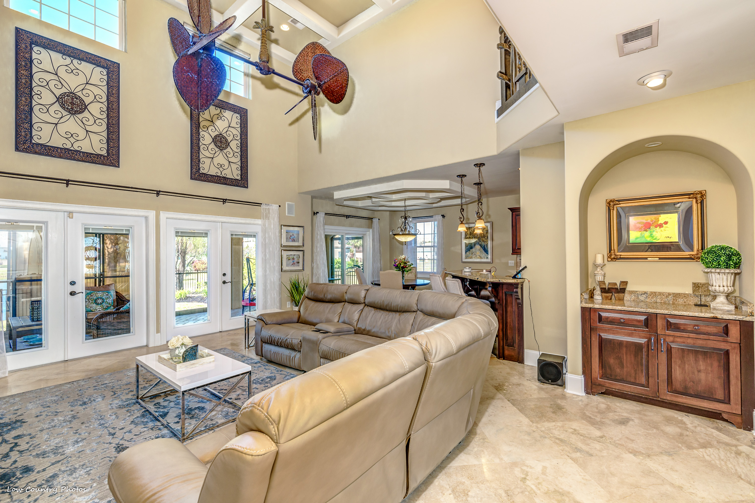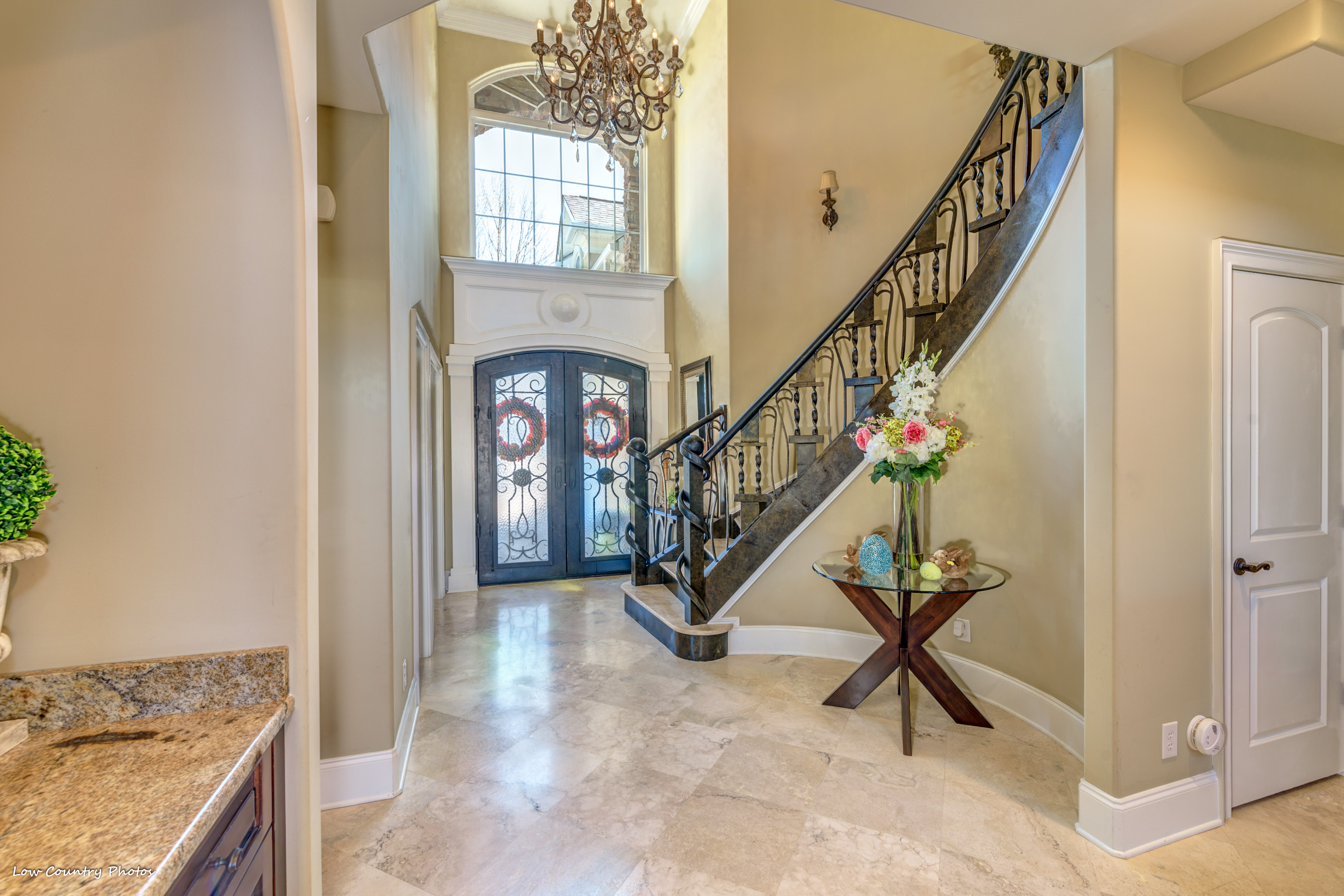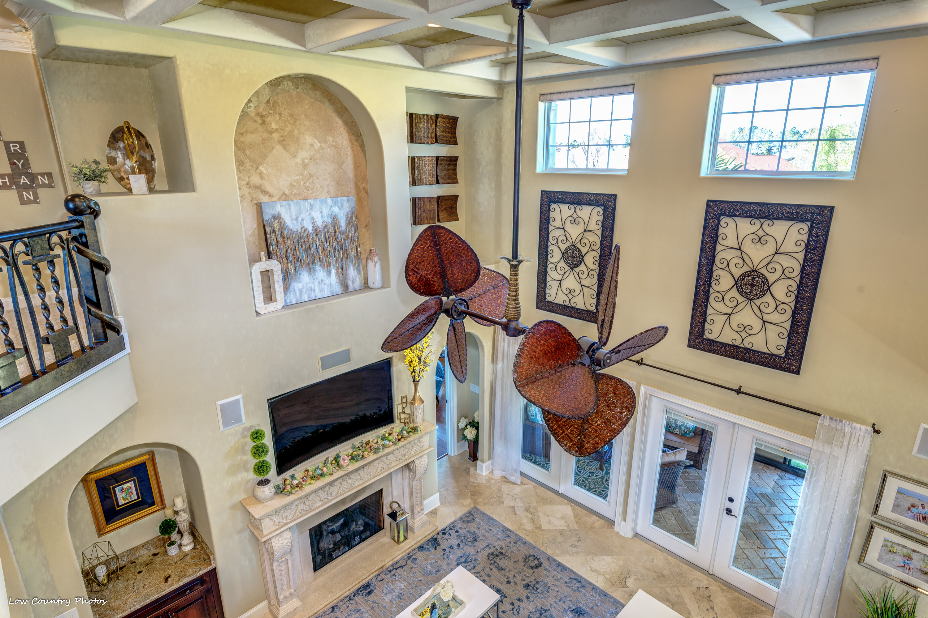 969 Bluffview Drive is a sprawling custom-built Mediterranean Masterpiece. Located in the sought after gated community of The Bluffs on the Waterway, this home has many upmarket features. Just through the cast iron front doors is a one of a kind handcrafted metal staircase handrail. Designed and built by the renowned metal artist Robert Sandlemire, this feature is a site to be seen. In addition to the handrail, accenting the two-story great room is a cast stone fireplace and decorative art niches.
