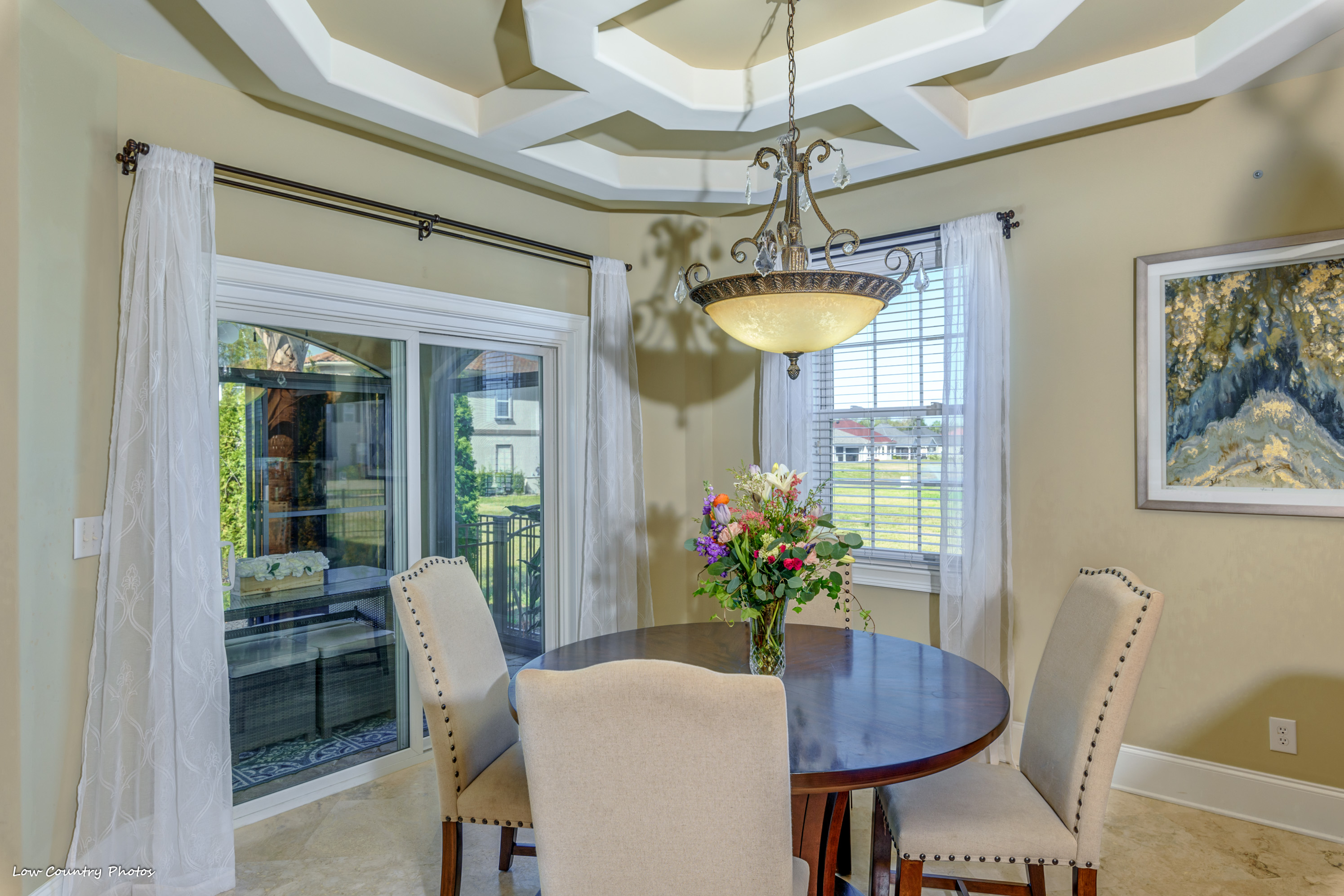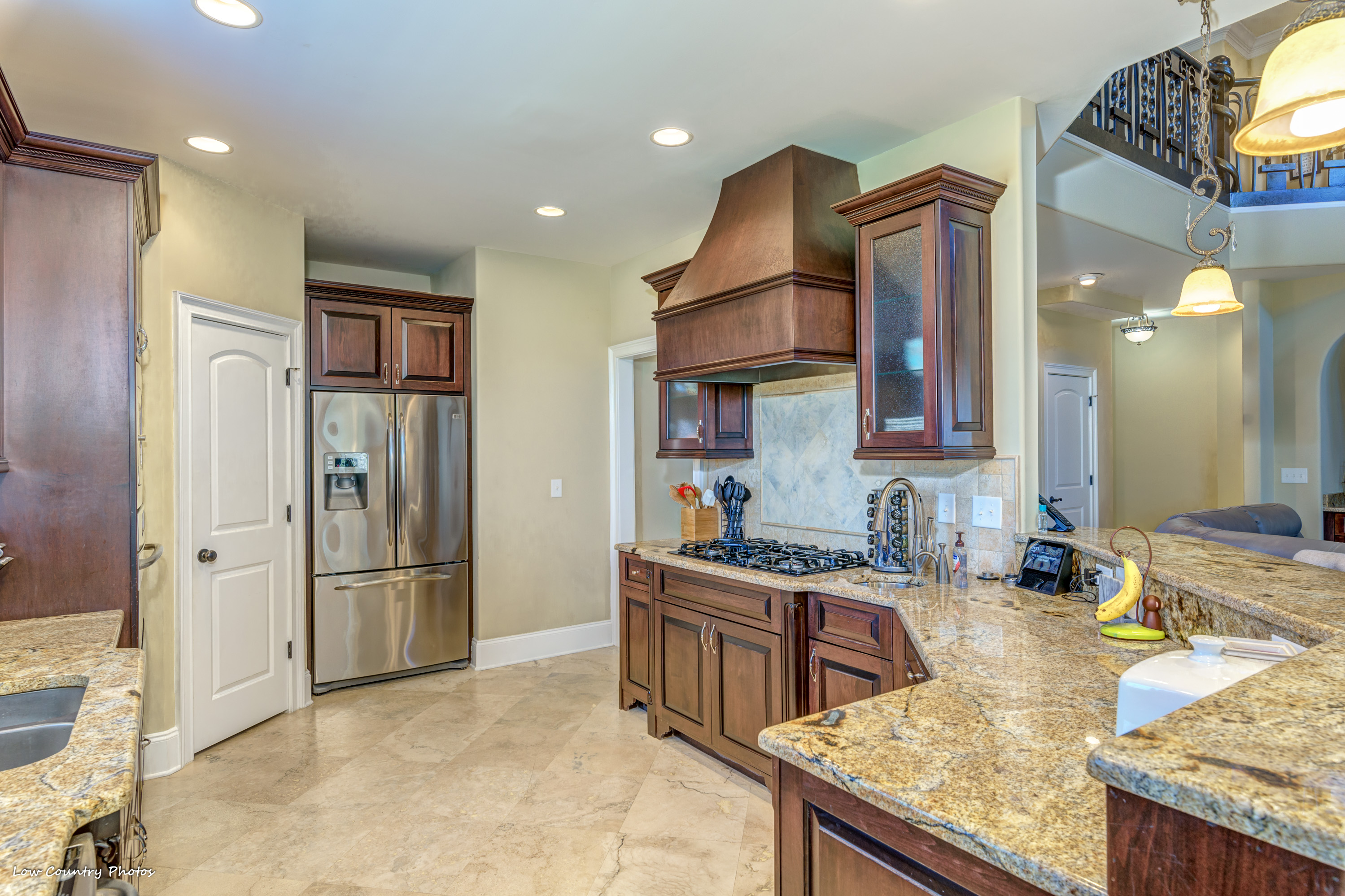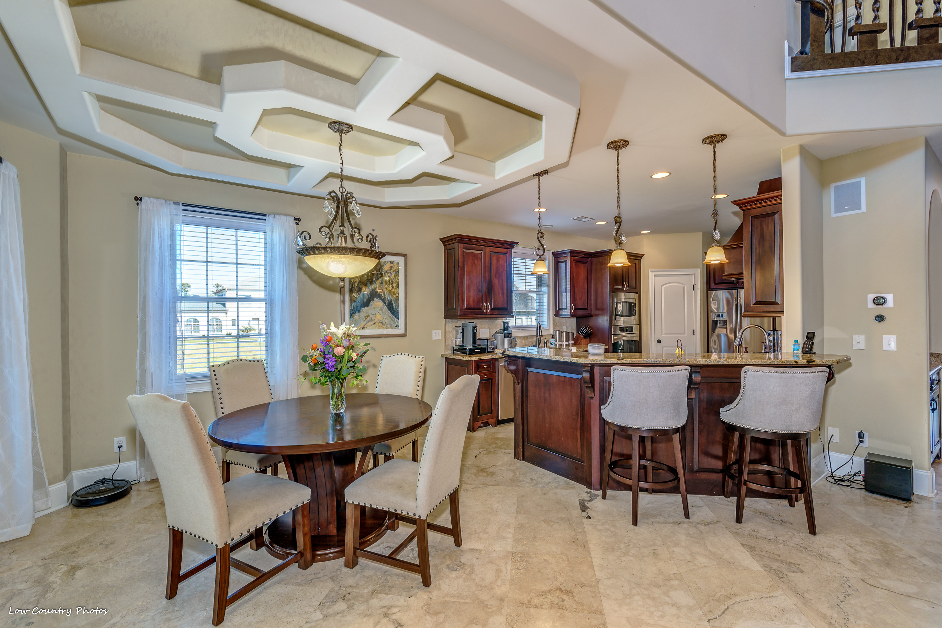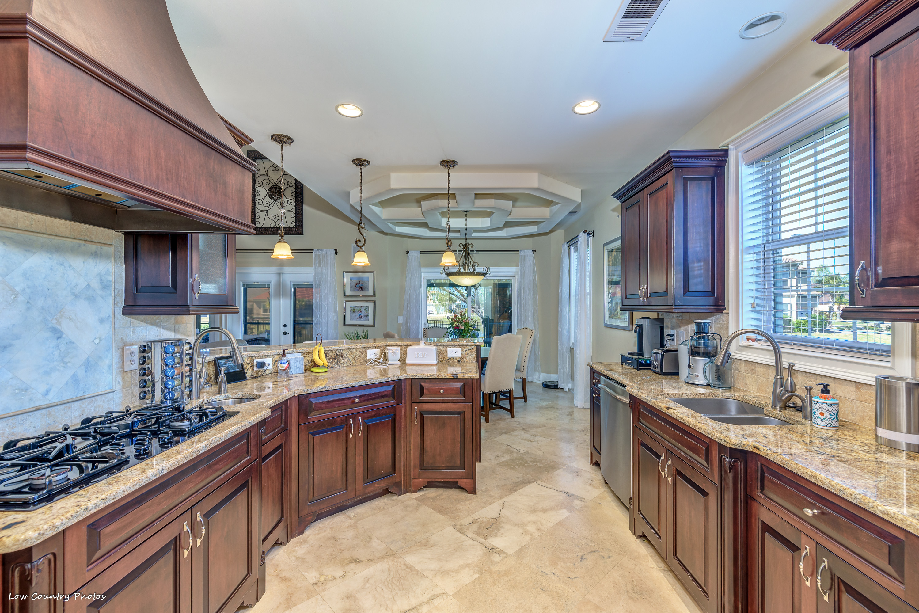 A very spacious kitchen with custom cabinetry, breakfast bar, high-end appliances, and a large pantry are perfect for the chef of the family. The breakfast nook has a coffered ceiling and a fantastic view of the lake. A three-season covered lanai has tumbled paver tile floors, sitting area and wired for a mounted TV. Tucked under the stairs is the most recent addition, the custom made wine cellar.