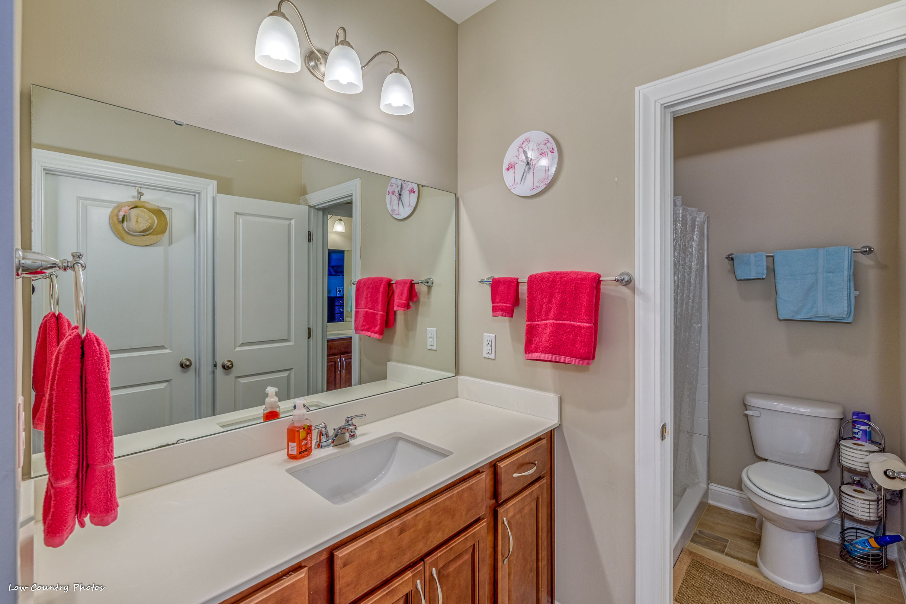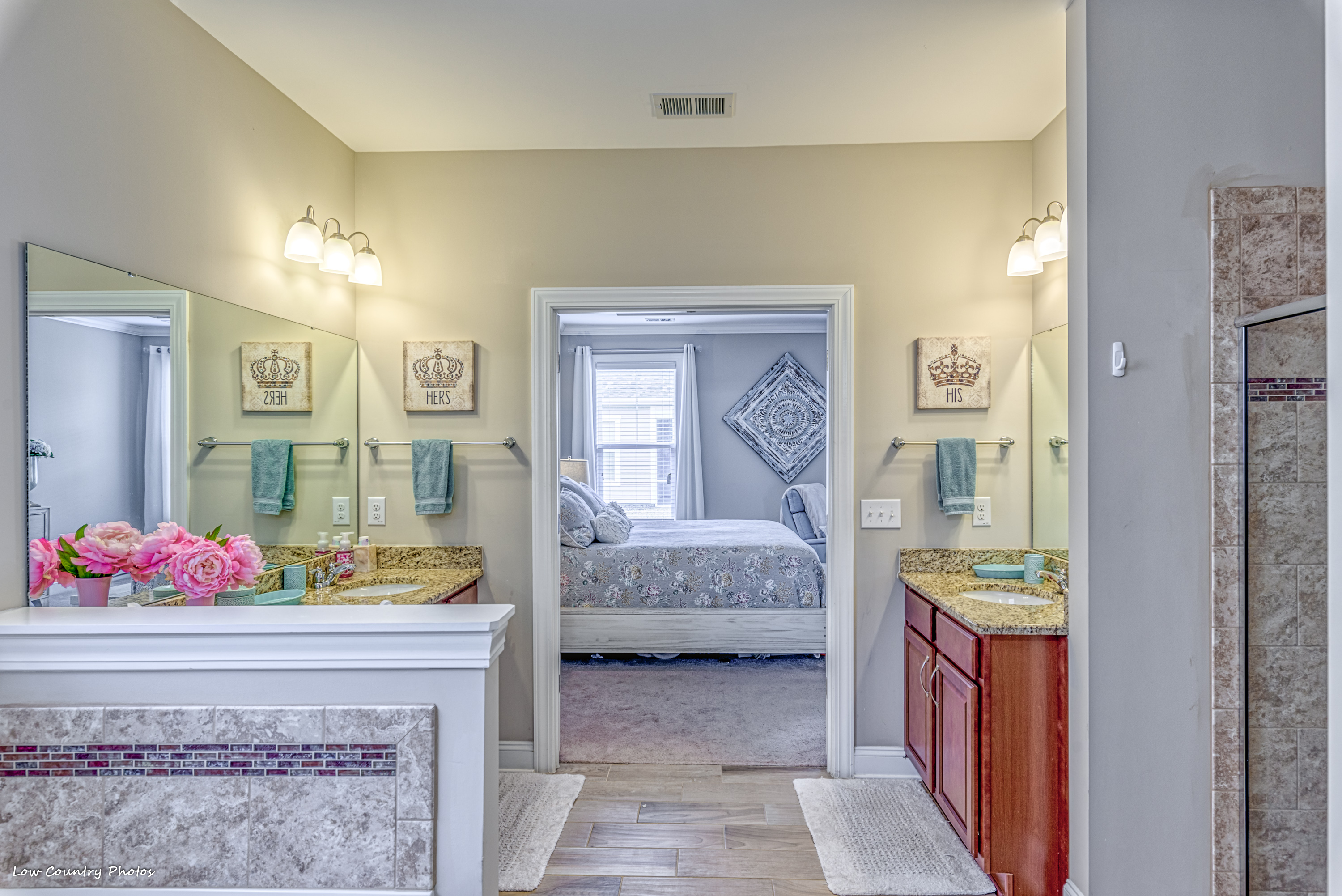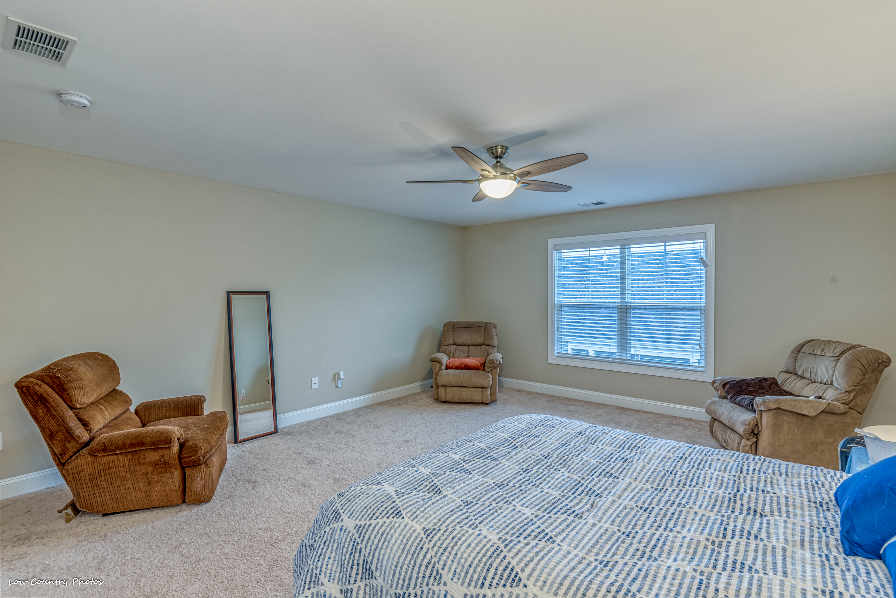 Greeted by wide hallways, high ceilings, and windows at every turn this open floor plan has many desirable upmarket features. The kitchen has a massive work island, walk-in pantry, natural gas range, tile backsplash, and a breakfast bar. A centrally located family room is perfect for entertaining or a quiet evening watching a movie. Flanking the family room is an oversized first-floor master suite with tray ceilings, walk-in closet, double sink, vanity, garden tub, and walk-in shower. A huge screen porch on the back side of the home will provide countless hours of relaxation. Rounding out the main level are two spacious guest bedrooms that share a "Jack & Jill" bathroom. Upstairs you will find two large bedrooms. The bedroom on the front side of the has dormer that is perfect for a desk or separate sitting area. The bedroom on the back side of the home can function as a fifth bedroom, media room, game room, or play area. Both bedrooms have walk-in closets and share a hall bathroom.
