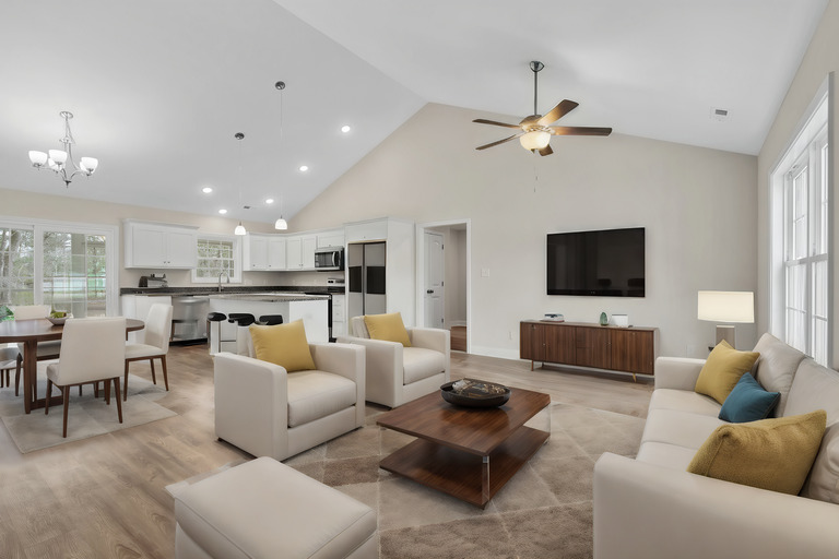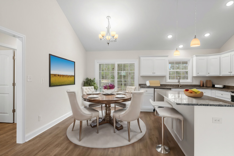 Step inside to discover a meticulously designed 3-bedroom, 2-bathroom home that boasts an open and airy great room, perfect for entertaining and family gatherings. The spacious kitchen, complete with granite countertops and bar seating, opens to a dining area, creating an inviting space for meals and conversations. The main level also features a screened porch, providing a serene spot to enjoy the natural surroundings.