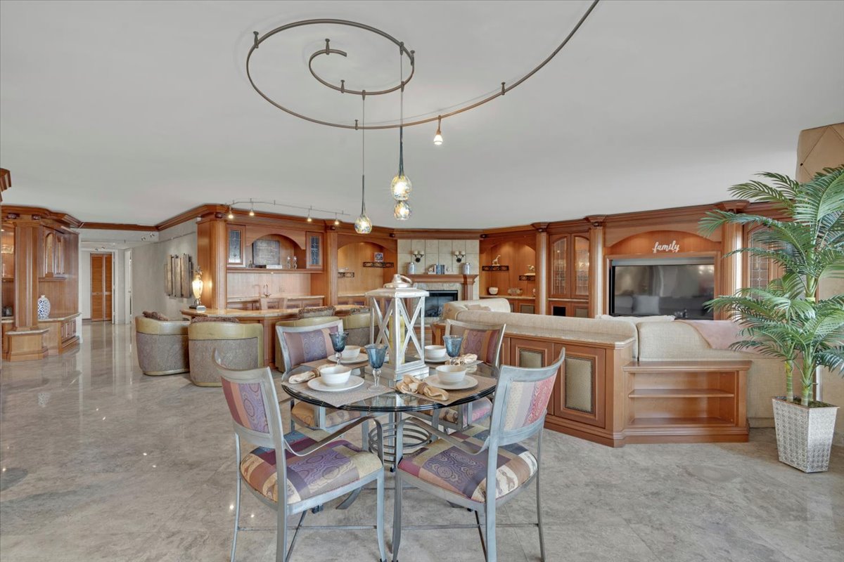 From the moment you step inside, you're greeted with a world of refined comfort. Large open floor plans are adorned with travertine flooring, setting a tone of understated elegance. The property, offered fully furnished, promises an effortless transition to coastal living. Extensive custom woodwork and built-ins throughout the condo highlight the unparalleled craftsmanship that defines every inch of the space. The spacious open kitchen and dining area, complete with built-in bench seating, offer the perfect backdrop for entertaining guests against the view of breathtaking ocean views.