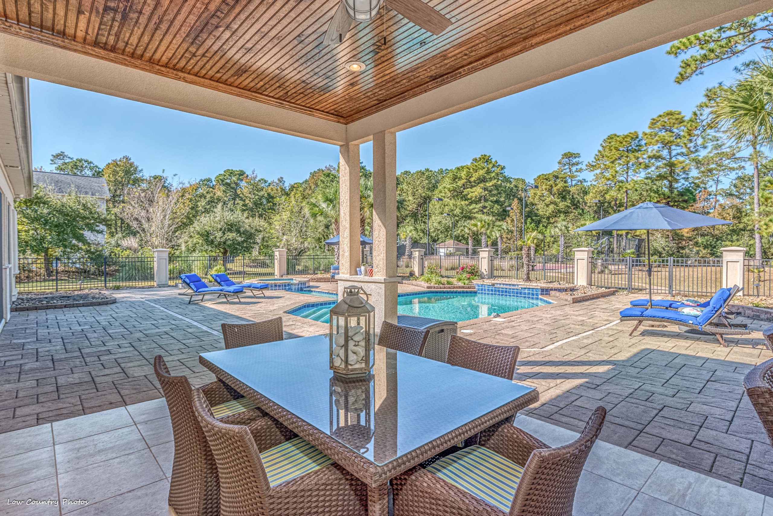 The angled three-bay garage is attached to the home with a breezeway. Above the garage are separate living quarters perfect for a home office, live-in Aupair, or an adult child living at home. Once you step outside, you feel like you are in a private resort. The pool, lush landscaping, and sports court will make your everyday feel like a vacation day. This luxury home has it all and is only a short 3.7-mile drive to the vast sandy white beaches that have made Myrtle Beach World Famous. The life you deserve is waiting for you at 115 Redwolf Trail.