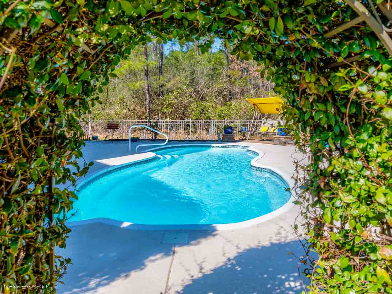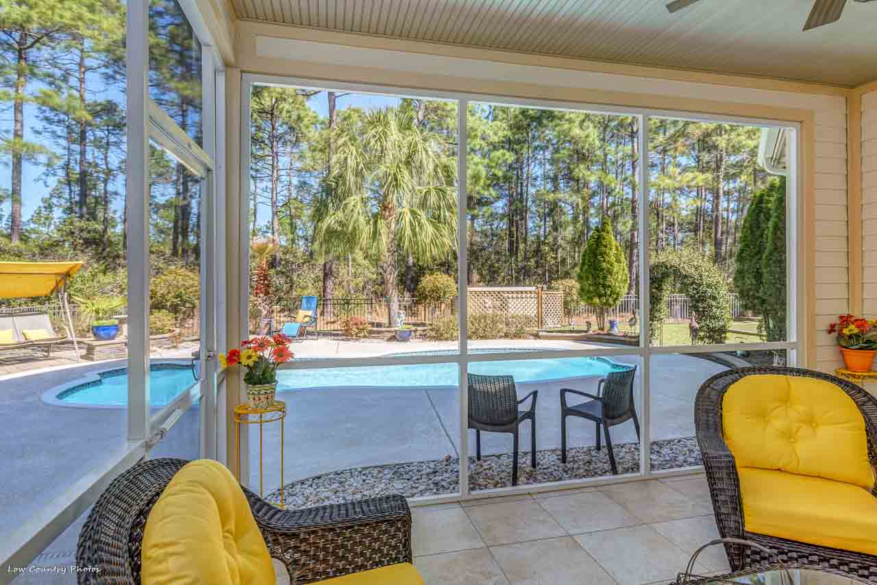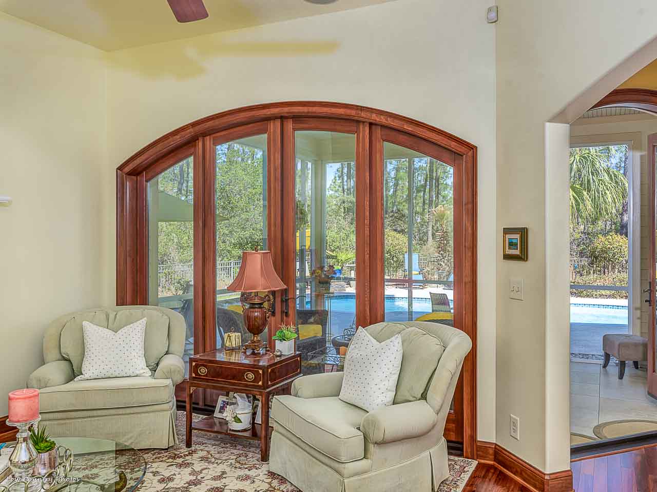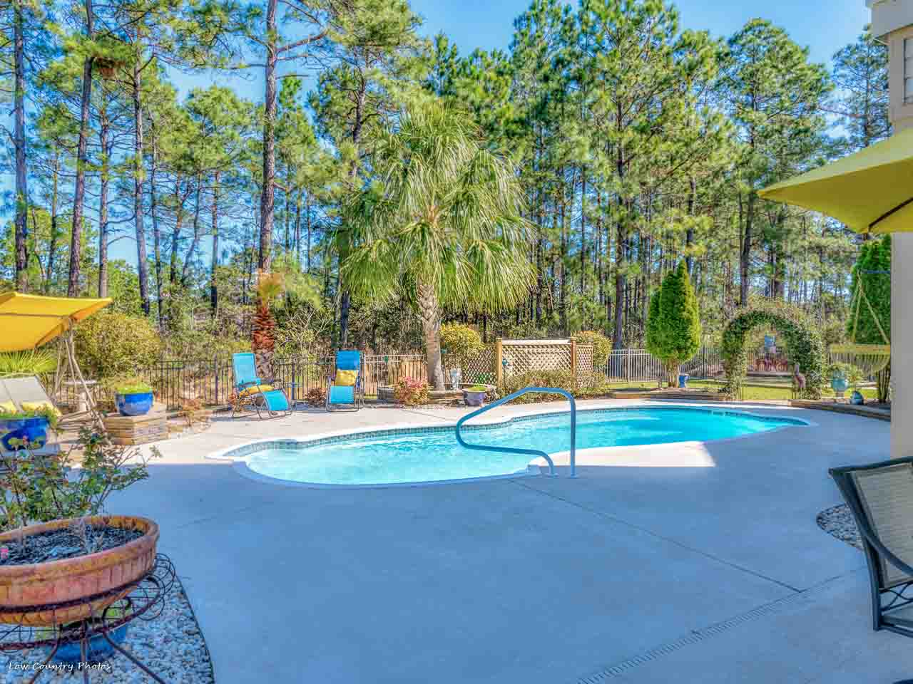 Tucked quietly among Legends Resort's 1300 serene acres your new home affords you sought-after privacy on a half-acre cul-de-sac lot. The backyard is a tropical paradise featuring a pool and putting green that will provide countless hours of enjoyment. Before you enter the custom milled front door, you realize this is not your average home. Once inside the foyer is flanked by an elegant statement-making dining room. The sightlines draw your attention to the tropical backyard while the archways and contour of the rooms pull you into a spacious living room.