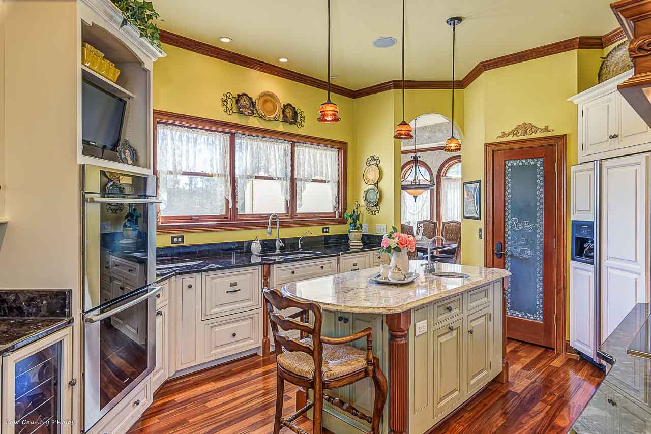 A gourmet kitchen has been designed to make the task of cooking pleasurable. The center island functions not only as a prep station but once the food is ready, it doubles as a serving area. The Miele double convection wall ovens allow you to prepare a large holiday meal or multiple items at one time. Cleaning up has also been simplified by the dual compartmental dishwashers on both sides of the kitchen sink. A large pantry, wine refrigerator, and breakfast nook round out this excellent kitchen.