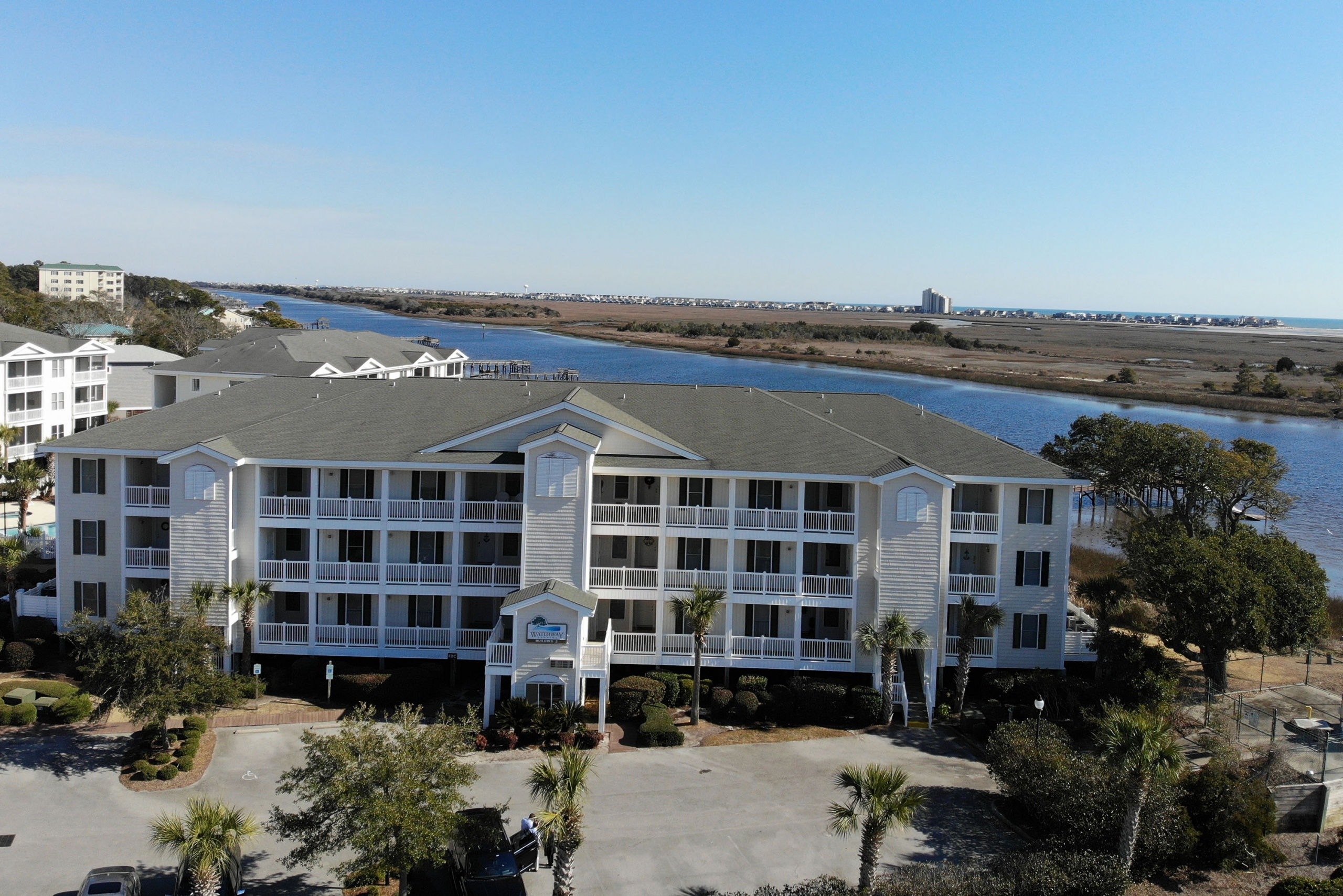 Live life like you vacation at Waterway Landing in Sunset Beach, NC. Unit 2105 is a mint move-in-ready condition condo with a panoramic Intracoastal Waterway view! Enjoy distant ocean views and cool ocean breezes while sitting on the screened porch. With three bedrooms, two bathrooms, and ample living space, this condo is the perfect primary residence or home-away-from-home. The lifestyle you deserve is waiting on you at Waterway Landing. Ideally located in Sunset Beach Waterway Landing offers homeowners access to a private pool, hot tub, ICW pier, floating dock, and boat launch.