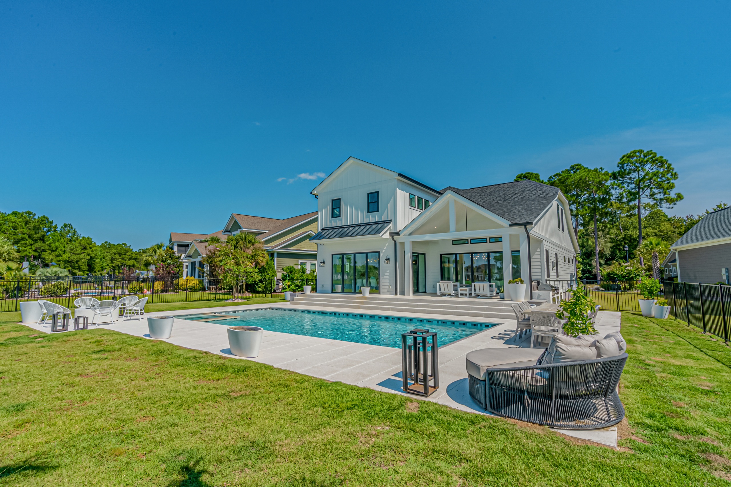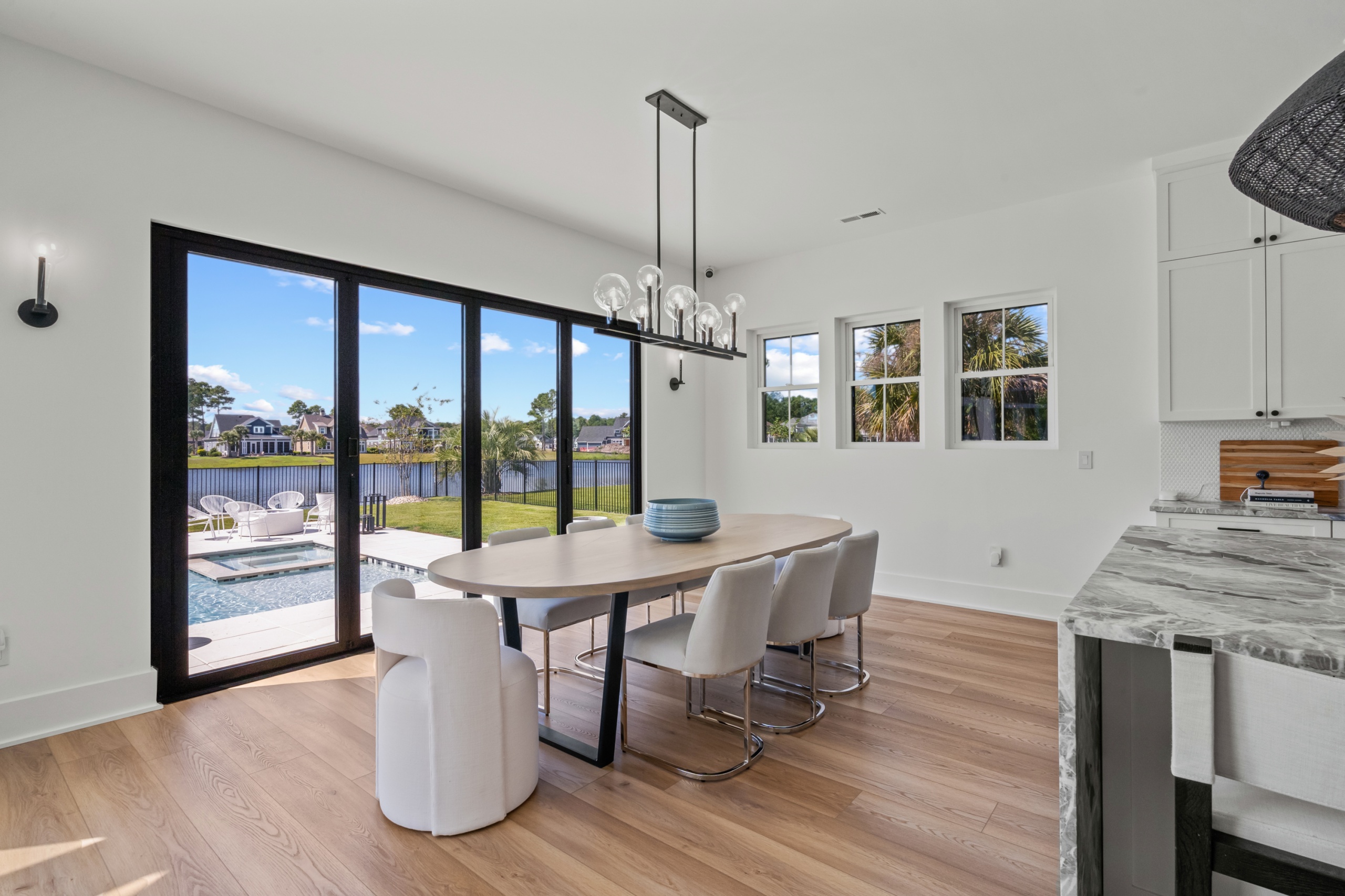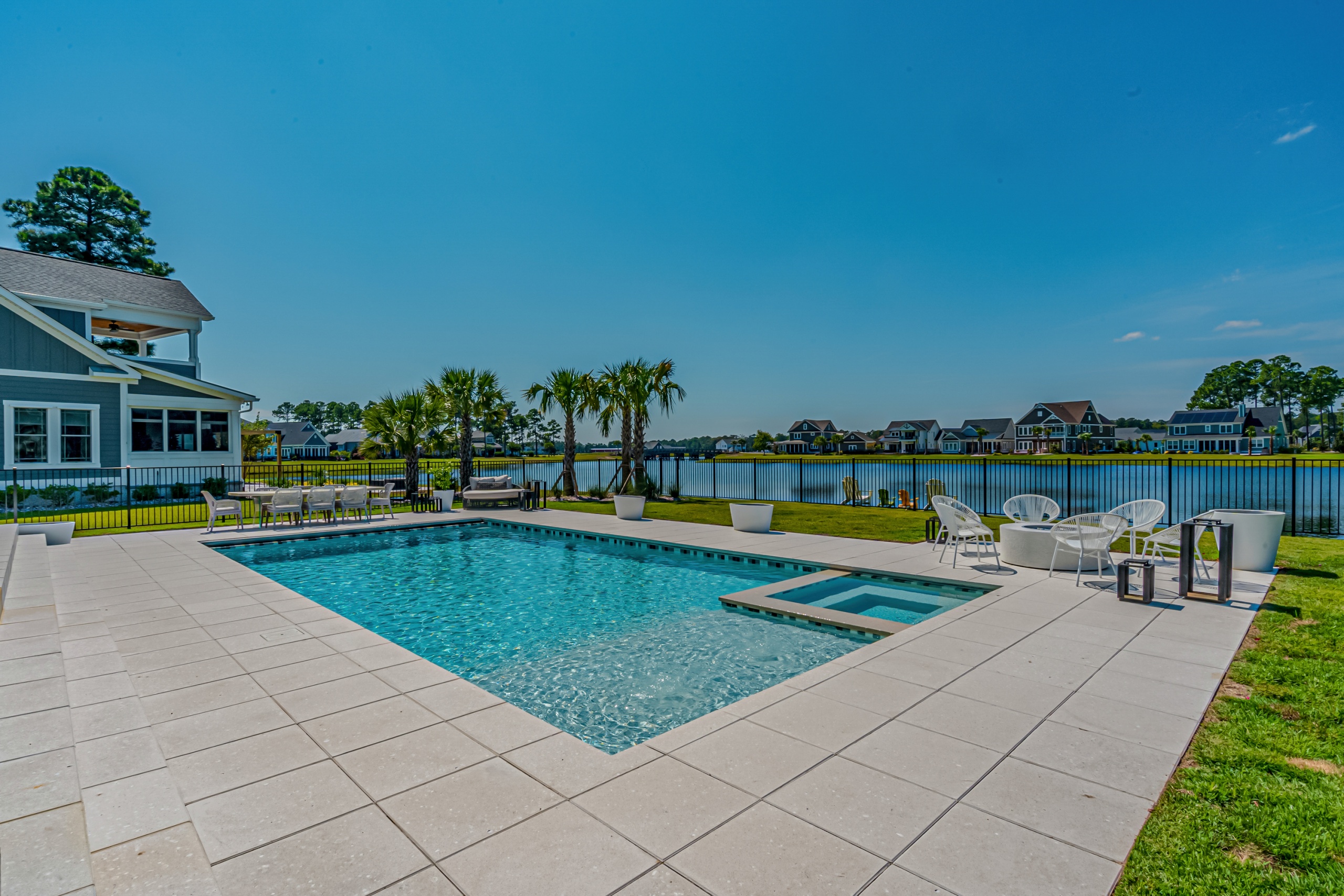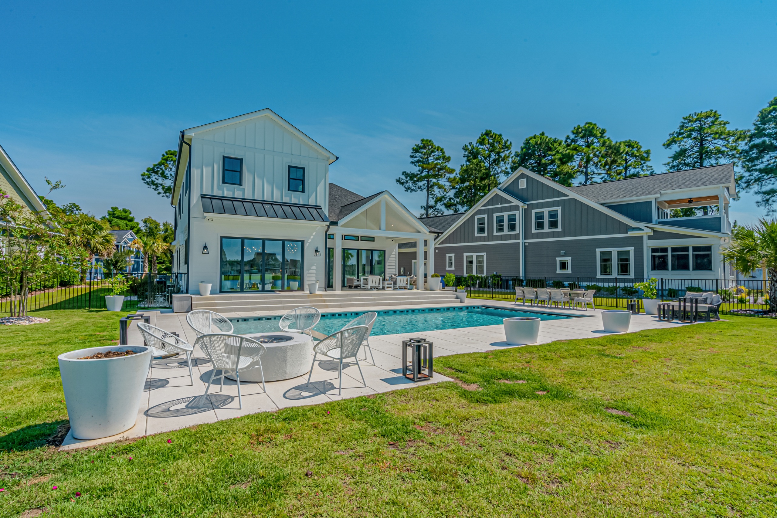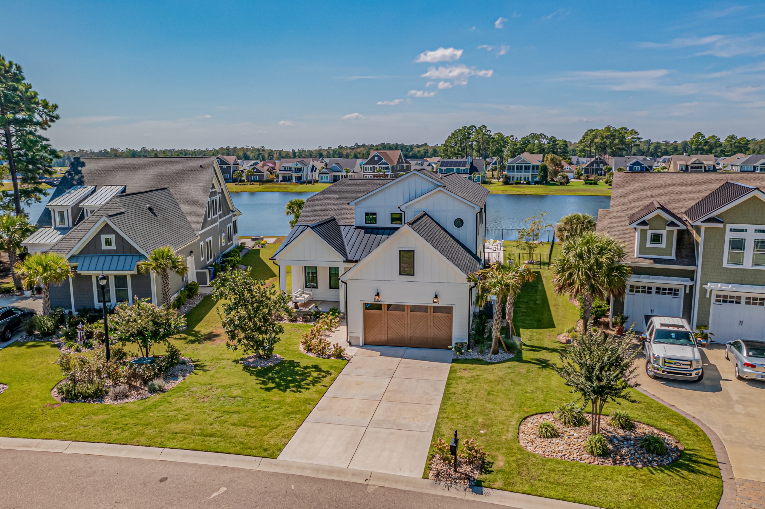 Welcome to an exquisite waterfront retreat in the heart of Carolina Forest, Myrtle Beach, South Carolina. This newly constructed 4-bedroom, 3-bathroom residence exemplifies the pinnacle of custom craftsmanship and luxurious living. Positioned on a tranquil waterfront property, this home seamlessly combines sophistication and serenity. Upon entry, a striking custom steel front door sets the stage for the elegance that awaits within. The expansive design features 11-foot ceilings on the main floor, creating a spacious and inviting ambiance. Throughout the home, discerning details abound, including 1X8 real wood shiplap, designer light fixtures, and Fanimation fans, elevating the overall sense of refinement.