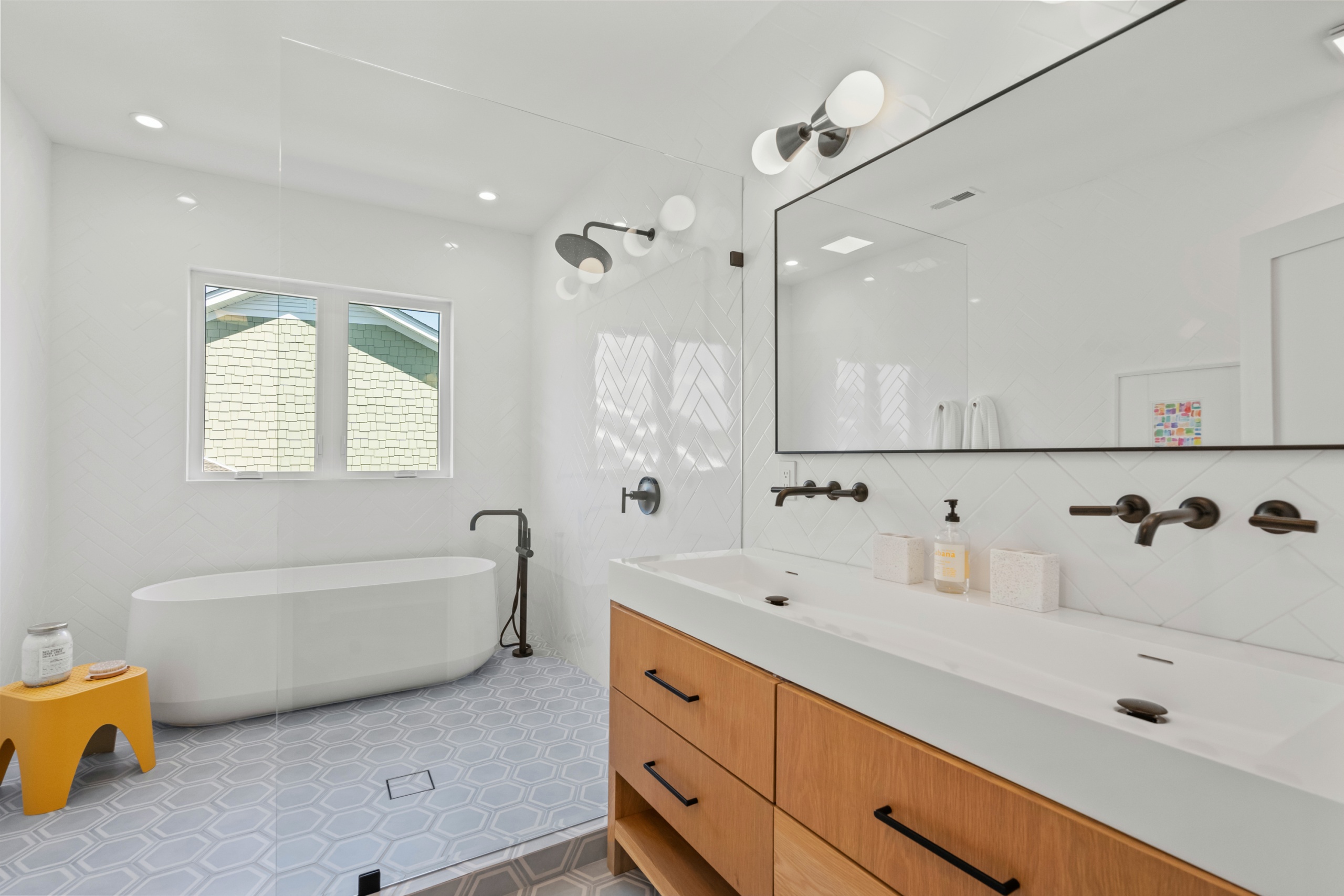 For the culinary enthusiast, the kitchen is a masterpiece in its own right, showcasing Italian quartzite countertops, top-of-the-line Wolf/Sub-Zero appliances, a 4-burner range with griddle and grill, double wall ovens, and a concealed pantry. Noteworthy is the custom KitchenAid stand mixer easy lift cabinet, a testament to the meticulous attention to detail. The living area seamlessly connects to the outdoors through Nanawalls, which allow the entire rear of the house to open up to breathtaking water views. Step onto the expansive covered porch, complete with a ceiling fan, and immerse yourself in the tranquility of the surroundings.