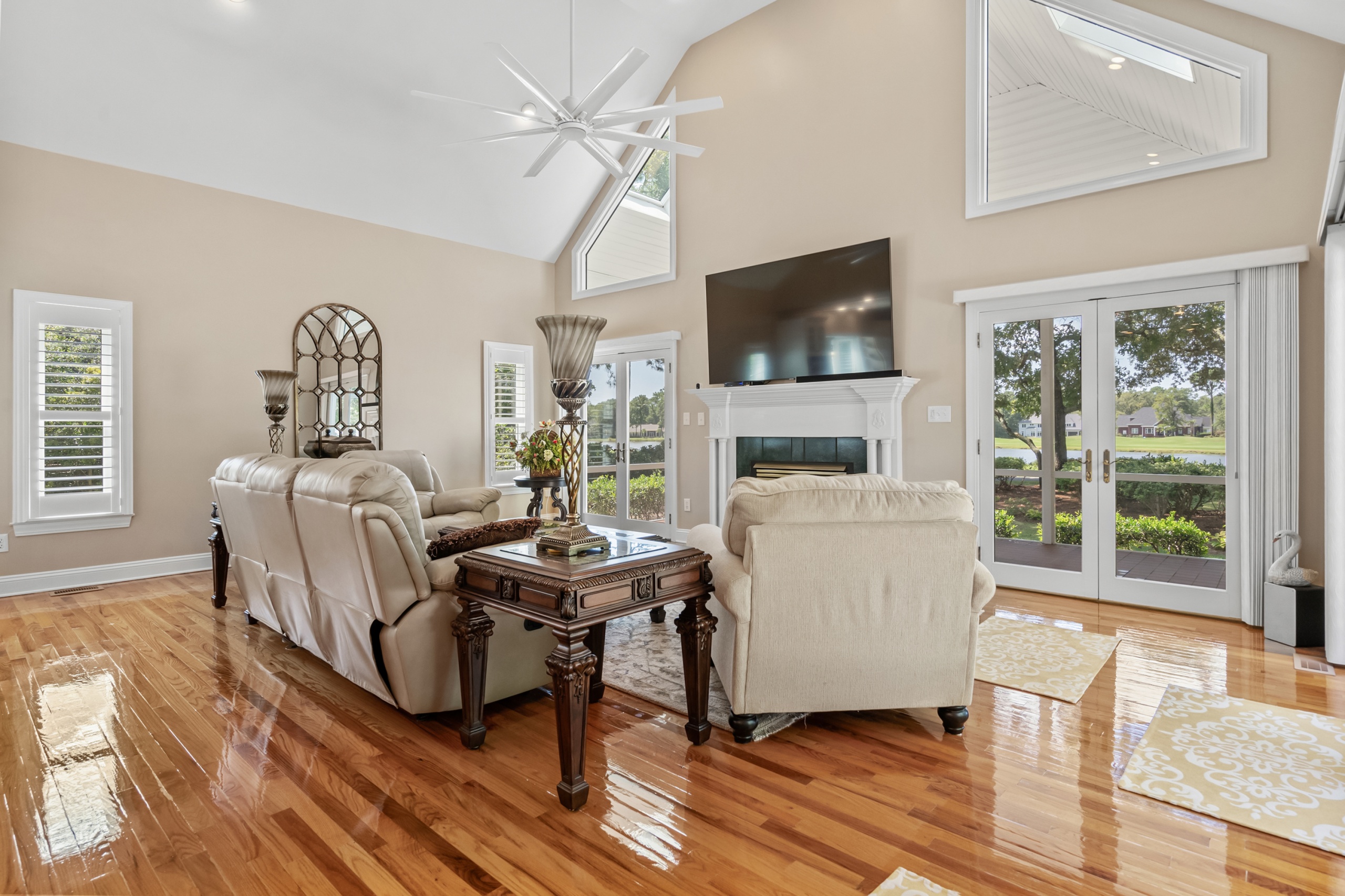 • Flooring and Outdoor Enhancements: New hardwood floors, walkways around the house, gutters, landscaping lights, outdoor lights in the soffit, and freshly stained porches and decks contribute to the home’s curb appeal.