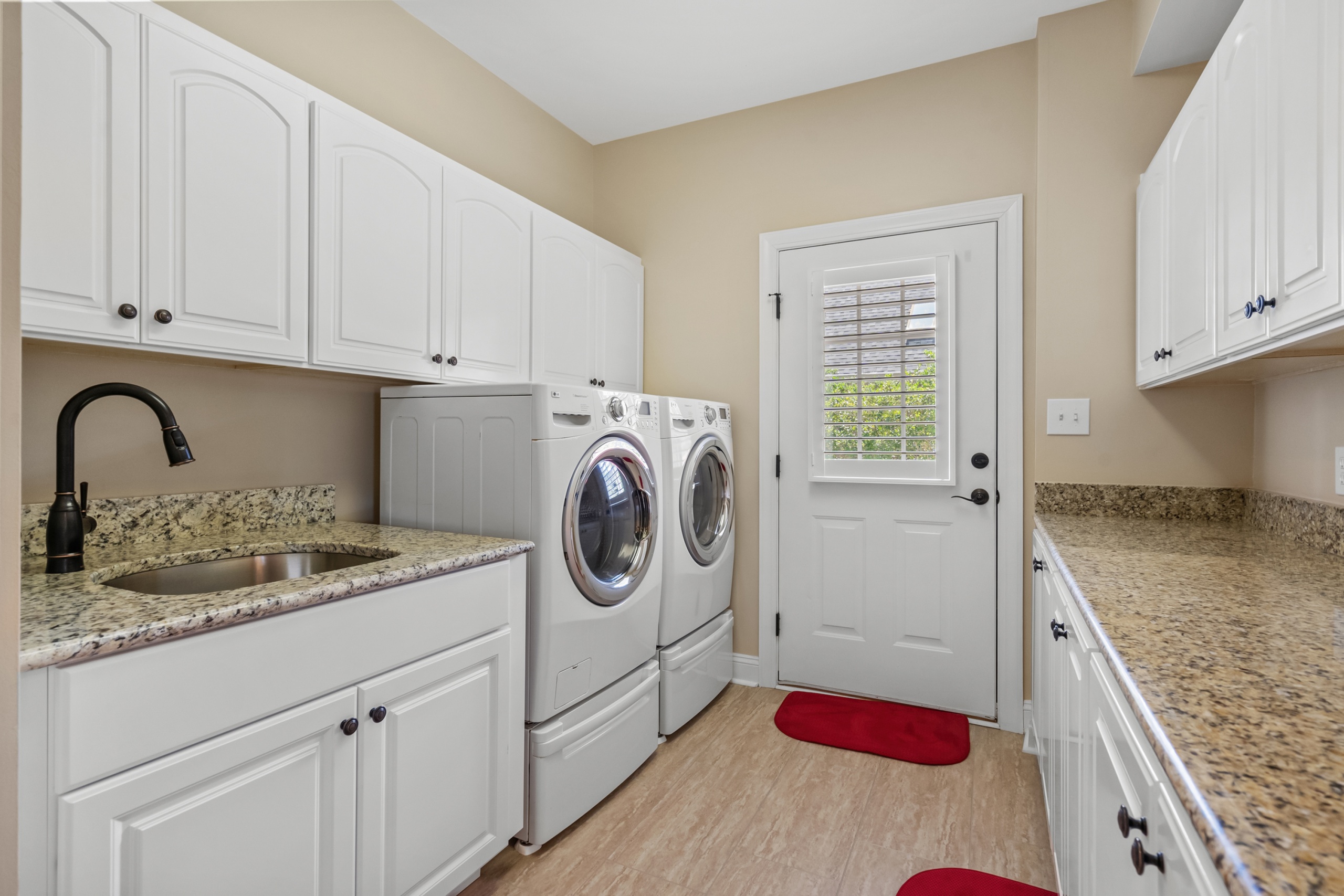 • Interior Elegance: New windows, plantation shutters, hardware on doors and cabinetry, appliances, granite tops in the kitchen and laundry room, and fresh paint throughout the house, all combining to create an environment of luxury and comfort.