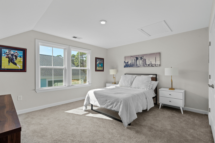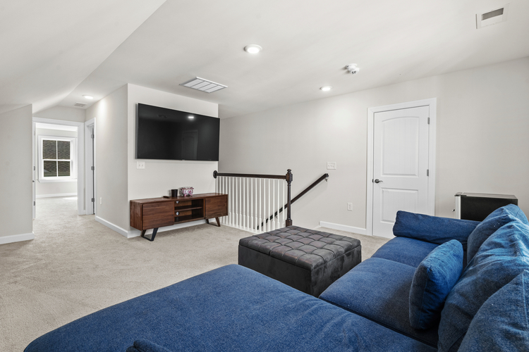 Two generously sized bedrooms share a full bathroom down the hall, offering privacy and comfort for family members or guests. Upstairs, a spacious loft provides additional living space, ideal for a media room or second lounge area. An additional bedroom and full bathroom complete the second level, making it the perfect retreat for visitors.