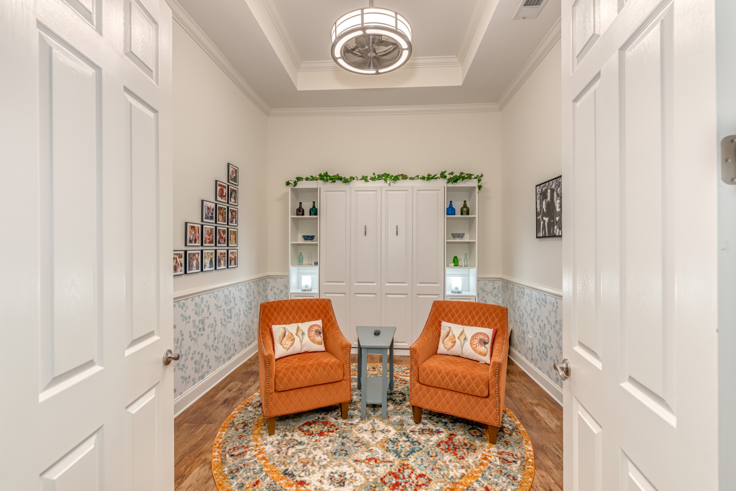 1612 Murrell Place is a mint move-in-ready single-level home. The open split bedroom floor plan has fantastic sightlines, vaulted ceilings, and windows everywhere. The La Quinta floor plan is among the most popular floor plans in Seasons. A spacious living room opens onto a massive 3 season screen porch. This outdoor living area is sure to become one of your favorite rooms in the home. An oversized kitchen is flanked by a dining area and a den/flex room. In the den is a Murphy Bed that disappears into the wall when it is not in use.
