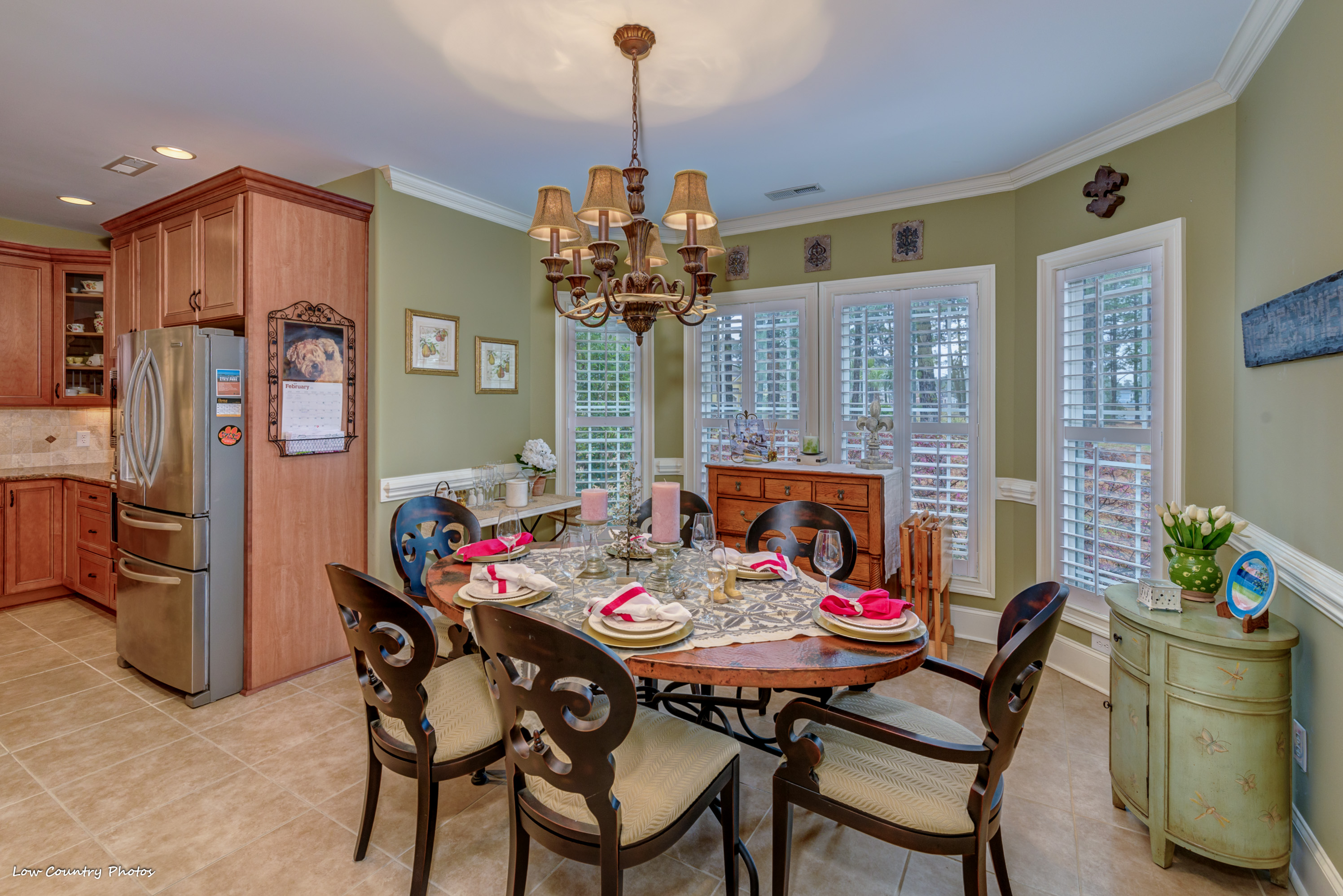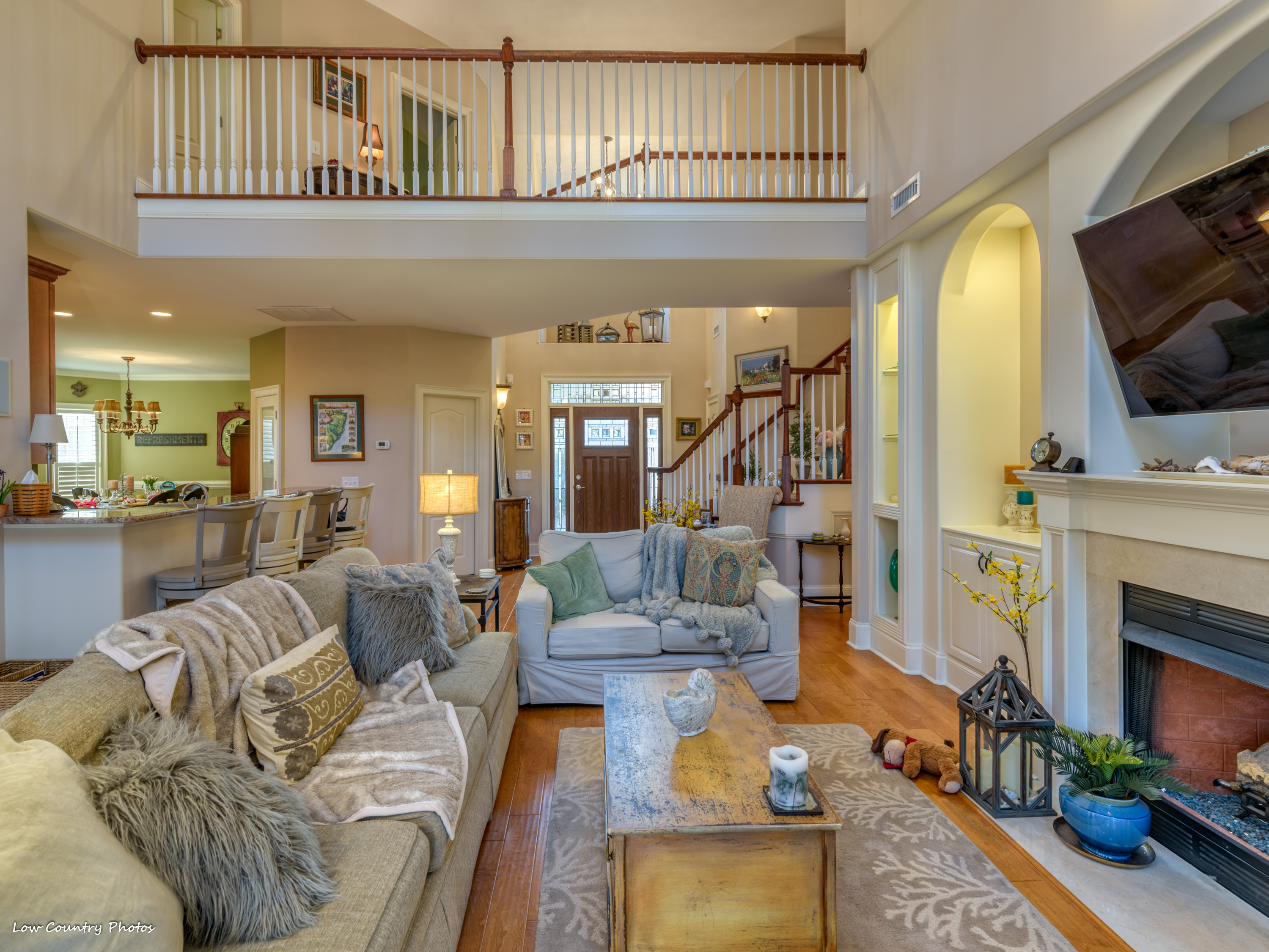 1804 Blue Indigo Lane is located at Waterbridge in Carolina Forest. Waterbridge is one of Myrtle Beach's hottest residential communities. Offering a host of upmarket features this magnificent home is in mint-move-in ready condition. A cozy "southern porch" welcomes you on arrival. Through the front door, you are pulled in by a towering two-story living room. This central living area accented by built-ins, arches, fireplace, a coffered ceiling, and has a wall of windows affording ample natural light.