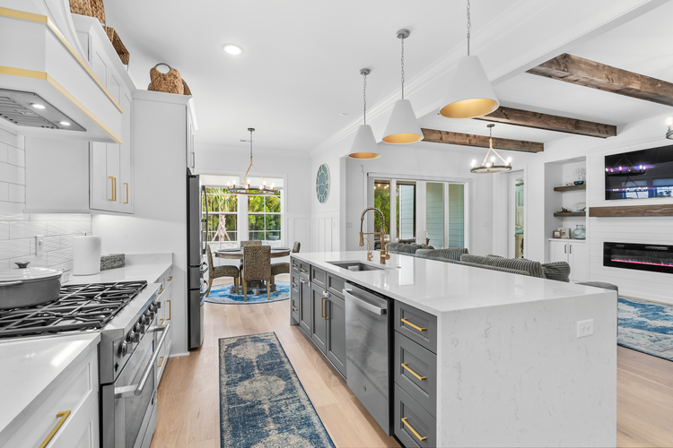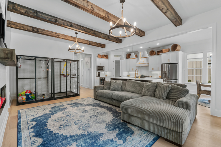 The second floor continues to impress with a large loft, a dedicated office or flex room, and four generously sized bedrooms. The home features exquisite craftsmanship, including beam ceilings, tray ceilings, shiplap walls, crown molding, and shadow boxing, all of which add to its charm and character.