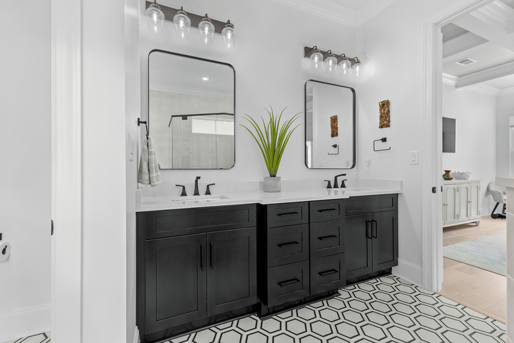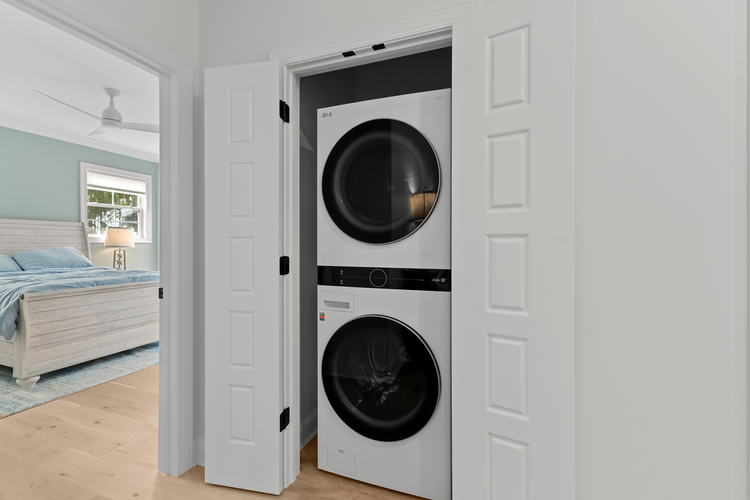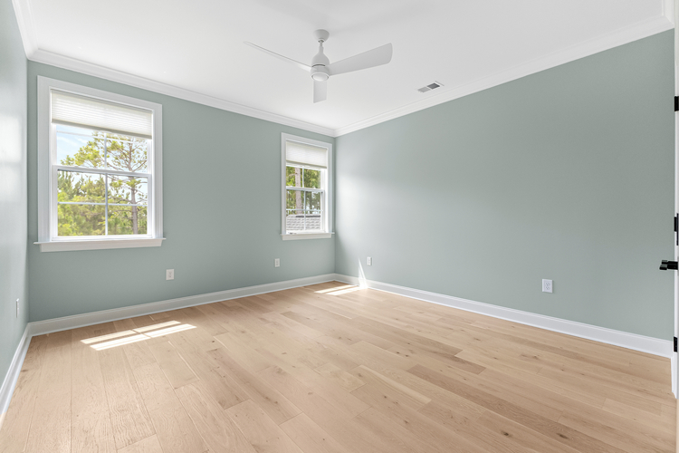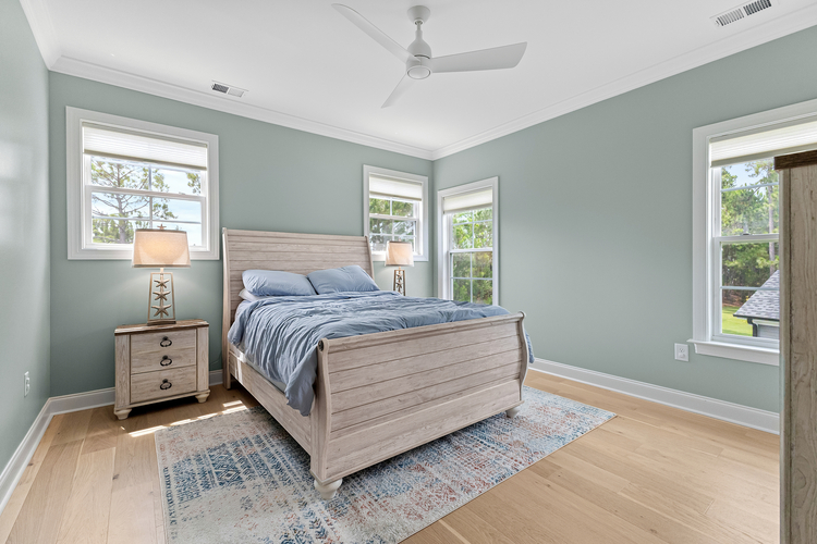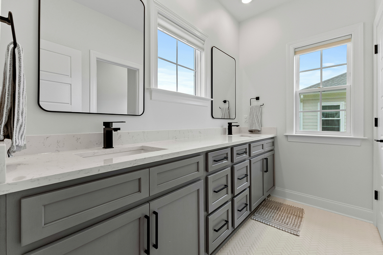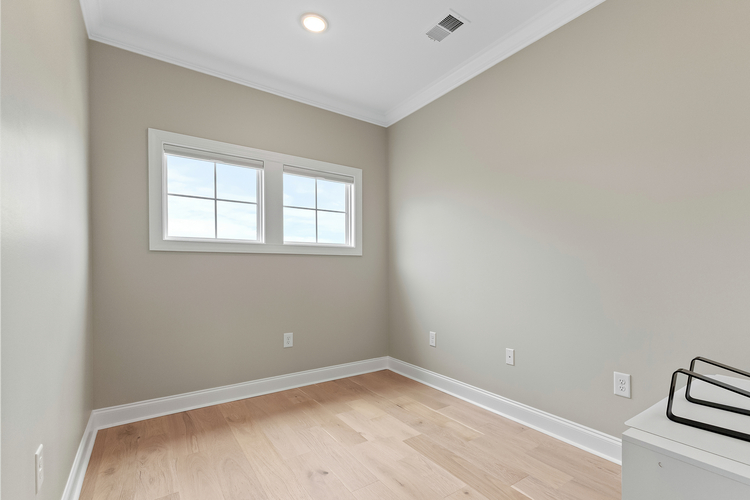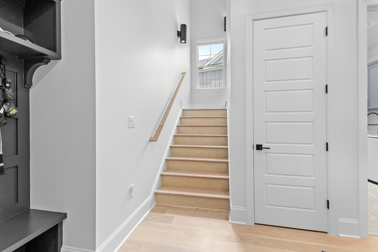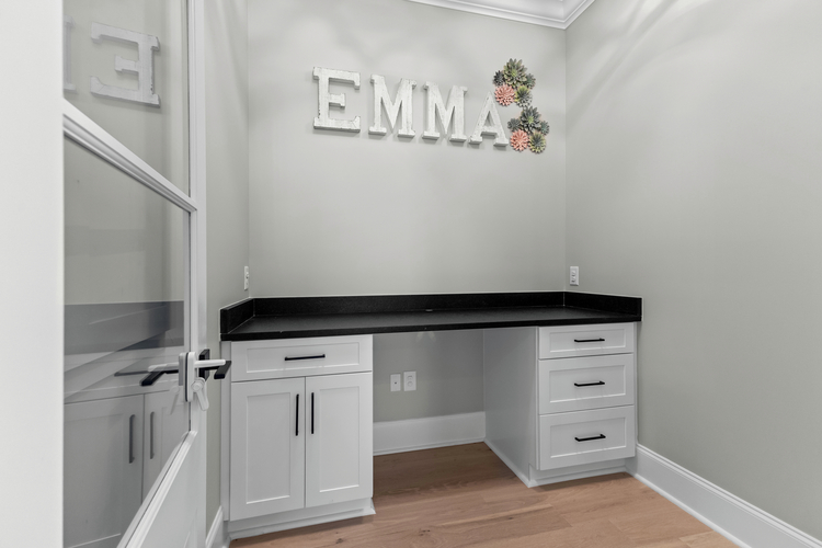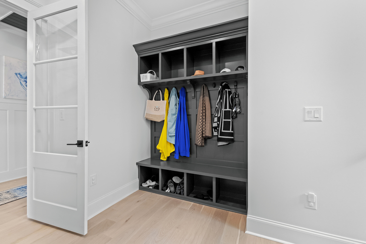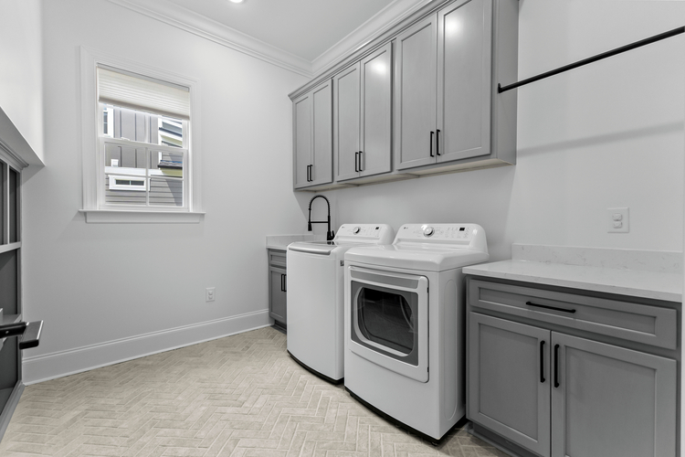 The first-floor master suite is a private retreat with an exquisite en suite bathroom designed for relaxation. A secondary bedroom and a versatile flex room provide additional space for guests or a home office. Thoughtful conveniences such as a separate oversized laundry room with built-in cabinets and a cubby drop zone by the garage add effortless organization to daily life.