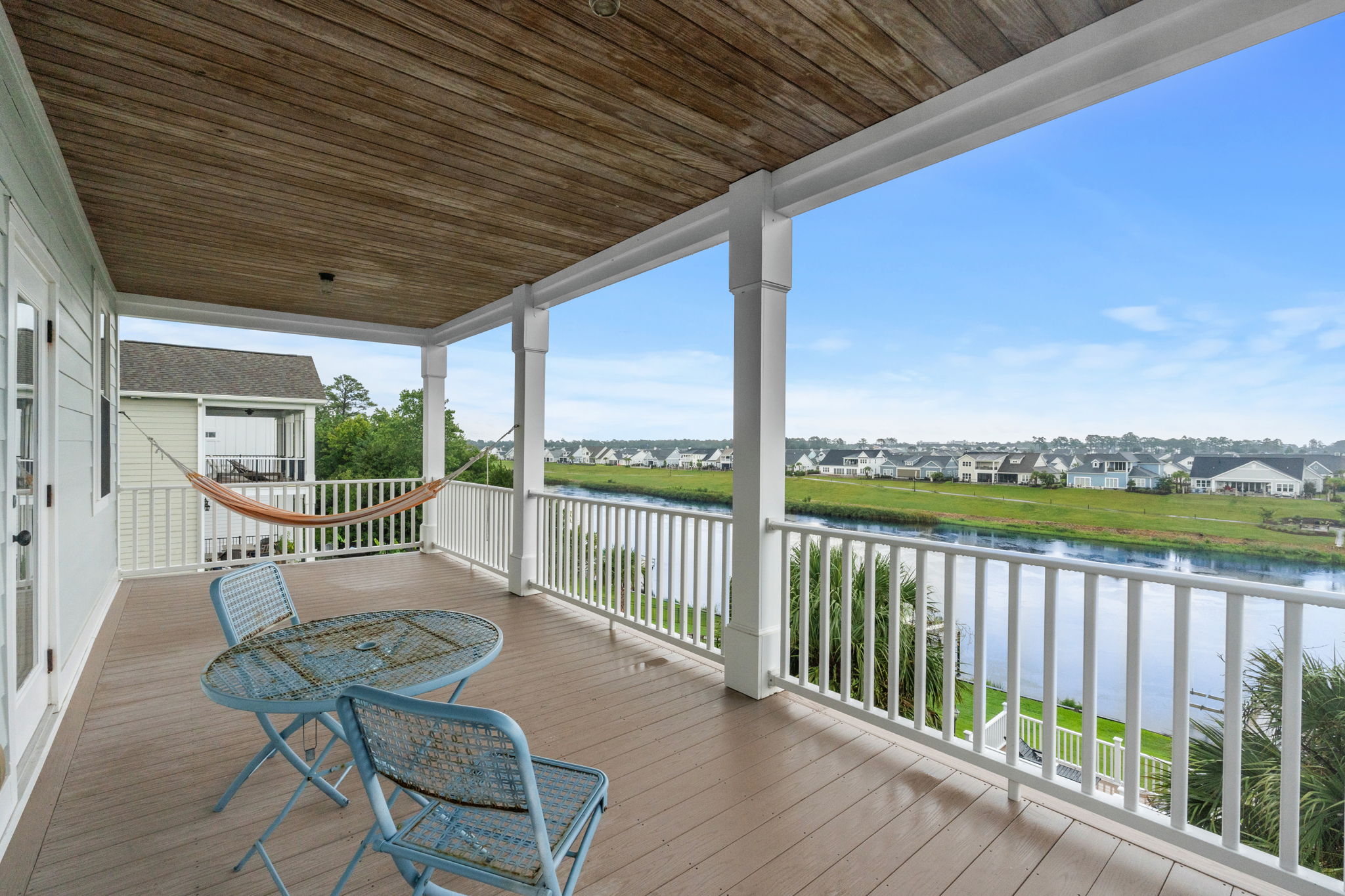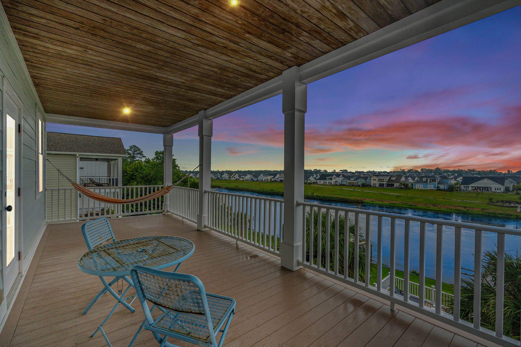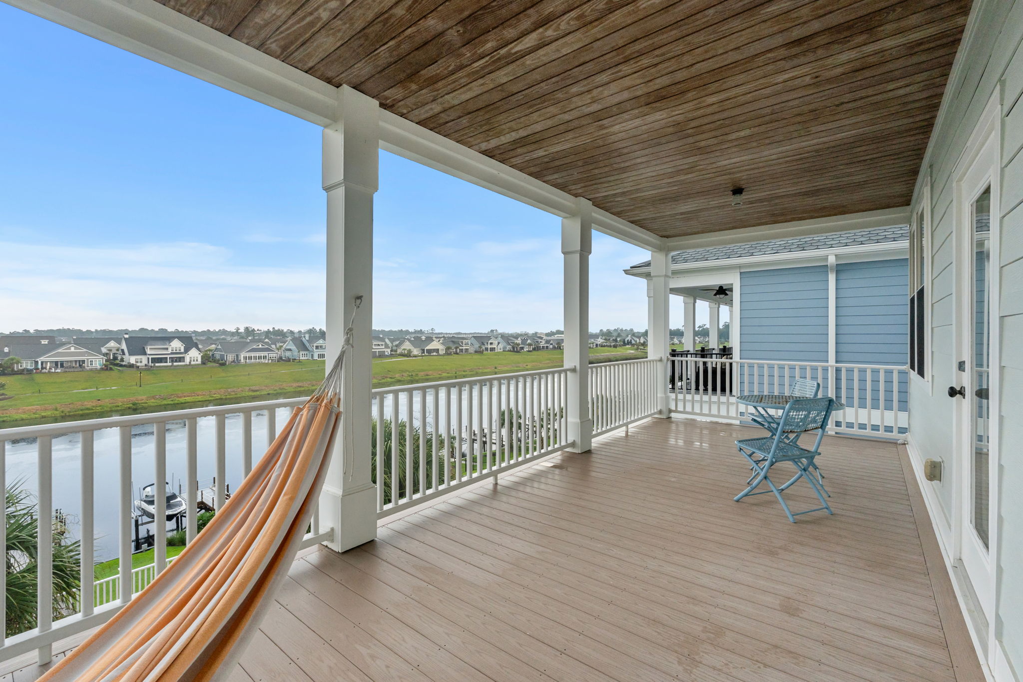 Private covered porch overlooking the Waterway